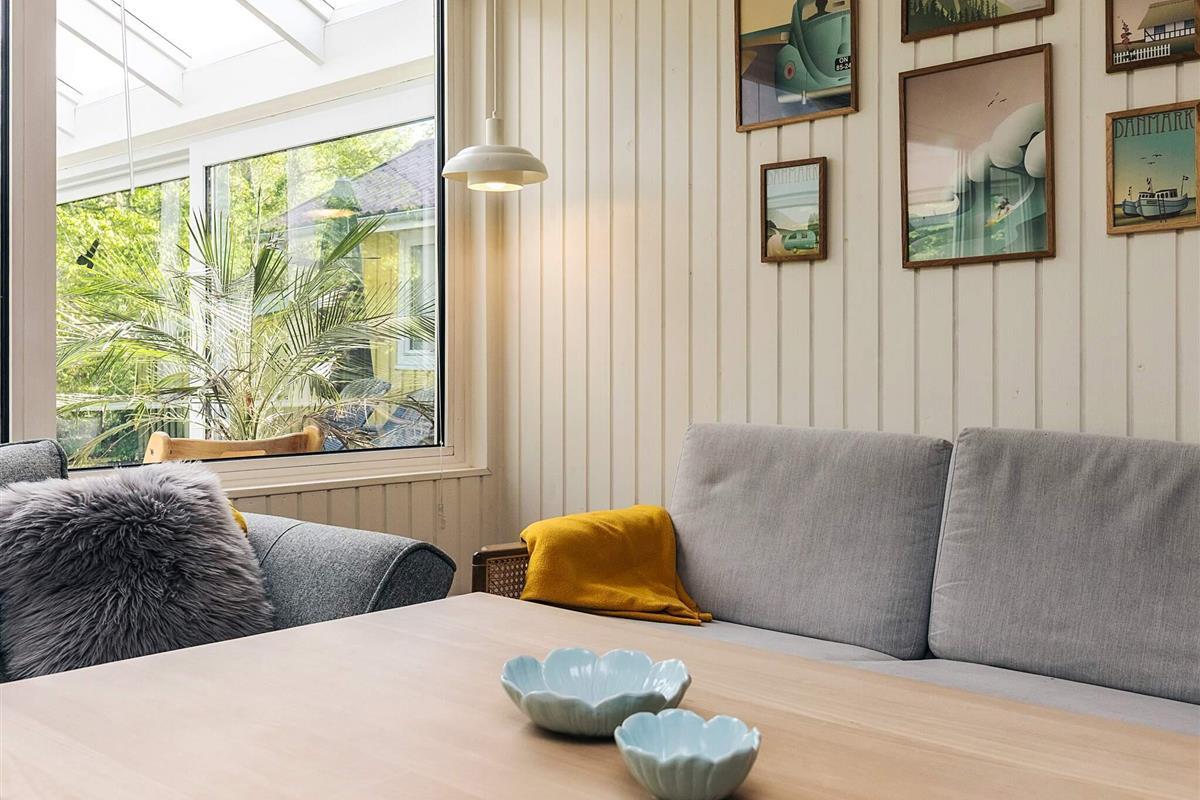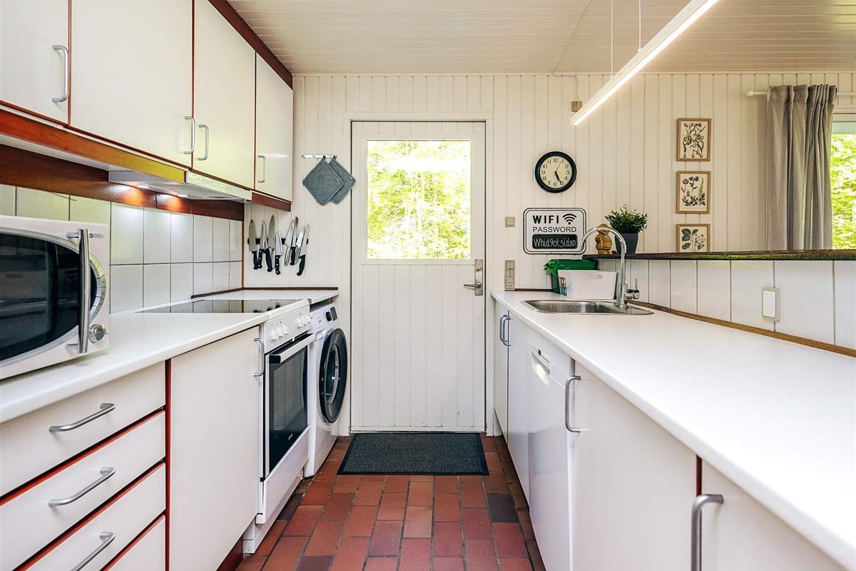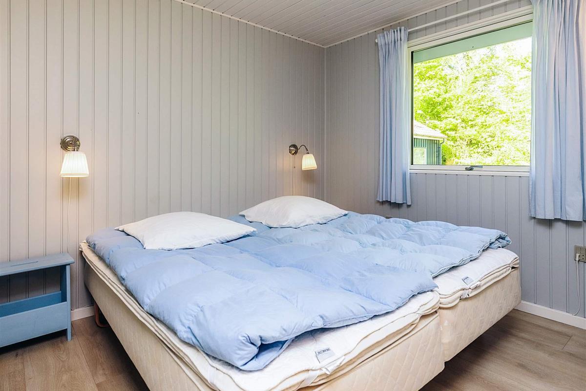 Ferienhaus nur wenige Minuten Fußweg von der Küste! Innen geräumige Küchen-/Wohnbereich für das Familienleben, mit Zugang zu einer verglasten Veranda und weiter auf das Rasengrundstück. Im Ferienhaus gibt es drei Schlafzimmer: Ein Elternschlafzimmer mit Doppelbett, das zweite Zimmer mit sogenanntem 3/4 Bett (schmaleres Doppelbett), das dritte ein Kinderzimmer mit Etagenbett und Einzelbett. Zur Ausstattung gehören ein Holzofen und eine energieeffiziente Wärmepumpe. Das großflächige Rasengrundstück bietet viel Platz für Aktivitäten im Freien mit der ganzen Familie. Keine Vermietung an Jugendgruppen erwünscht!