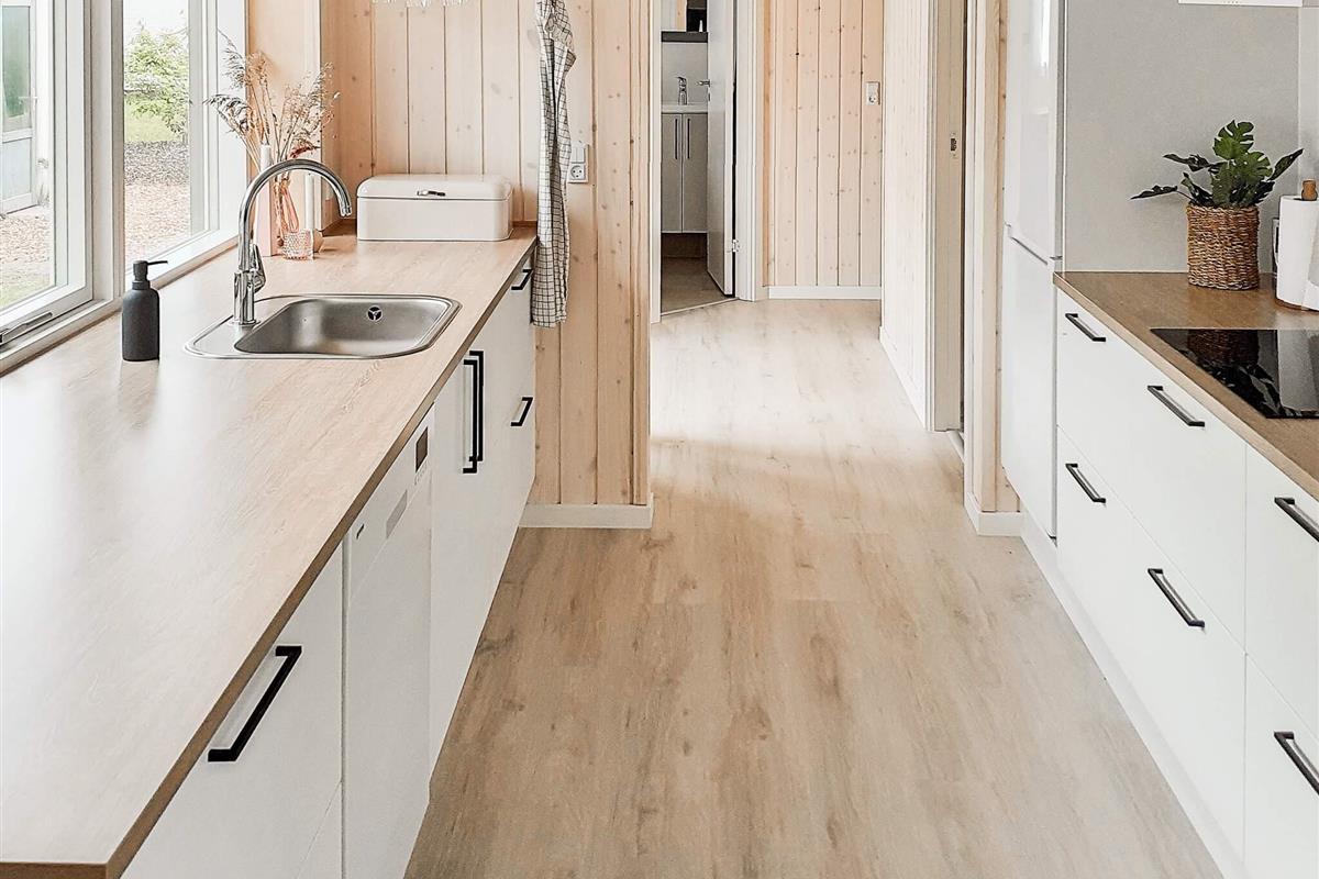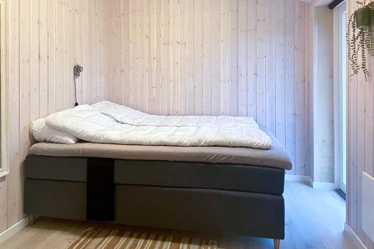 Das Ferienhaus bietet drei Schlafzimmer; zwei mit Doppelbett und eines mit vier Kojen in zwei Etagenbetten. Das Herzstück des Hauses ist das helle Wohnzimmer, das nahtlos mit der voll ausgestatteten Küche verbunden ist. Große Fenster durchfluten den Raum mit Tageslicht und öffnen sich direkt zu einer erhöhten Holzterrasse mit mehreren gemütlichen Ecken für den Morgenkaffee, Familienessen oder Abende unter dem Sternenhimmel.