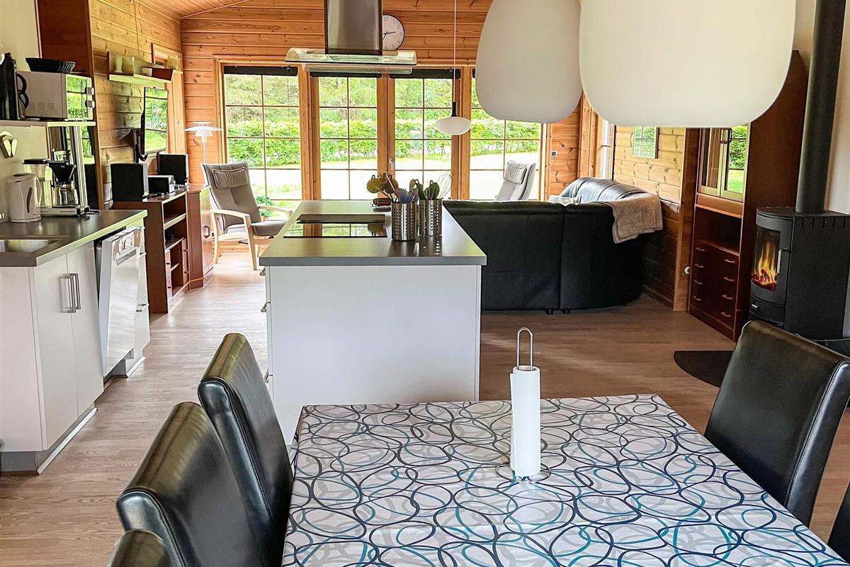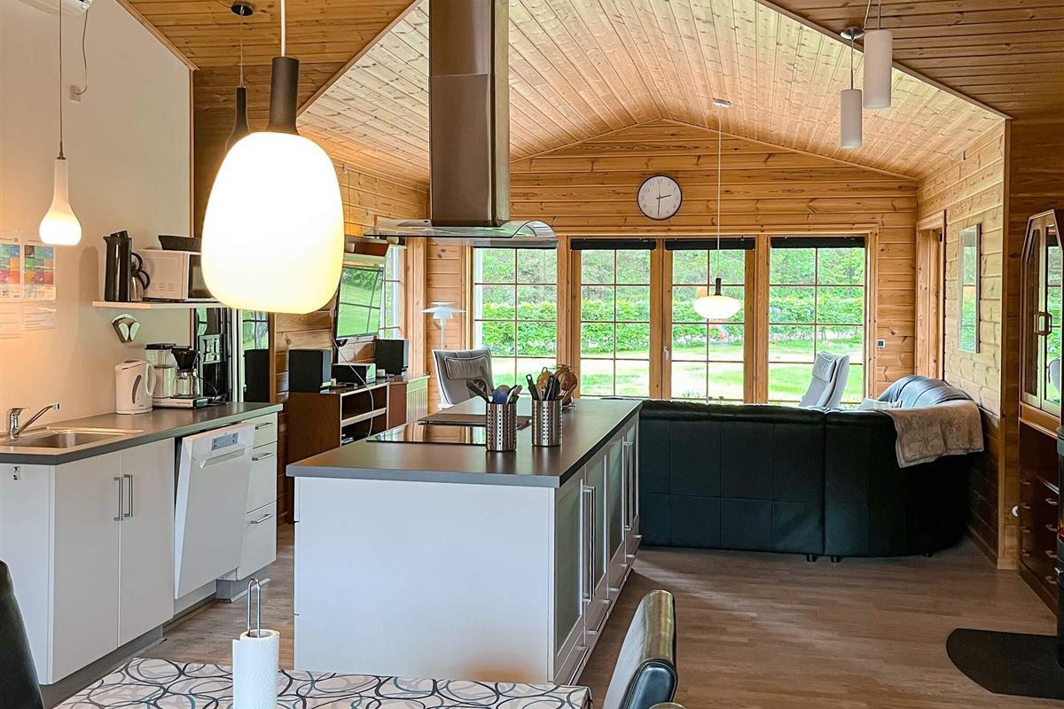 Dieses charmante Ferienhaus im traditionellen Blockhausstil eignet sich ideal für eine große Familie oder zwei gemeinsam reisende Familien. Es bietet viel Wohnraum und eine durchdachte Raumaufteilung. Die Schlafzimmer bieten Komfort und Privatsphäre, während die einzigartige Architektur und das individuell gestaltete Interieur des Hauses eine warme und einladende Atmosphäre schaffen. Die moderne Küche ist komplett für gemeinsame Mahlzeiten ausgestattet, und der geräumige Wohnbereich mit Holzofen lädt zu gemütlichen Abenden ein.