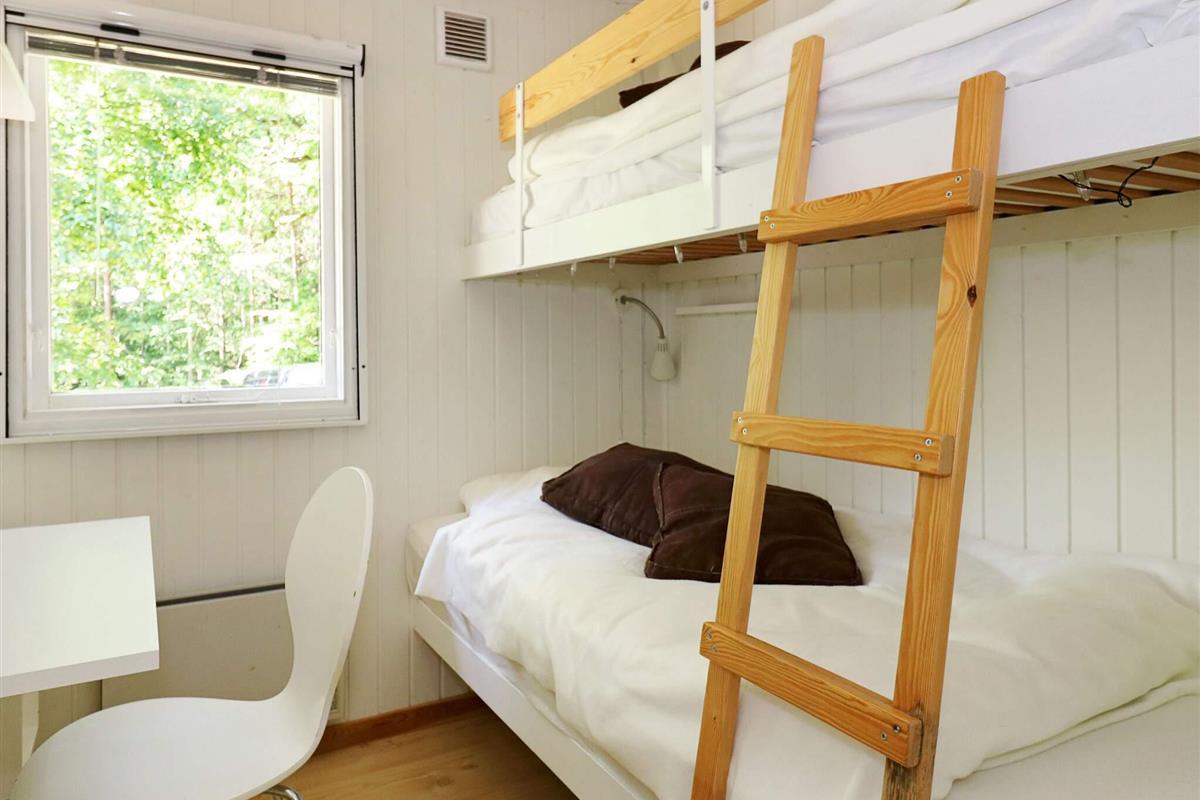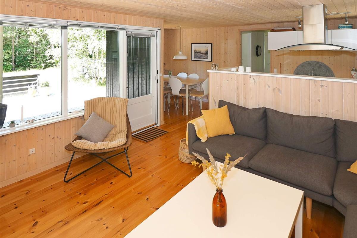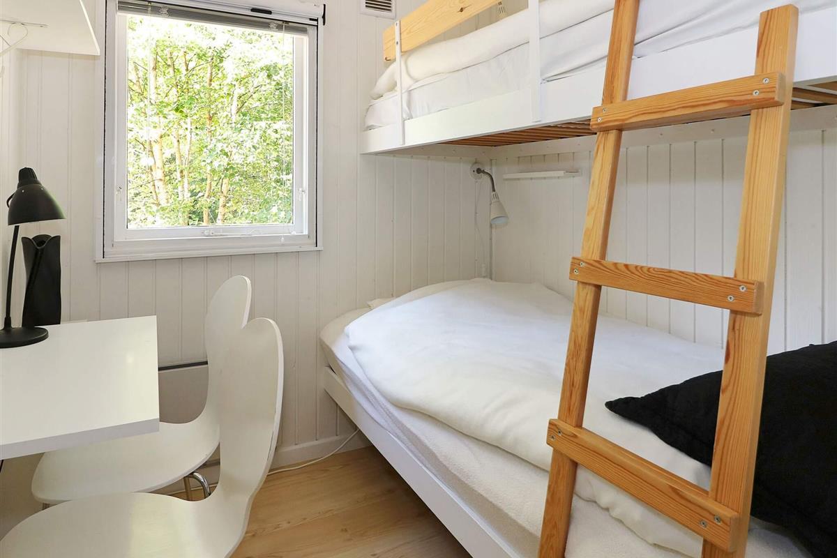 Der offene Wohnbereich ist hell und einladend und verfügt über einen Holzofen, einen Fernseher mit Chromecast und einen Hochstuhl für die Kleinen. Die voll ausgestattete Küche mit Elektroherd, Kühl-Gefrierkombination, Kaffeemaschine und Geschirrspüler macht die Zubereitung von Mahlzeiten einfach und bequem. Das Haus verfügt über drei Schlafzimmer: eines mit Doppelbett und zwei mit Etagenbetten sowie ein Kinderbett – so finden sechs Gäste bequem Platz. Das Badezimmer ist mit Dusche, WC und Waschbecken ausgestattet.