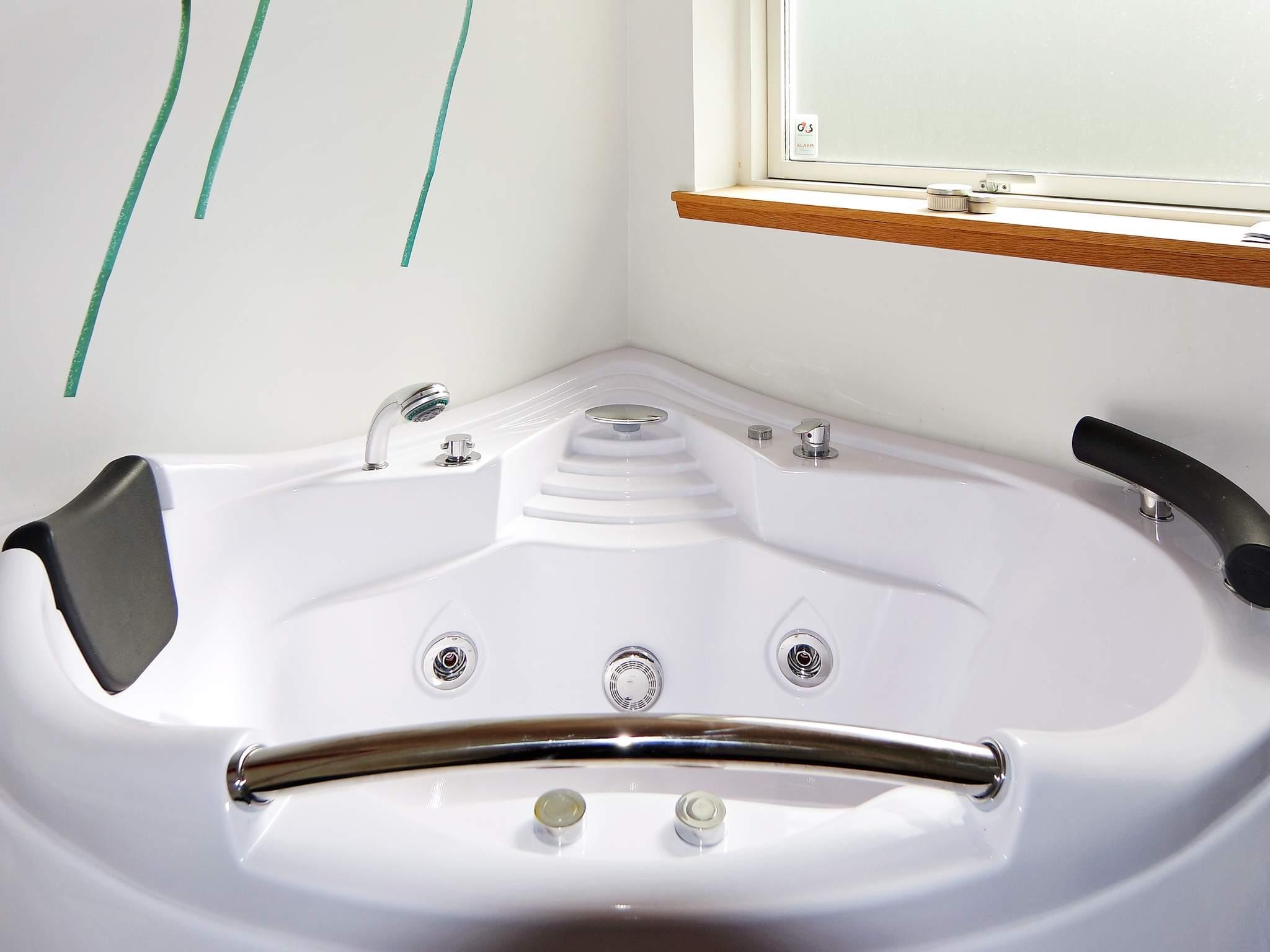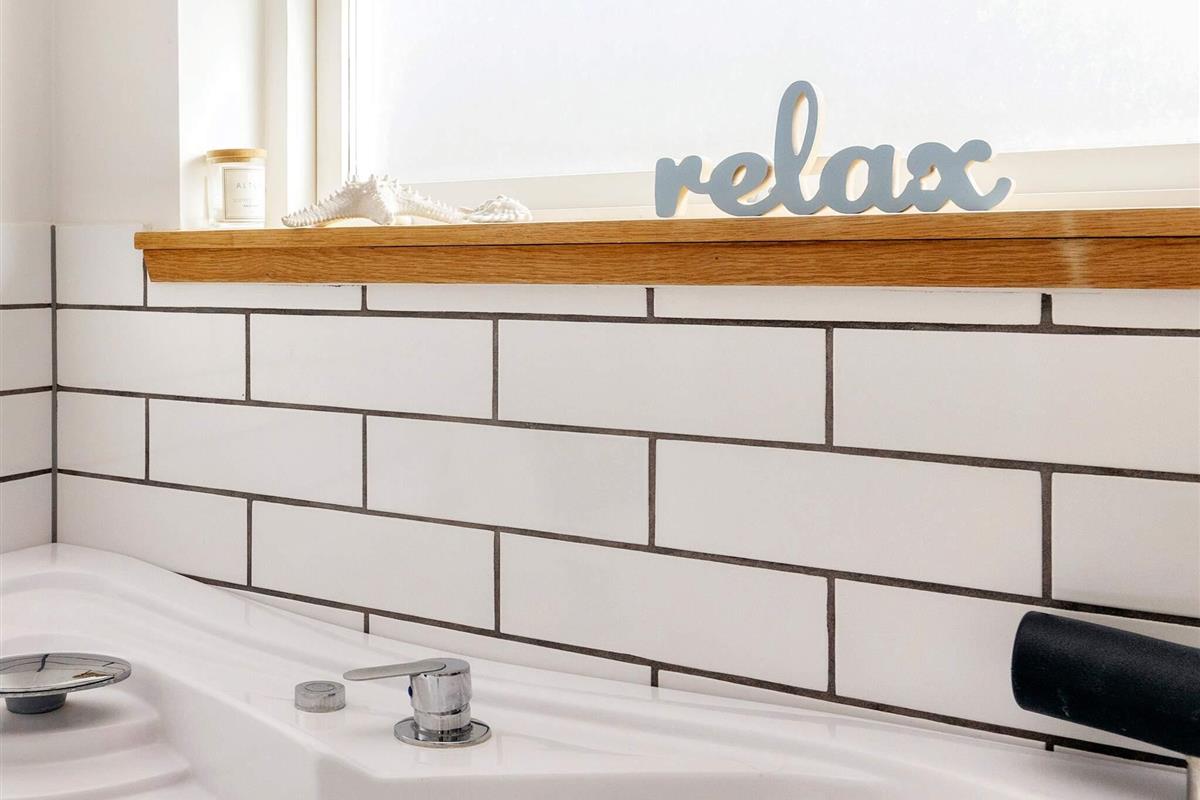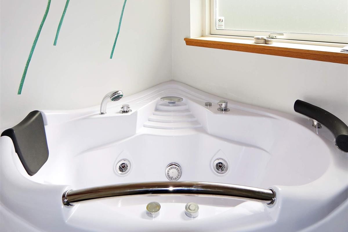 Offener Küchen-/Wohnbereich mit Essecke und Zugang zur großen Veranda, die mehrere Seiten des Hauses umfasst und so auch mehrere Sitzplätze im Freien anbietet. Im Haus auch drei Schlafzimmer mit je einem Doppelbett sowie ein modernes Bad mit Dusche/WC und Whirlpool für erholsame Stunden. Im TV ein deutscher Sender (ZDF).