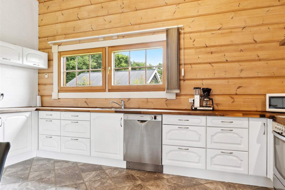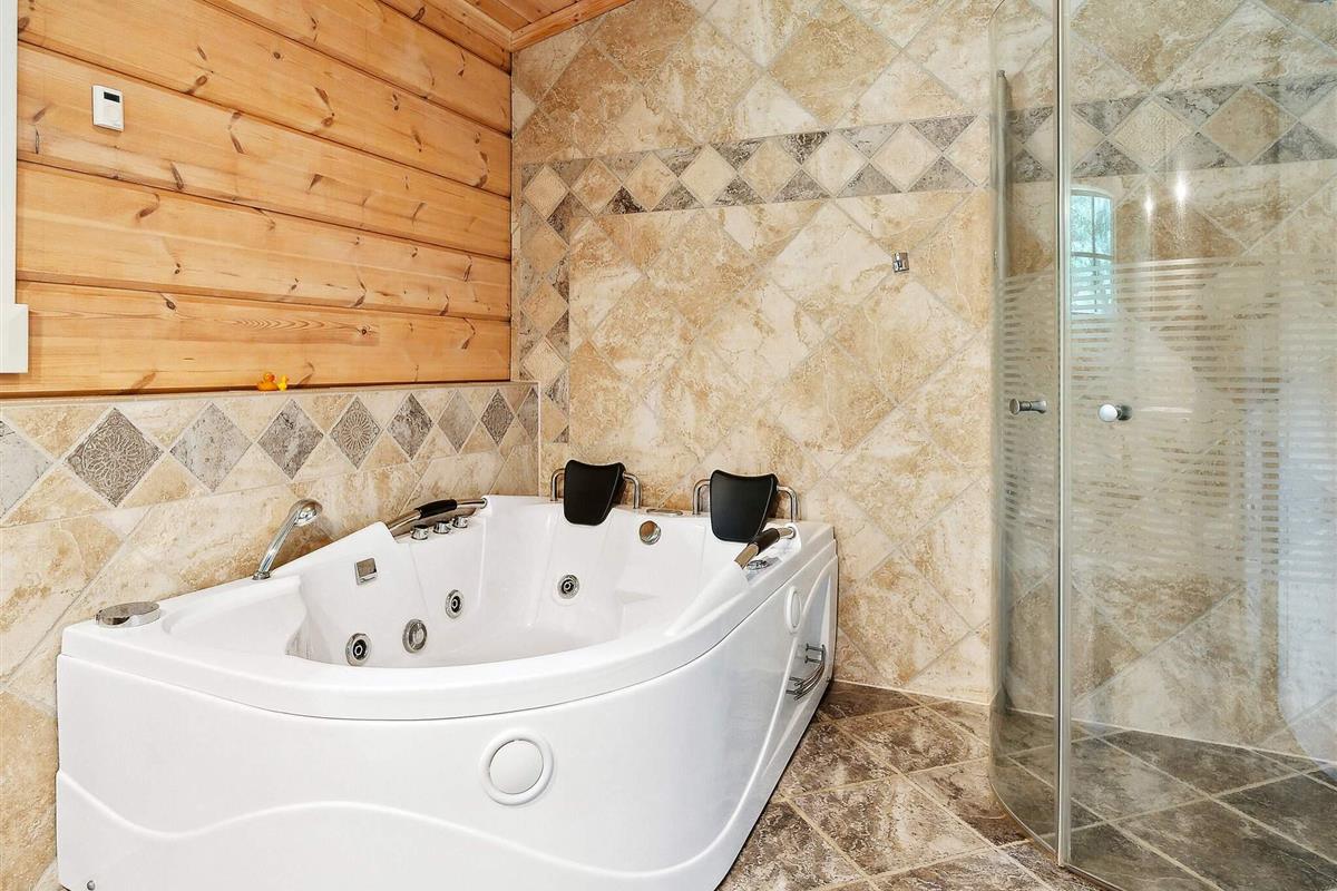 Ferienhaus mit viel Platz und Whirlpool im Bad. Großes und geräumiges Wohnzimmer mit Essbereich, der in offener Verbindung zur hellen Küche steht. Angenehme Fußbodenheizung im Haus. Ein großes Badezimmer mit Whirlpool und Dusche. Darüber hinaus zwei Zimmer mit Doppelbetten und ein Hauswirtschaftsraum mit Waschmaschine und Wäschetrockner.