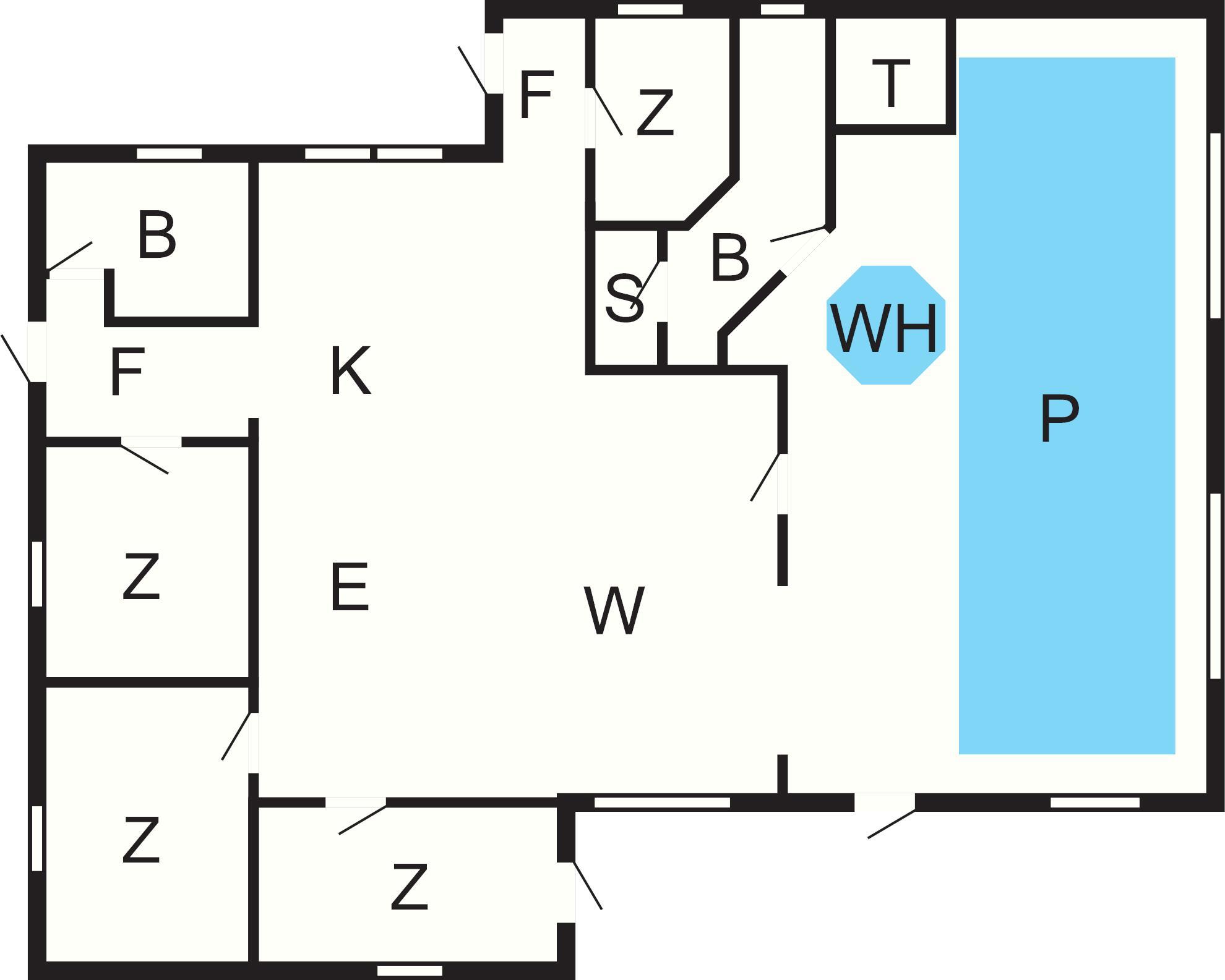 Ferienhaus mit Swimmingpool, Whirlpool und Sauna, auf einem großen Naturgrundstück gelegen. Es bietet viel Platz und ist praktisch, auch für den Aufenthalt von zwei Familien, eingerichtet.
