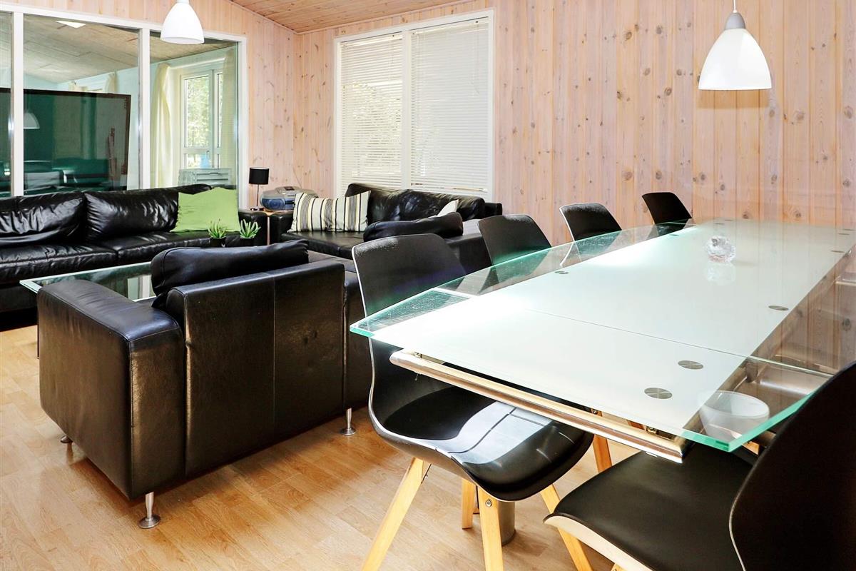Das Wohnzimmer ist hell und offen mit der Küche und dem Essbereich verbunden. Vom Wohnraum aus können Sie den Badenden im Pool oder im Whirlpool zusehen.