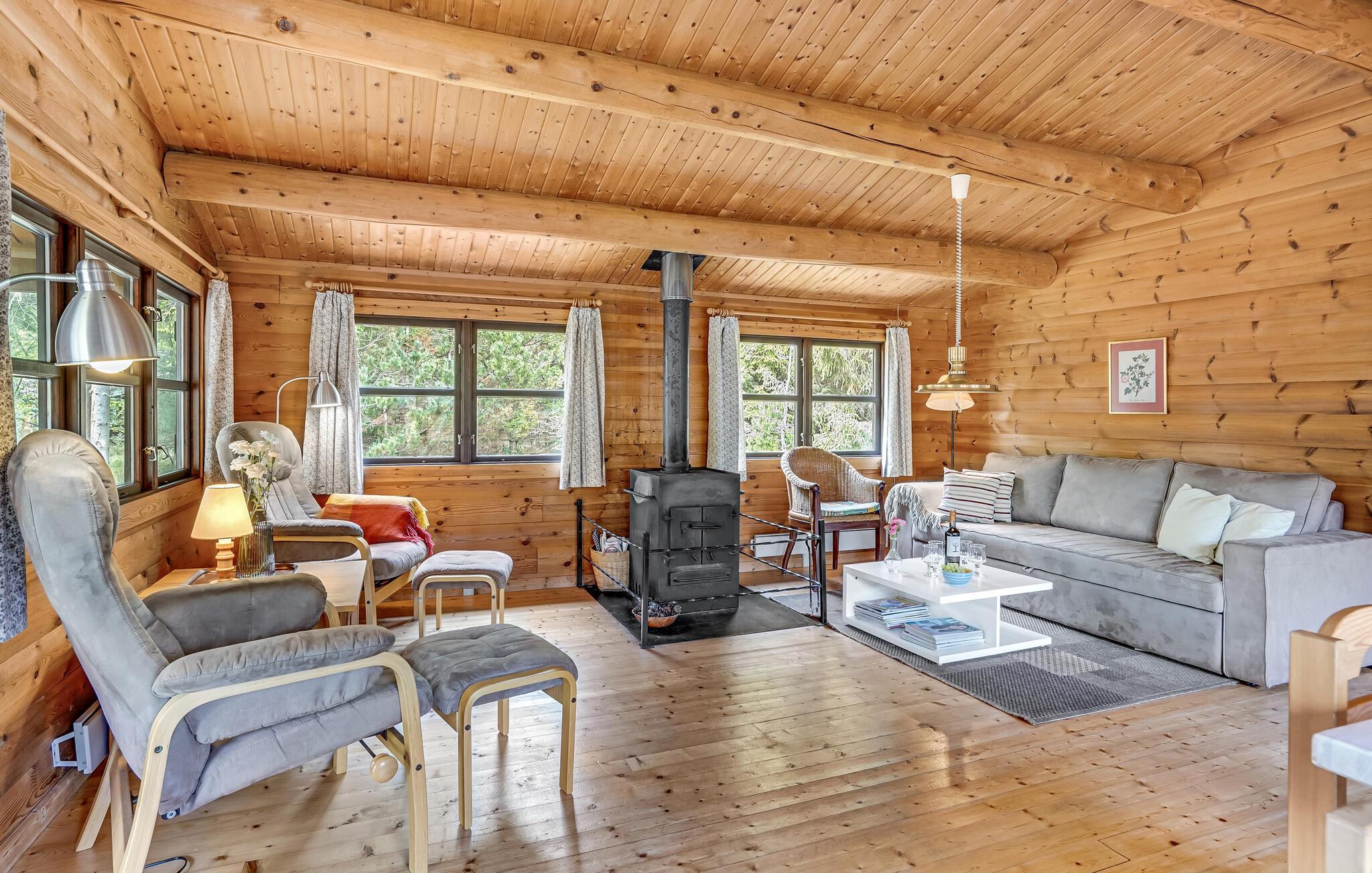 Dit houten huis bij Als Odde Strand wacht op u op een idyllisch natuurperceel. Het hart van het huis is de woonkamer met toegang tot het prachtige terras met uitzicht op het water. Ontspan hier voor de houtkachel na een lange dag in de natuur en laat uw dagelijkse leven achter u. De lange eettafel in de woonkamer nodigt uit tot gezellige diners of spelletjesavonden. U beschikt ook over twee slaapkamers met een tweepersoonsbed en een stapelbed en een badkamer.