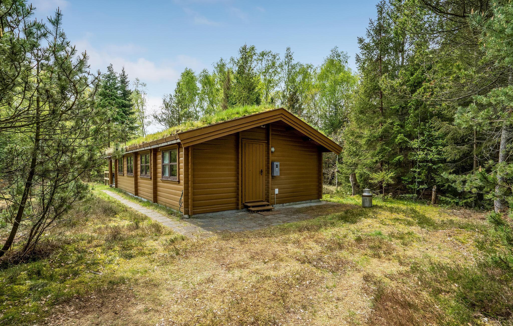 Ontdek deze gezellige Zweedse blokhut met grasdak aan het schilderachtige Als Odde Strand.