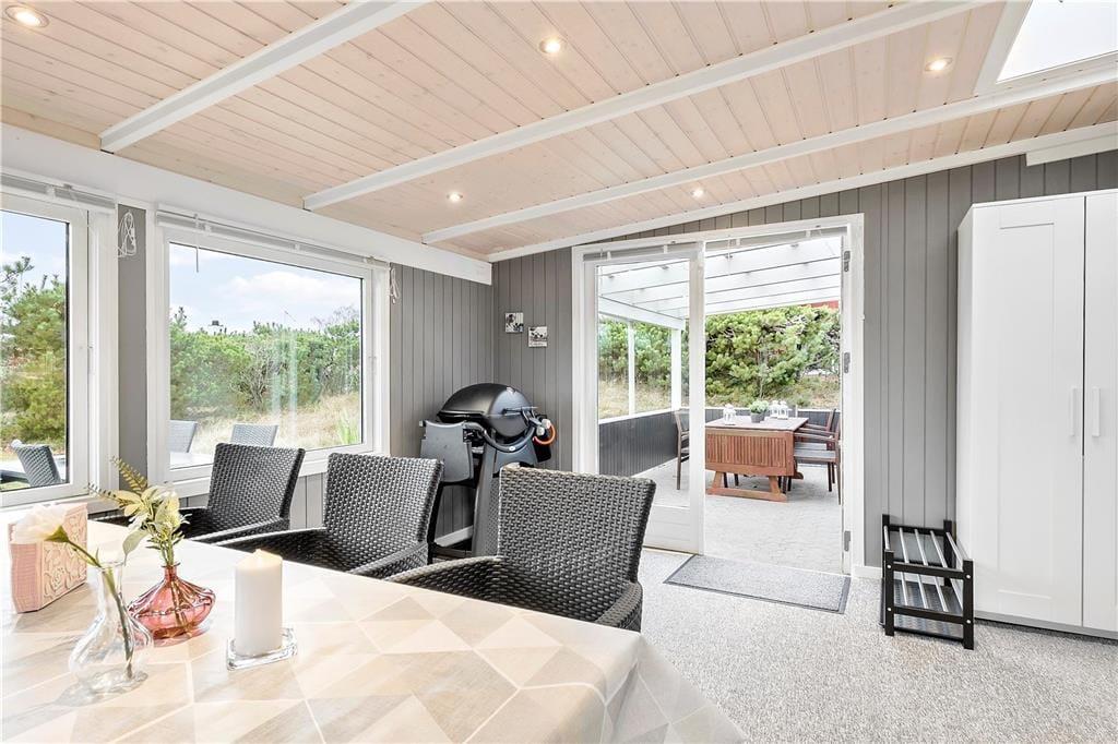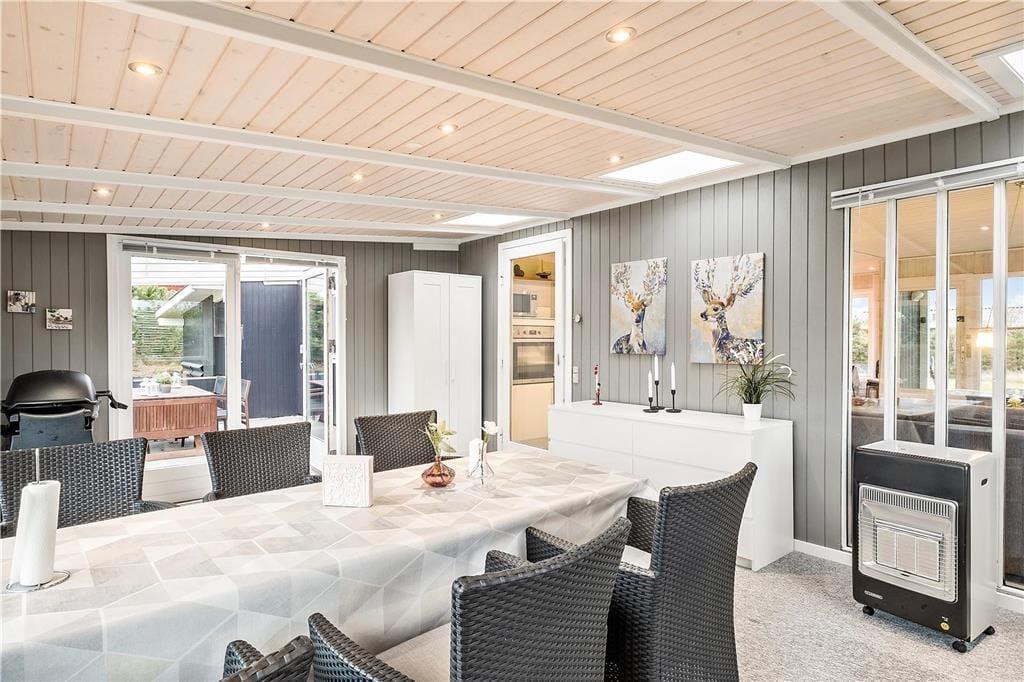 Das Ferienhaus, das im Jahr 2020 einer Renovierung unterzogen wurde, begrüßt Sie im Aufenthaltsbereich und in den Schlafräumen mit einer hellen und freundlichen Wohnatmosphäre. Die insgesamt drei vorhandenen Schlafräume sind allesamt mit je einem guten Doppelbett ausgestattet. Der Aufenthaltsbereich setzt sich offen aus der Küche und dem Wohnraum zusammen. Hier sorgen ein behaglich knisternder Kaminofen, eine Sofaabteilung, ein Esstisch und eine schöne und gut ausgestattete Küche dafür, dass Sie zahlreiche gemütliche, wertvolle Stunden im Kreise Ihrer Lieben verbringen werden. Als Alternative gibt es außerdem den angrenzenden Wintergarten, der Ihnen noch mehr Platz zum Erholen und Entspannen bietet. Ein Badezimmer befindet sich selbstverständlich ebenfalls in diesem attraktiven Mietobjekt.