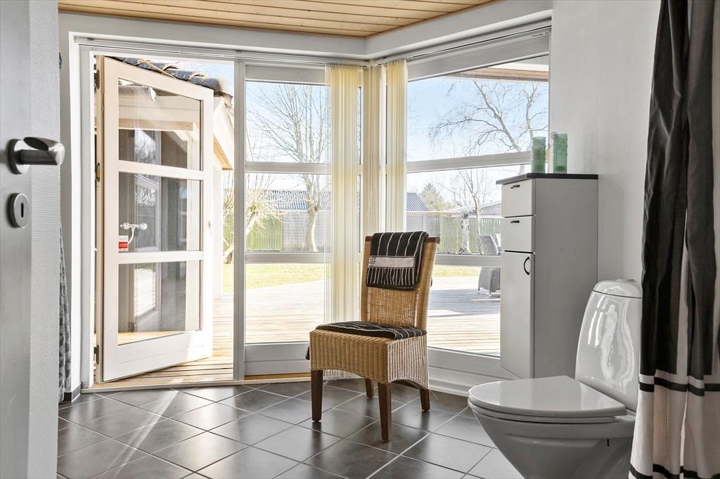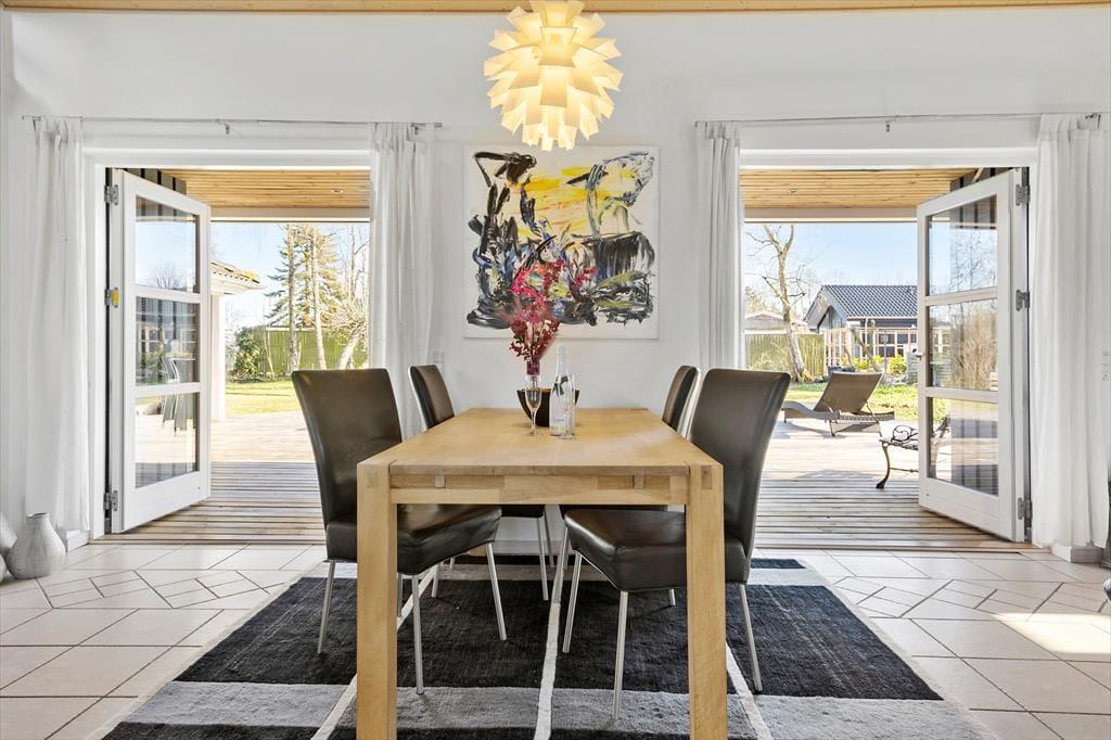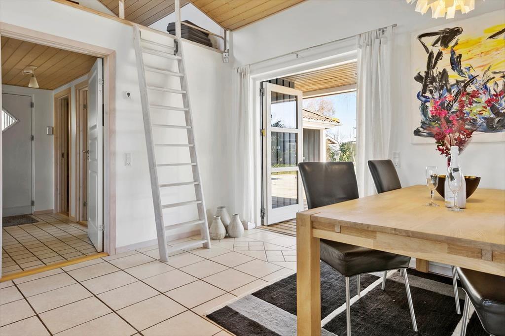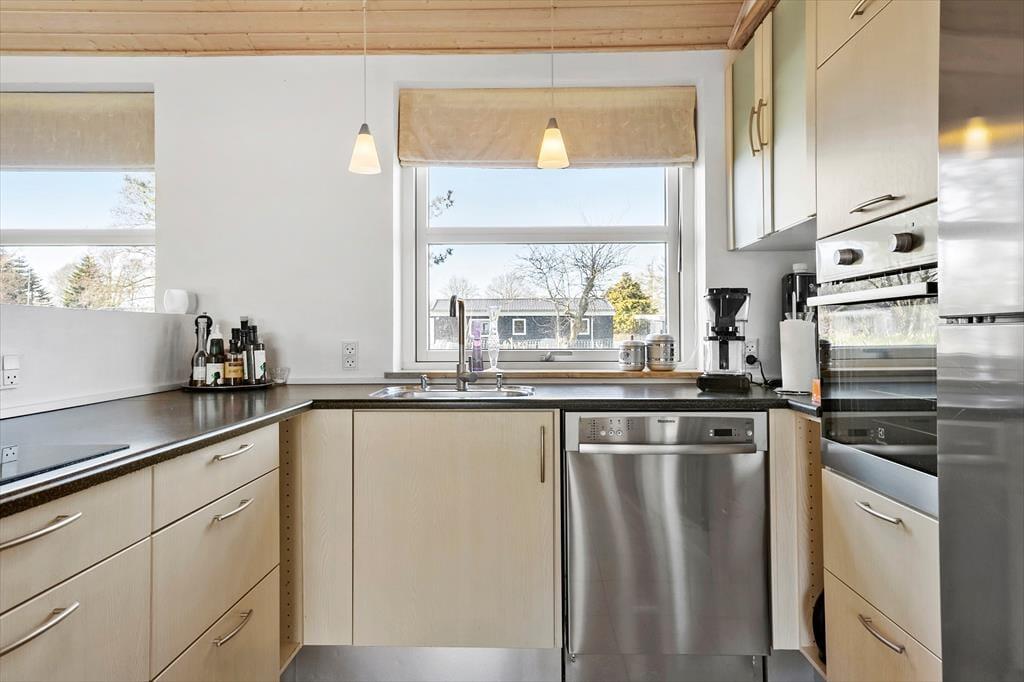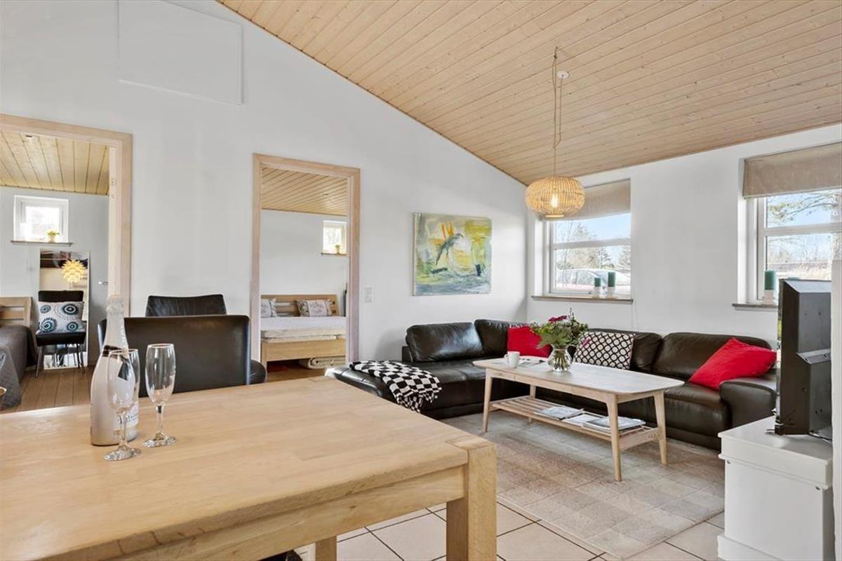 Tritt ein in dieses gut gepflegte Ferienhaus in Rønnemose 51, wo Gemütlichkeit und Komfort in einer geräumigen und einladenden Umgebung aufeinandertreffen. Der offene Grundriss schafft eine luftige Atmosphäre, und die großen Fenster lassen natürliches Licht herein, was das Gefühl von Weite verstärkt. Die Einrichtung ist klassisch und stilvoll mit warmen Holzelementen. Die Küche ist gut ausgestattet und lädt zu gemeinsamer Zubereitung von Mahlzeiten und Geselligkeit ein. Hier ist Platz für ruhige Momente und lebendige Ferienerinnerungen.