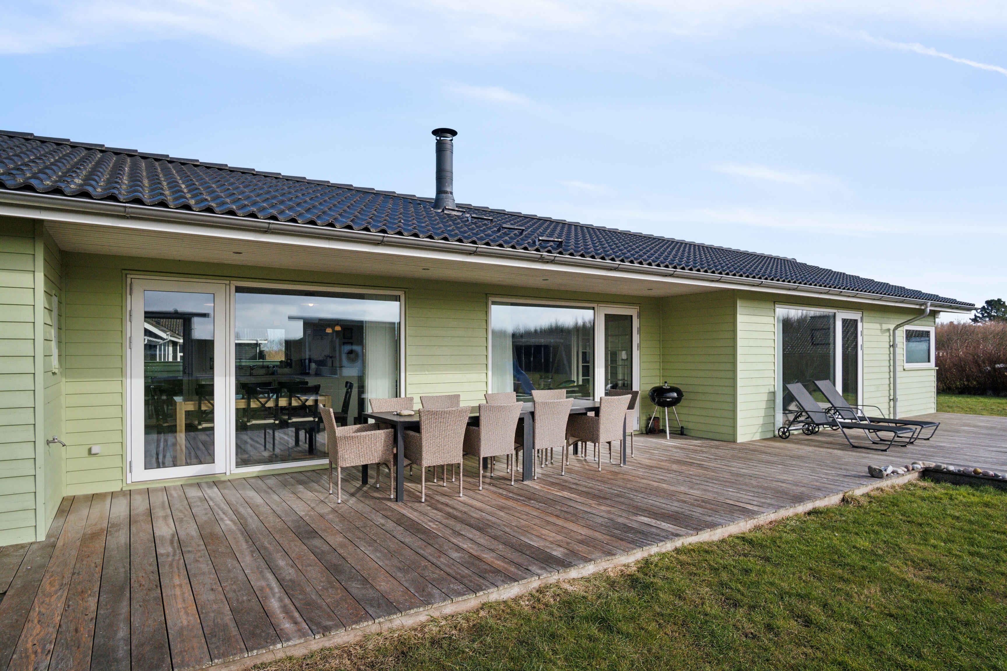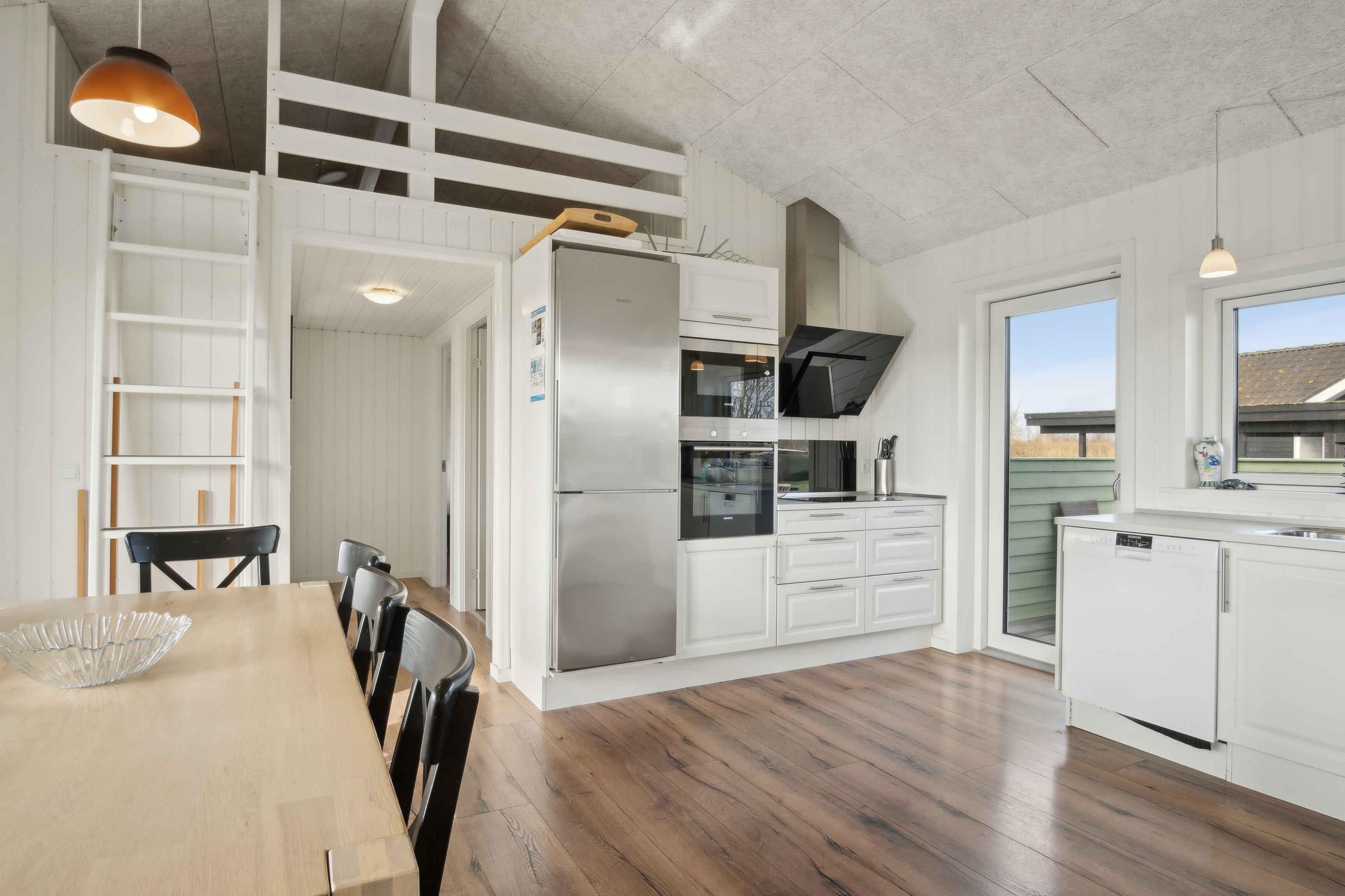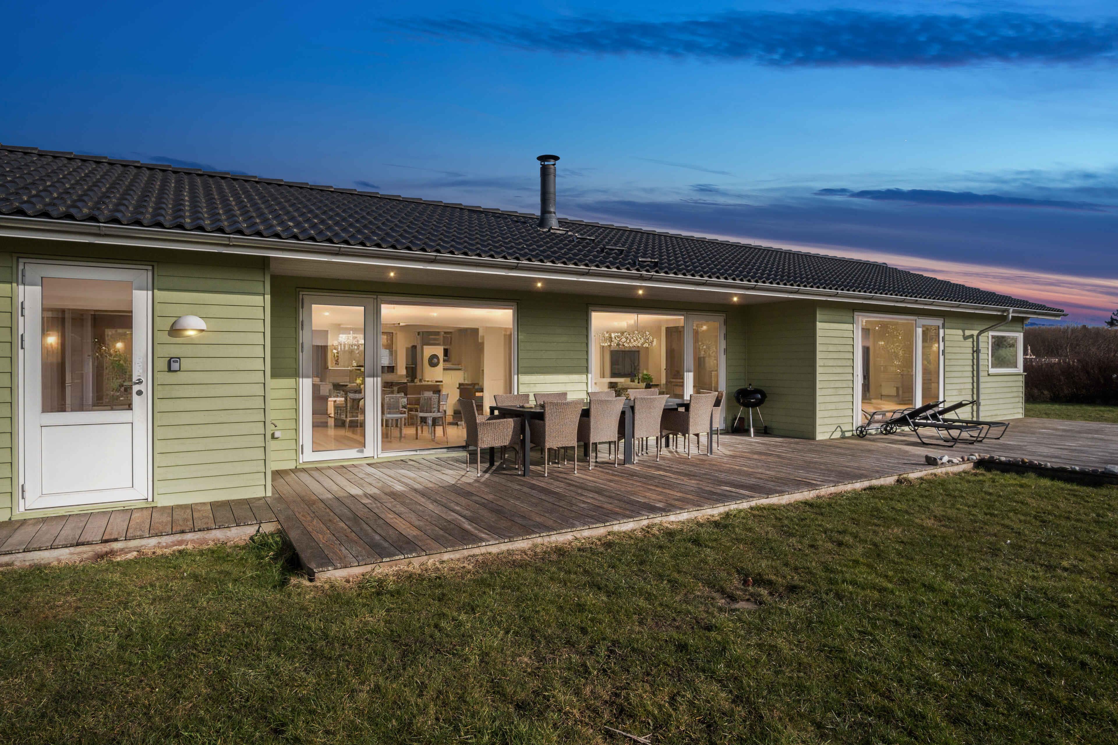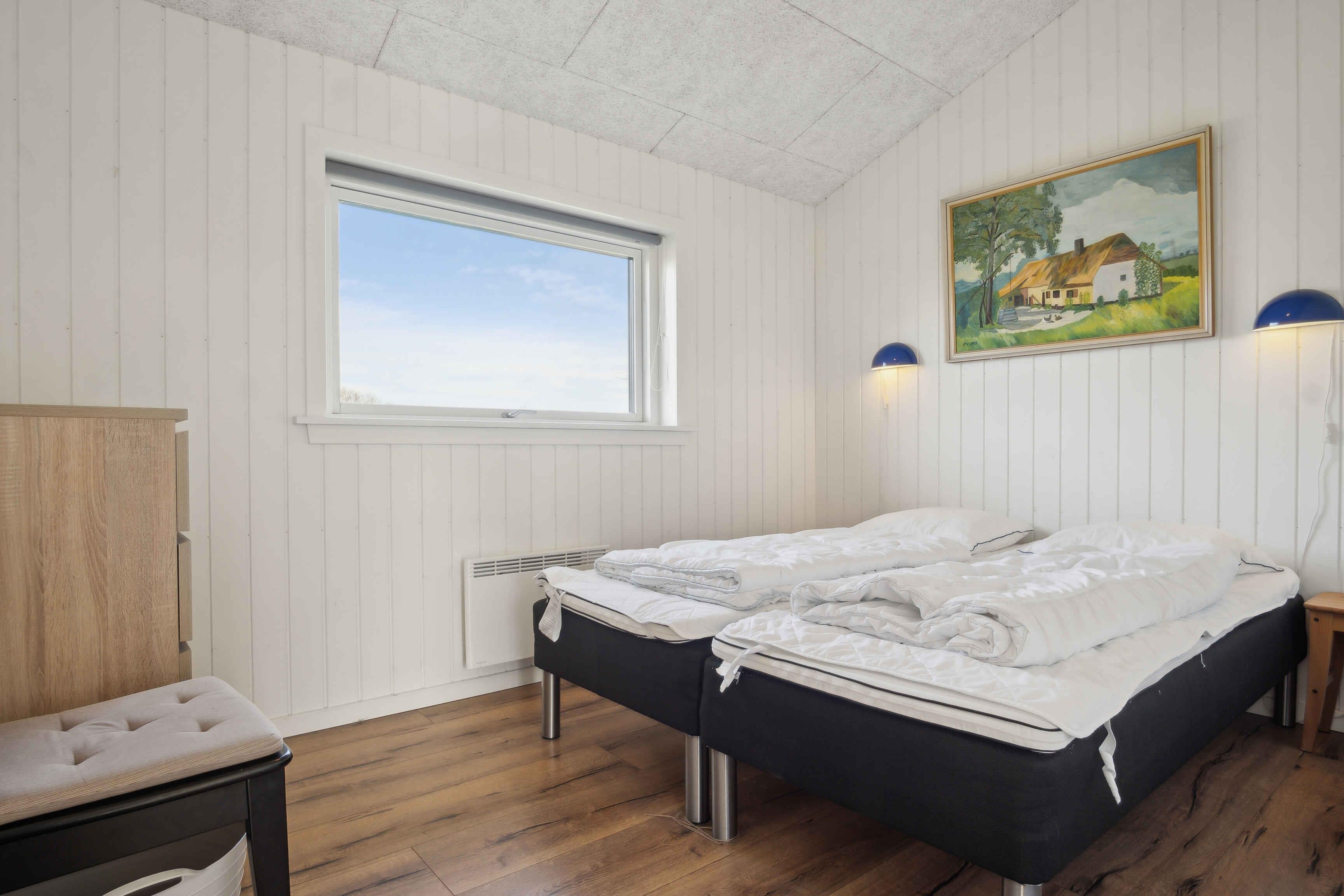 Deze ruime vakantiewoning van 141 m² biedt plaats aan maximaal 12 personen. Er zijn vier slaapkamers, twee slaapzolders en twee badkamers, waardoor het ideaal is voor grote gezinnen of meerdere vriendengroepen. De woning is goed ingedeeld met twee aparte slaapgedeeltes, elk met een eigen badkamer. De slaapzolders met matrassen bieden extra slaapplaatsen en zijn vooral geschikt voor kinderen die van een knusse ruimte houden. De grote woonkamer heeft een houtkachel, die op koele dagen voor een gezellige sfeer zorgt. Een lucht/lucht-warmtepomp garandeert het hele jaar door een aangenaam binnenklimaat. Internet biedt gemakkelijke toegang tot streaming en werk. De grote activiteitenruimte biedt vermaak voor alle leeftijden. Hier kun je tafelvoetballen, tafeltennissen of darten. De ruimte is perfect voor gezellige avonden met spel en competitie. Het huis ligt op 1500 meter van een kindvriendelijk zandstrand. Het ondiepe water en de goede zwemomstandigheden maken het ideaal voor gezinnen met jonge kinderen. De omgeving biedt uitstekende vismogelijkheden. Vanaf de kust kun je platvis, kabeljauw en zeeforel vangen, terwijl sportvissers ook nabijgelegen meren en havens kunnen verkennen. Natuurpaden en fietsroutes maken dit gebied perfect voor buitenactiviteiten. De omliggende bossen en open landschappen nodigen uit tot lange wandelingen, terwijl de kust prachtige uitzichten over de zee biedt. Hier geniet je van een vakantie in een rustige omgeving met volop ruimte, activiteiten en mooie ervaringen dicht bij de natuur. Een huis waar zowel volwassenen als kinderen kunnen ontspannen en spelen.
