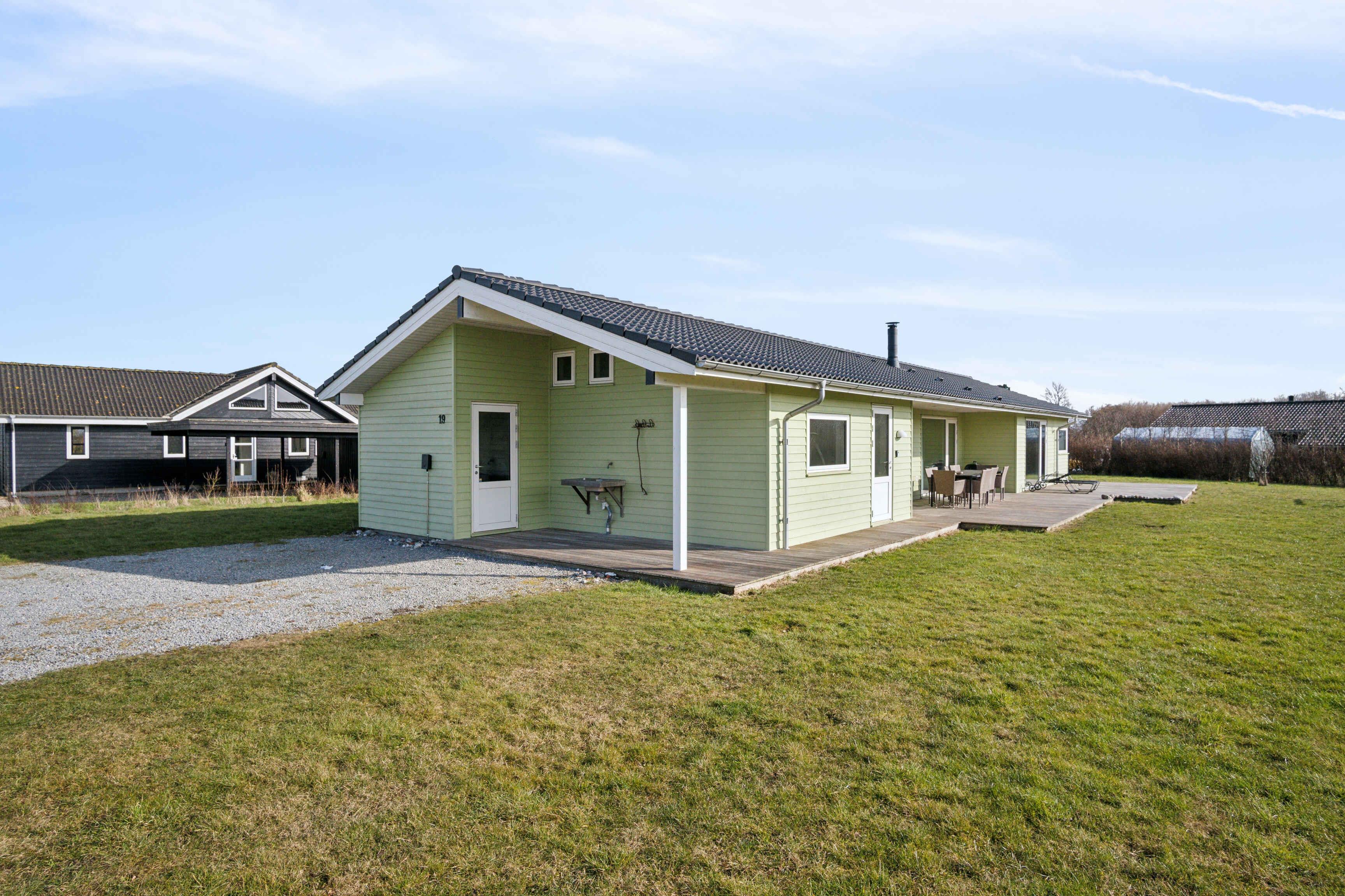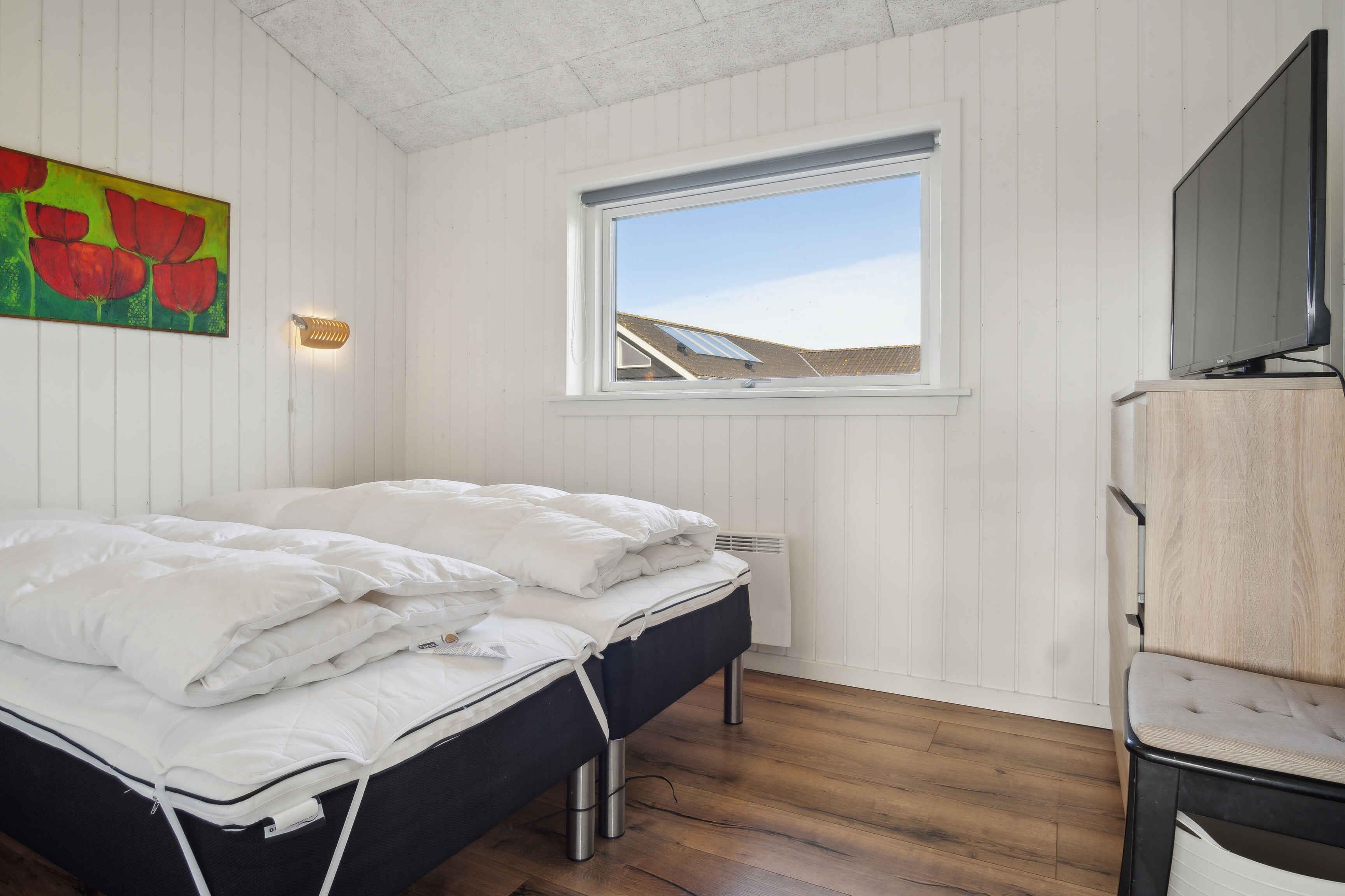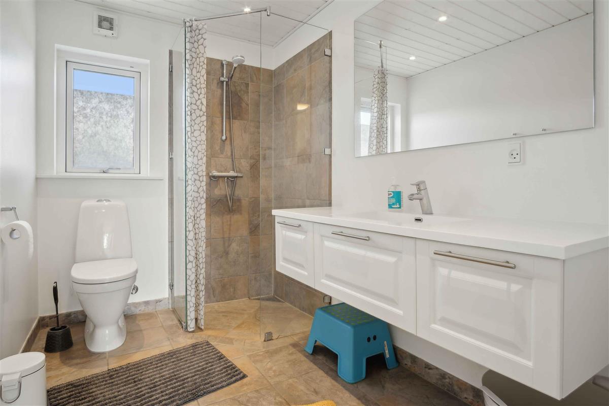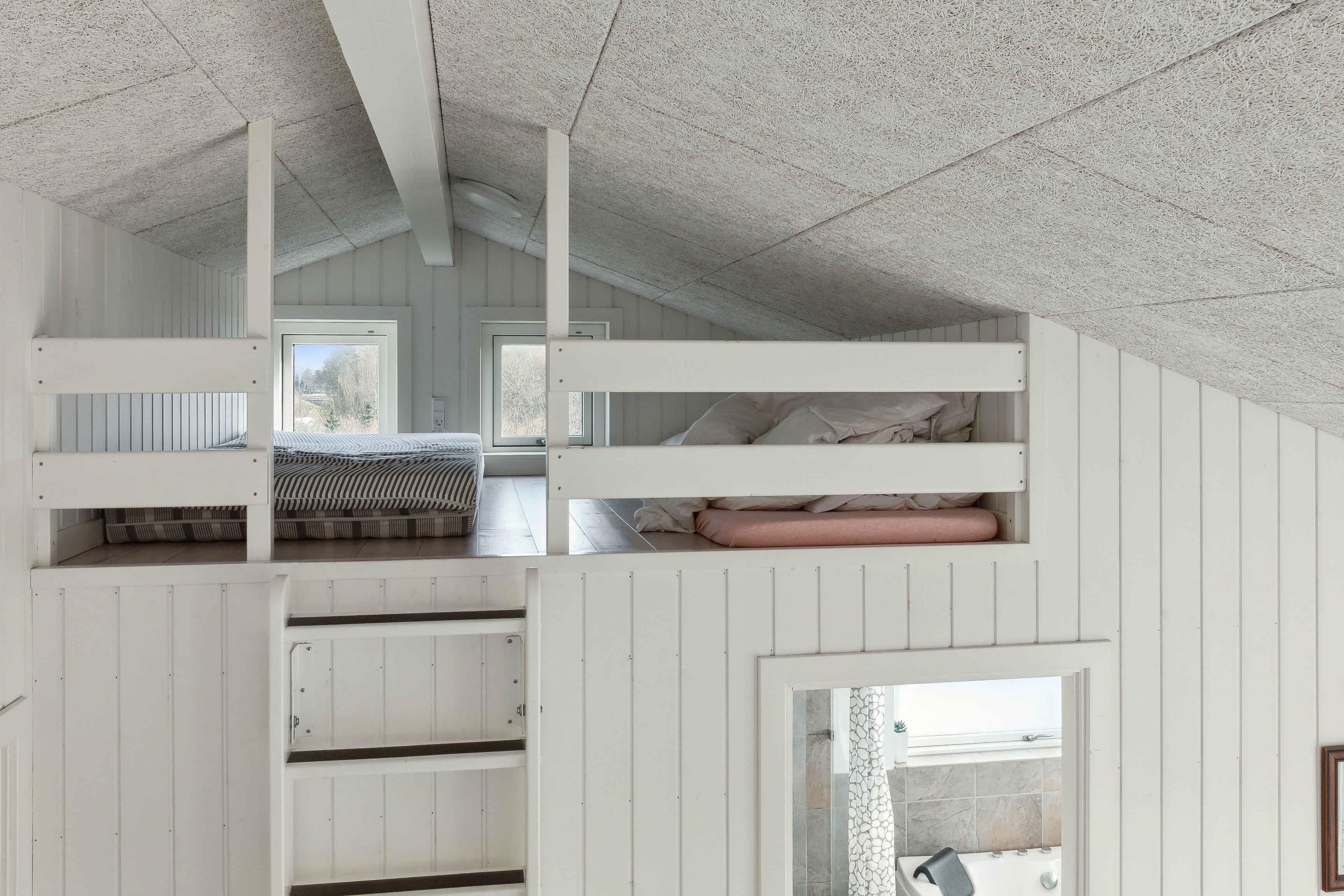 Deze ruime vakantiewoning van 141 m² biedt plaats aan maximaal 12 personen. Er zijn vier slaapkamers, twee slaapzolders en twee badkamers, waardoor het ideaal is voor grote gezinnen of meerdere vriendengroepen. De woning is goed ingedeeld met twee aparte slaapgedeeltes, elk met een eigen badkamer. De slaapzolders met matrassen bieden extra slaapplaatsen en zijn vooral geschikt voor kinderen die van een knusse ruimte houden. De grote woonkamer heeft een houtkachel, die op koele dagen voor een gezellige sfeer zorgt. Een lucht/lucht-warmtepomp garandeert het hele jaar door een aangenaam binnenklimaat. Internet biedt gemakkelijke toegang tot streaming en werk. De grote activiteitenruimte biedt vermaak voor alle leeftijden. Hier kun je tafelvoetballen, tafeltennissen of darten. De ruimte is perfect voor gezellige avonden met spel en competitie. Het huis ligt op 1500 meter van een kindvriendelijk zandstrand. Het ondiepe water en de goede zwemomstandigheden maken het ideaal voor gezinnen met jonge kinderen. De omgeving biedt uitstekende vismogelijkheden. Vanaf de kust kun je platvis, kabeljauw en zeeforel vangen, terwijl sportvissers ook nabijgelegen meren en havens kunnen verkennen. Natuurpaden en fietsroutes maken dit gebied perfect voor buitenactiviteiten. De omliggende bossen en open landschappen nodigen uit tot lange wandelingen, terwijl de kust prachtige uitzichten over de zee biedt. Hier geniet je van een vakantie in een rustige omgeving met volop ruimte, activiteiten en mooie ervaringen dicht bij de natuur. Een huis waar zowel volwassenen als kinderen kunnen ontspannen en spelen.