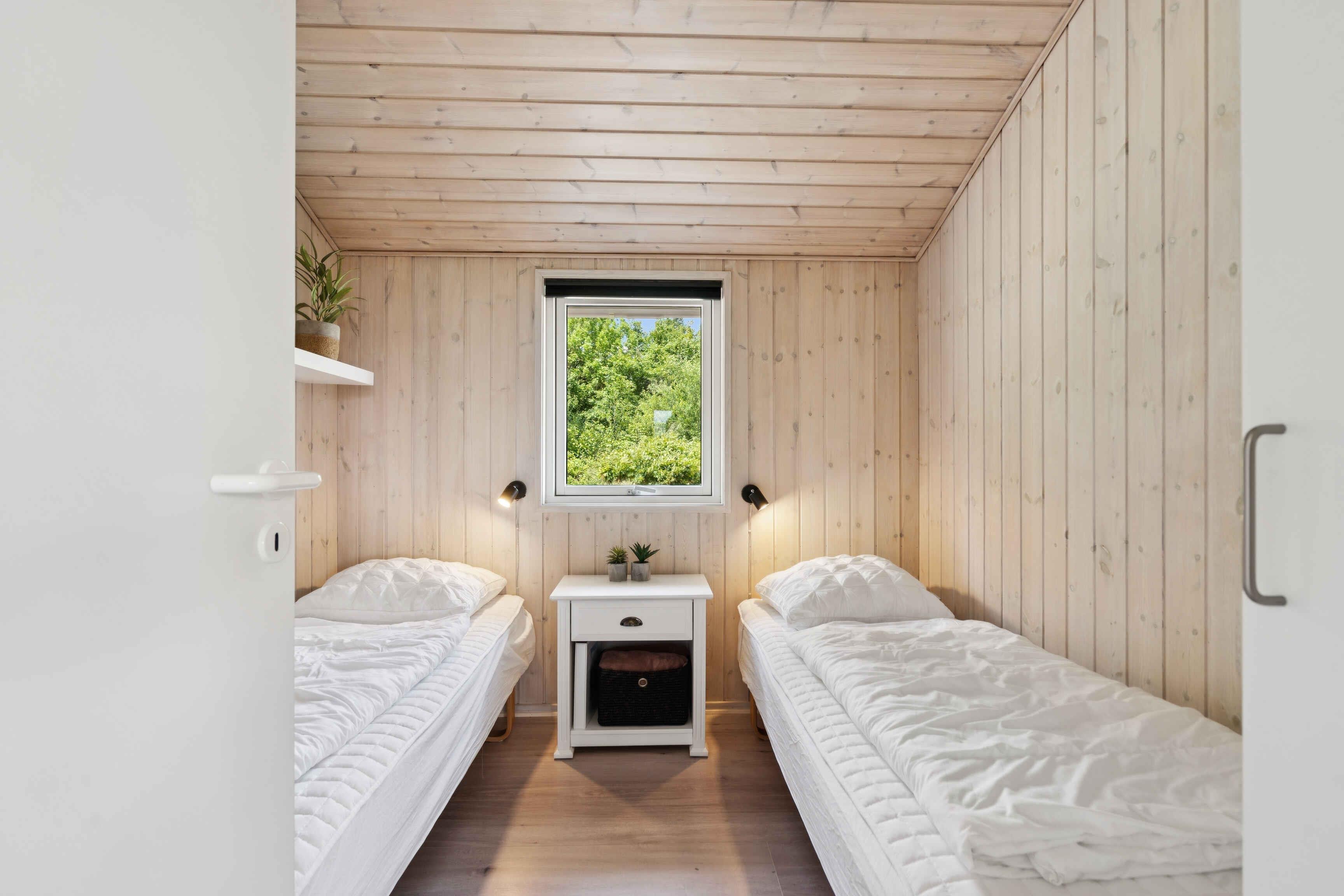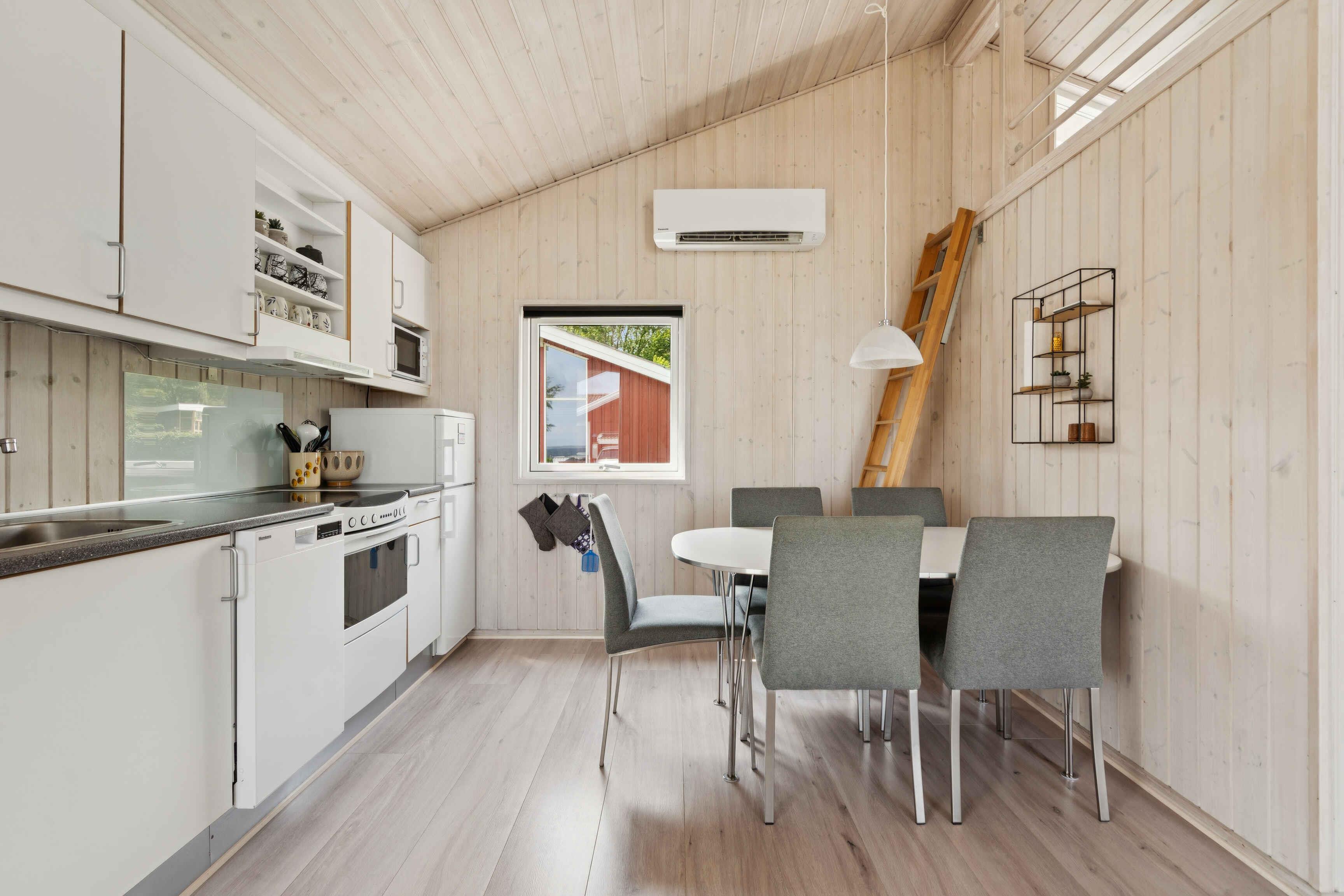 Bij Mommark vindt u dit kleine vakantiehuis met uitzicht op zee, zowel vanuit het huis als vanaf het perceel. Het huis is licht en gezellig ingericht en beschikt over vloerverwarming in het hele huis. Er is een goed uitgeruste open keuken met een vaatwasser, magnetron en koel-/vriescombinatie met een vriescapaciteit van 30 liter. De keuken staat in open verbinding met de woonkamer, waar u een radio met Bluetooth-luidspreker, een Smart TV en een internetverbinding van 200 Mbit vindt, zodat u uw eigen streamingdiensten kunt gebruiken. Vanuit de keuken/woonkamer heeft u toegang tot een heerlijk overdekt terras met barbecue en tuinmeubilair. Het huis biedt plaats aan maximaal zes personen, verdeeld over twee slaapkamers: één met een tweepersoonsbed en één met twee eenpersoonsbedden. De laatste twee slaapplaatsen bevinden zich op de slaapzolder en zijn het meest geschikt voor grotere kinderen (6–12 jaar). Er is een nette badkamer met douche en wasmachine. Het huis beschikt over een energiezuinige warmtepomp die het hele jaar door voor een aangenaam binnenklimaat zorgt. Voor de kleintjes zijn er een kinderstoel en een campingbedje aanwezig. Let op: het opladen van elektrische auto’s is niet toegestaan. Er zijn echter acht laadstations bij Business College Syd in Mommark, op 1500 meter van het huis. Het vakantiehuis ligt in een mooi vakantiegebied bij Mommark. De prachtige natuur nodigt uit tot wandelen en fietsen. Een klein, gezellig bospad leidt naar het strand met een zwemsteiger. Het huis ligt op een gemeenschappelijk terrein en richting het strand is er een groot open grasveld met een voetbalveld, vuurplaats en een kleine speeltuin. Let op: Niet te huur voor commercieel gebruik.