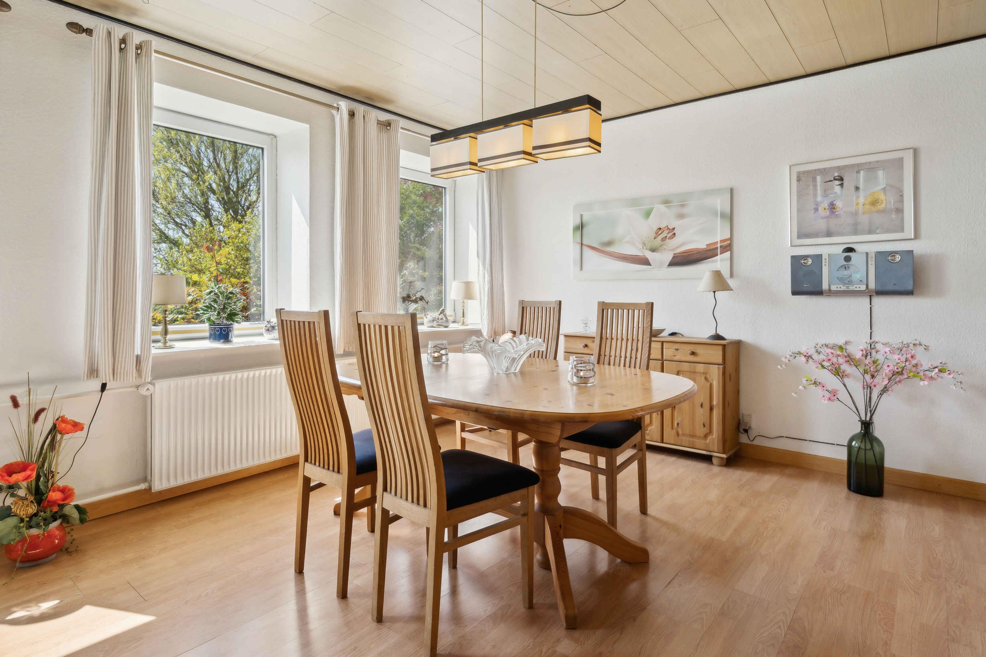 Welkom in dit vakantieappartement dat met twee slaapkamers plaats biedt aan een gezin van vier of vrienden op reis. (Er is een vijfde slaapplaats op de overloop in het trappenhuis). Het woonoppervlak strekt zich uit over twee verdiepingen en naast de slaapkamers is er een keuken en een badkamer met droger en wasmachine. Het buitengebied van het vakantiehuis biedt de mogelijkheid om te barbecueën of 's avonds in de tuin te ontspannen wanneer er minder verkeer op de weg is. Het strand is gemakkelijk per fiets te bereiken en het populaire Gendarmsti-pad loopt vlak langs het pand. Het beste strand van het eiland, Kerneland, ligt op ongeveer 6 km van het vakantieappartement. De voormalige garage is omgebouwd tot een gezellige ruimte met tafels en stoelen waar bij slecht weer gerookt kan worden. Er is ook een grote roestvrijstalen tafel met gootsteen die kan worden gebruikt als binnenplaats voor het schoonmaken van vis. U kunt boodschappen doen in Skovby, als u niet naar Høruphav of Sønderborg wilt gaan, waar u een breed scala aan winkels, gezellige restaurants en een mooie haven met veel eetgelegenheden en bezienswaardigheden vindt. Breng een heerlijke vakantie door in dit prachtige appartement met een prachtig uitzicht op het water. Let op: u hoeft niet extra te betalen voor verwarming. Het huis heeft glasvezelinternet 1000/1000, wat handig is als u tijdens de vakantie moet werken. Er zijn ook goede vismogelijkheden in de omgeving en voldoende ruimte in de vriezer.