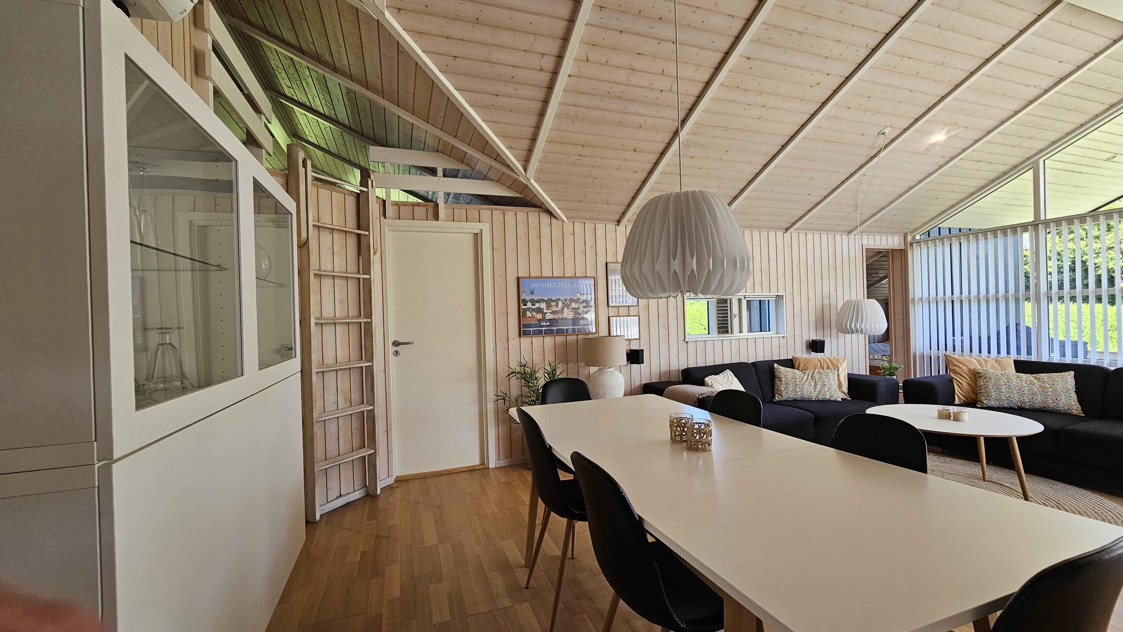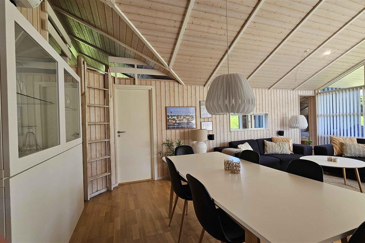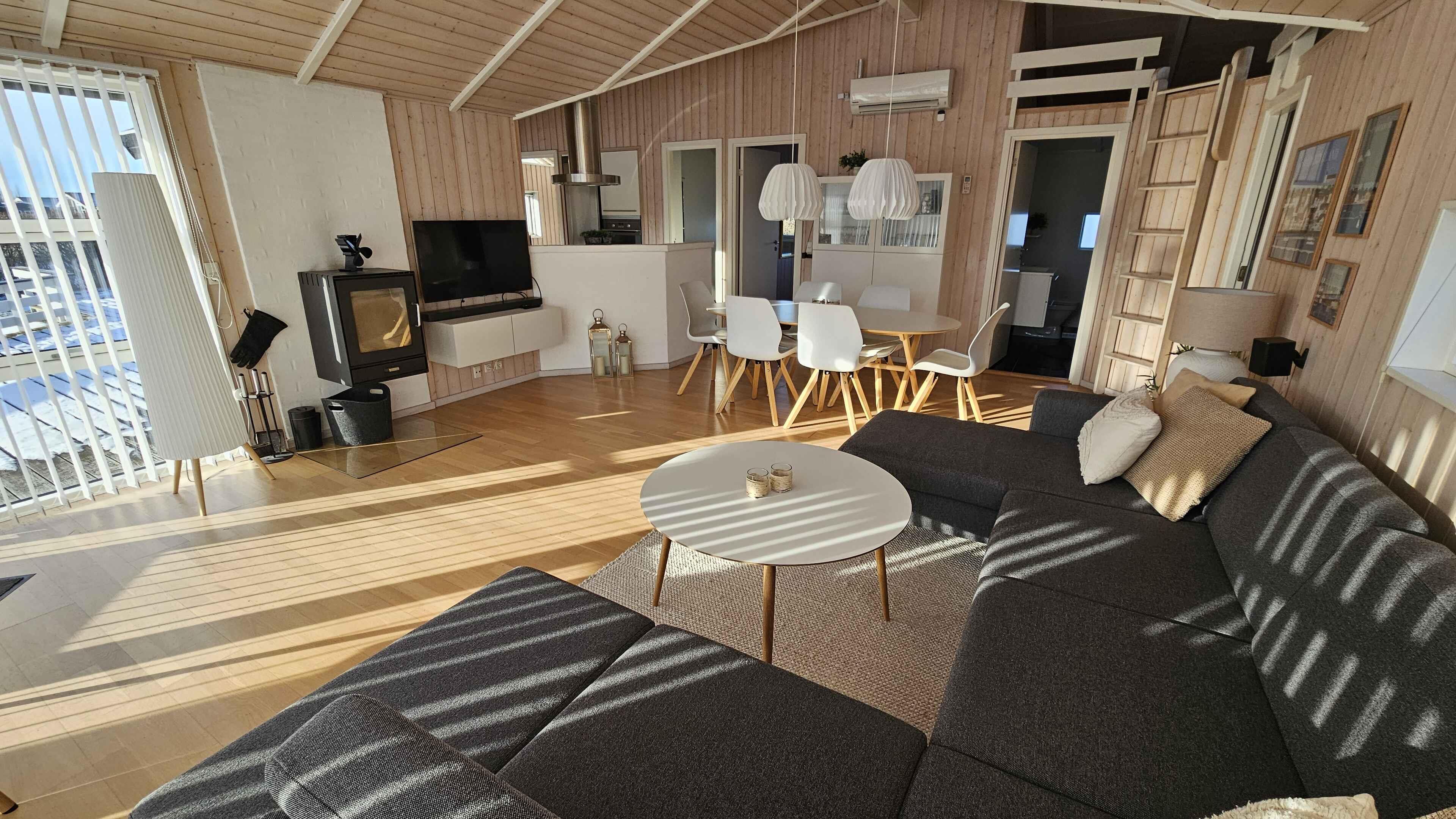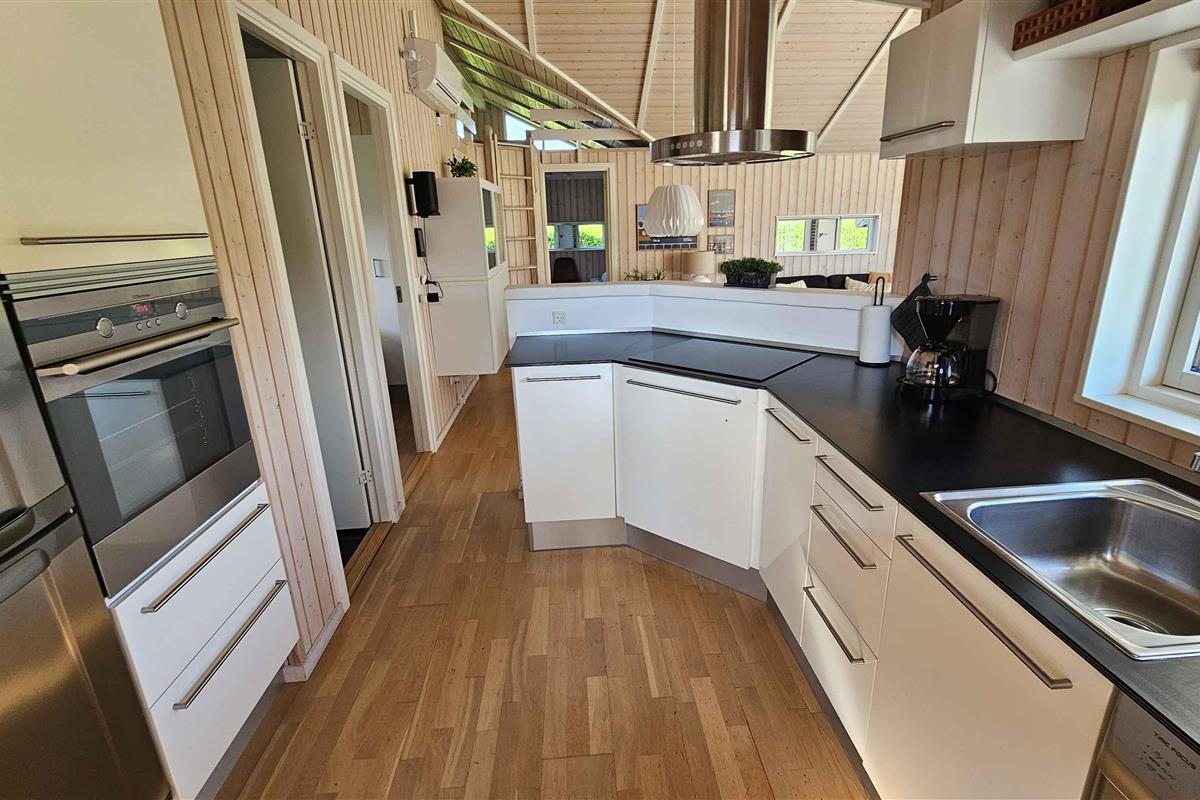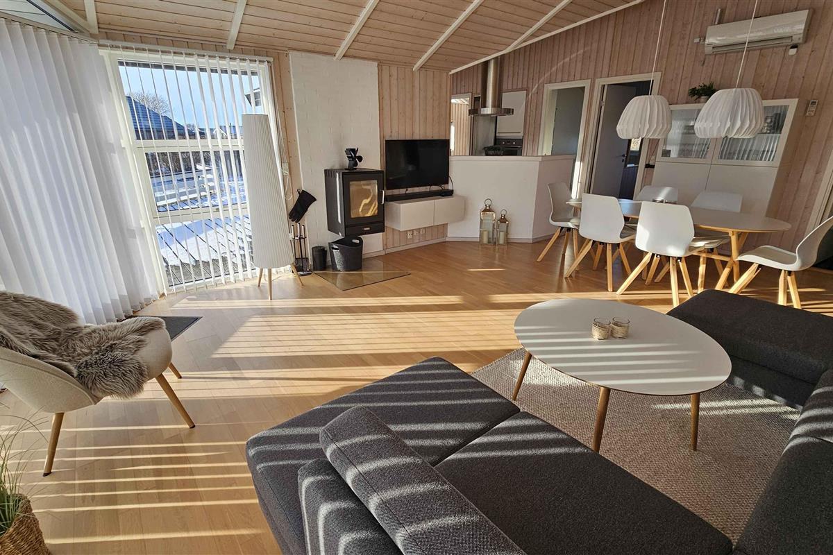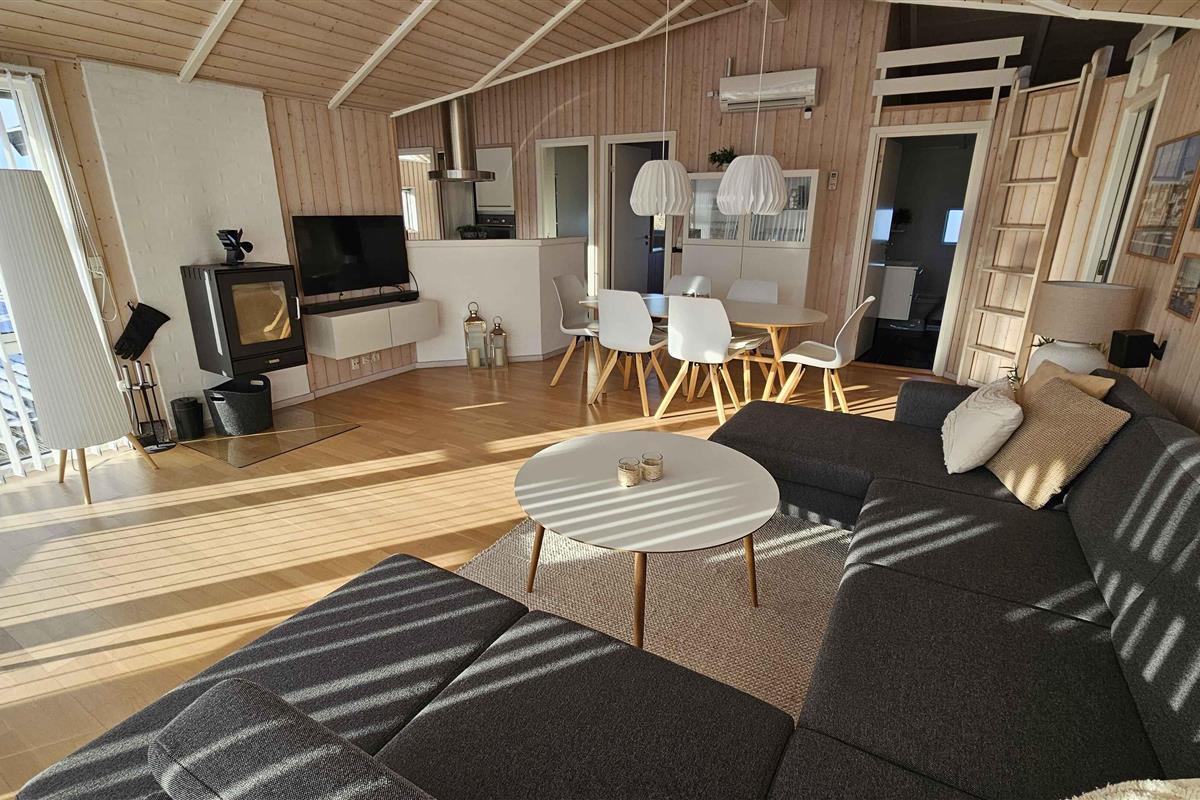 Licht en modern vakantiehuis met bubbelbad in het populaire vakantiegebied bij Skovmose, dat bekend staat om het heerlijke kindvriendelijke zandstrand. Het zomerhuis is smaakvol ingericht en geschikt voor de veeleisende huurder die kwaliteit waardeert: uw thuis weg van huis. Er is een nette hal met wasmachine en droger, grote, lichte en open keuken/eetkamer met gewelfde plafonds en directe toegang tot het grote, gedeeltelijk overdekte terras. Woonkamer met tv met zowel Deense als Duitse zenders. Hier kun je ook een goede film streamen via de geïnstalleerde Chromecast, want er is een 1Gbit internetverbinding in huis. Als alternatief kunt u de televisie uitzetten en gezellig een goed boek lezen voor de knetterende houtkachel. Er zijn drie goede slaapkamers met veel kastruimte, evenals een gezellige nis in de woonkamer en een vide waar de kinderen lekker kunnen ravotten en hun eigen ‘huis’ kunnen inrichten. Er zijn twee badkamers met douche, waarvan één tevens beschikt over een heerlijk bubbelbad voor twee personen en directe toegang tot de sauna van het huis. In de grote tuin is veel ruimte voor balspelen en spelletjes en er staat een zandbak. De woning wordt verwarmd door een zuinige en energiebesparende warmtepomp. GEEN verhuur voor jeugdgroepen! Let op: Niet te huur voor commercieel gebruik.