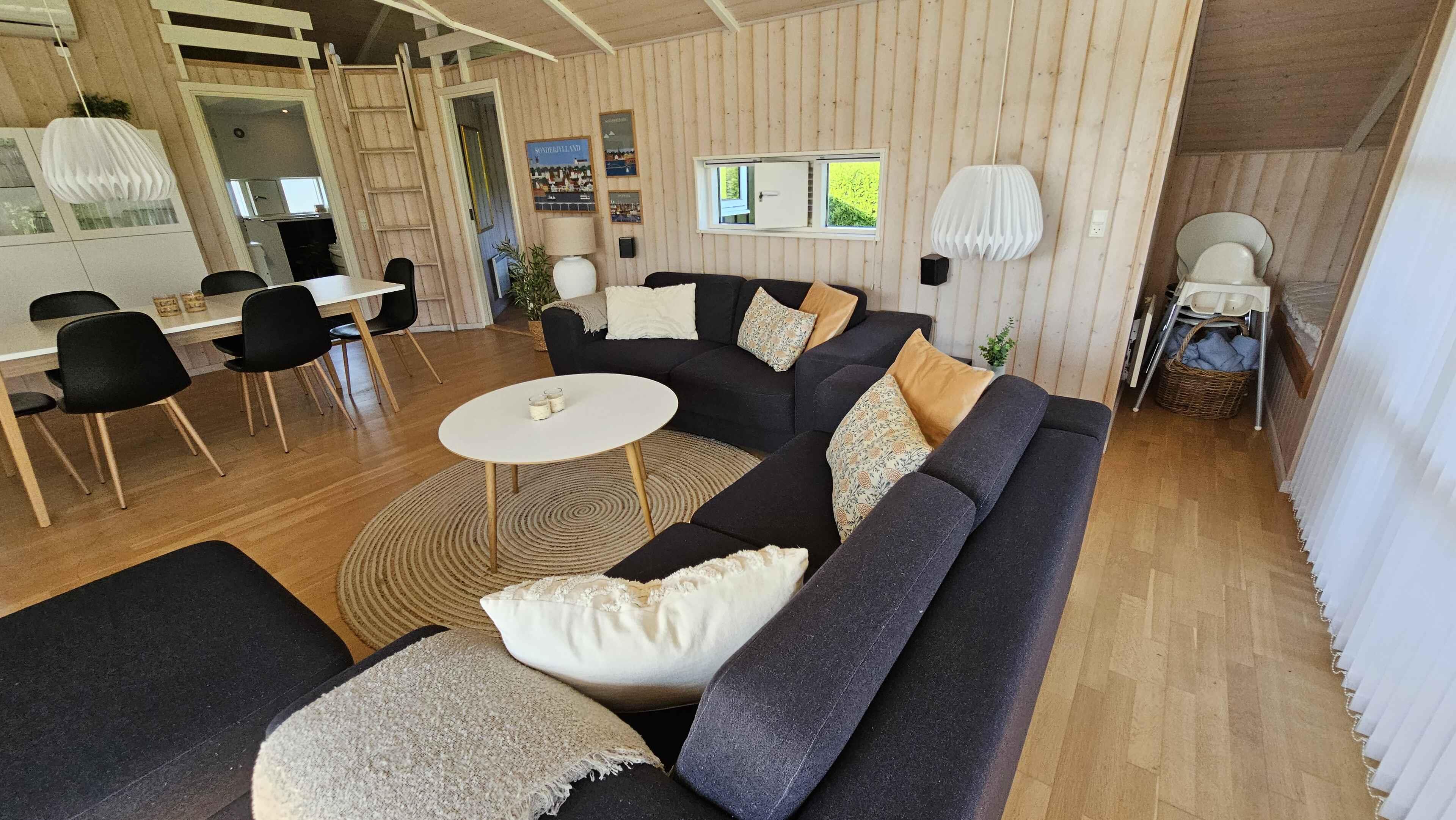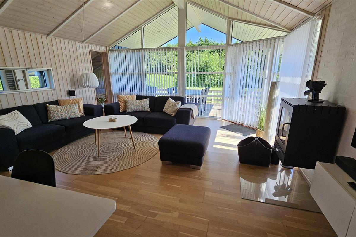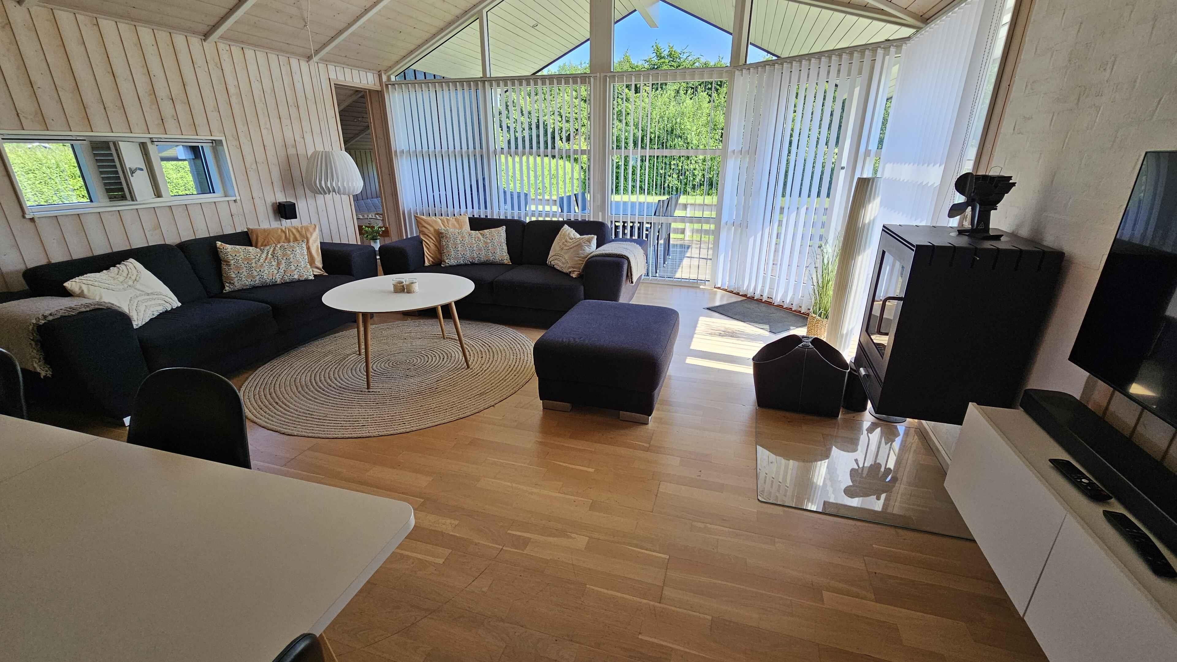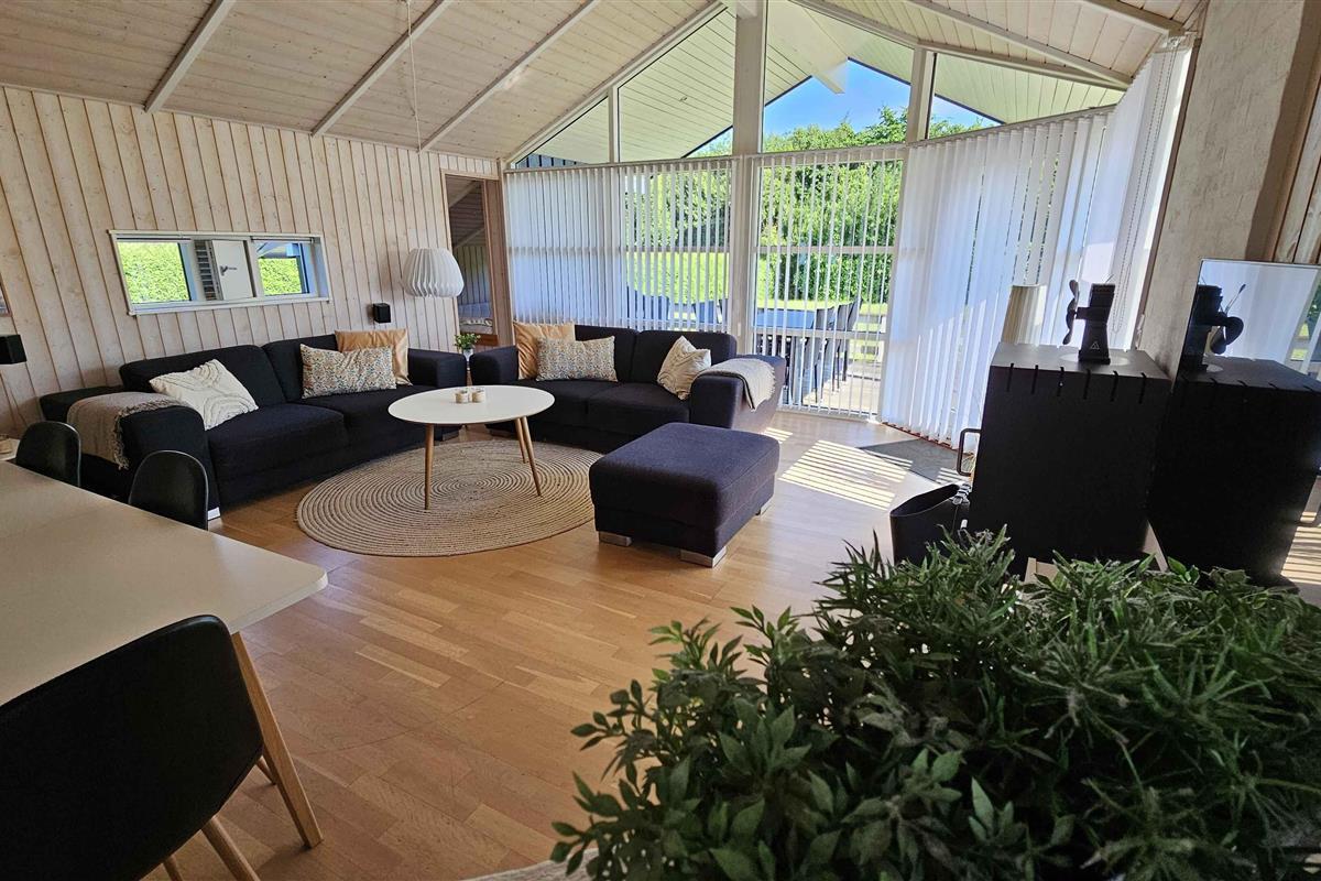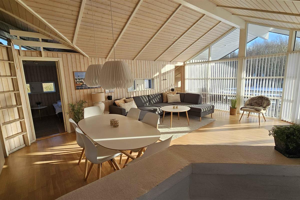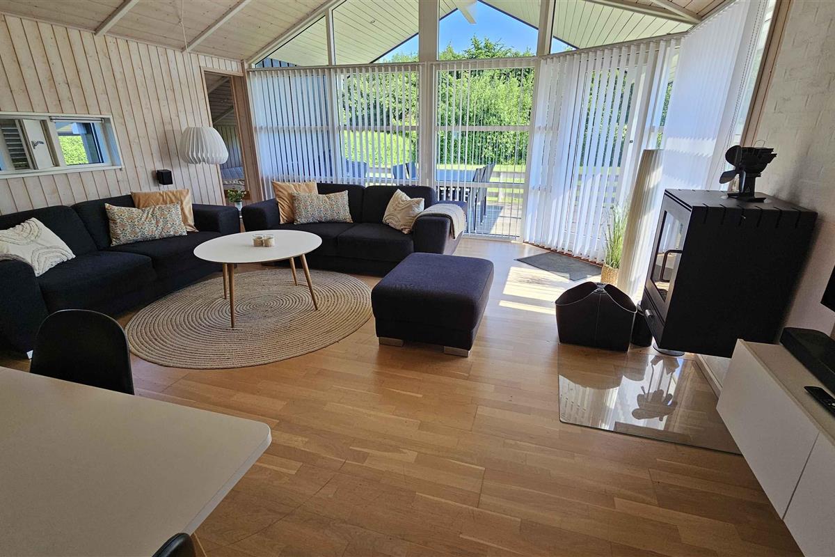 Licht en modern vakantiehuis met bubbelbad in het populaire vakantiegebied bij Skovmose, dat bekend staat om het heerlijke kindvriendelijke zandstrand. Het zomerhuis is smaakvol ingericht en geschikt voor de veeleisende huurder die kwaliteit waardeert: uw thuis weg van huis. Er is een nette hal met wasmachine en droger, grote, lichte en open keuken/eetkamer met gewelfde plafonds en directe toegang tot het grote, gedeeltelijk overdekte terras. Woonkamer met tv met zowel Deense als Duitse zenders. Hier kun je ook een goede film streamen via de geïnstalleerde Chromecast, want er is een 1Gbit internetverbinding in huis. Als alternatief kunt u de televisie uitzetten en gezellig een goed boek lezen voor de knetterende houtkachel. Er zijn drie goede slaapkamers met veel kastruimte, evenals een gezellige nis in de woonkamer en een vide waar de kinderen lekker kunnen ravotten en hun eigen ‘huis’ kunnen inrichten. Er zijn twee badkamers met douche, waarvan één tevens beschikt over een heerlijk bubbelbad voor twee personen en directe toegang tot de sauna van het huis. In de grote tuin is veel ruimte voor balspelen en spelletjes en er staat een zandbak. De woning wordt verwarmd door een zuinige en energiebesparende warmtepomp. GEEN verhuur voor jeugdgroepen! Let op: Niet te huur voor commercieel gebruik.