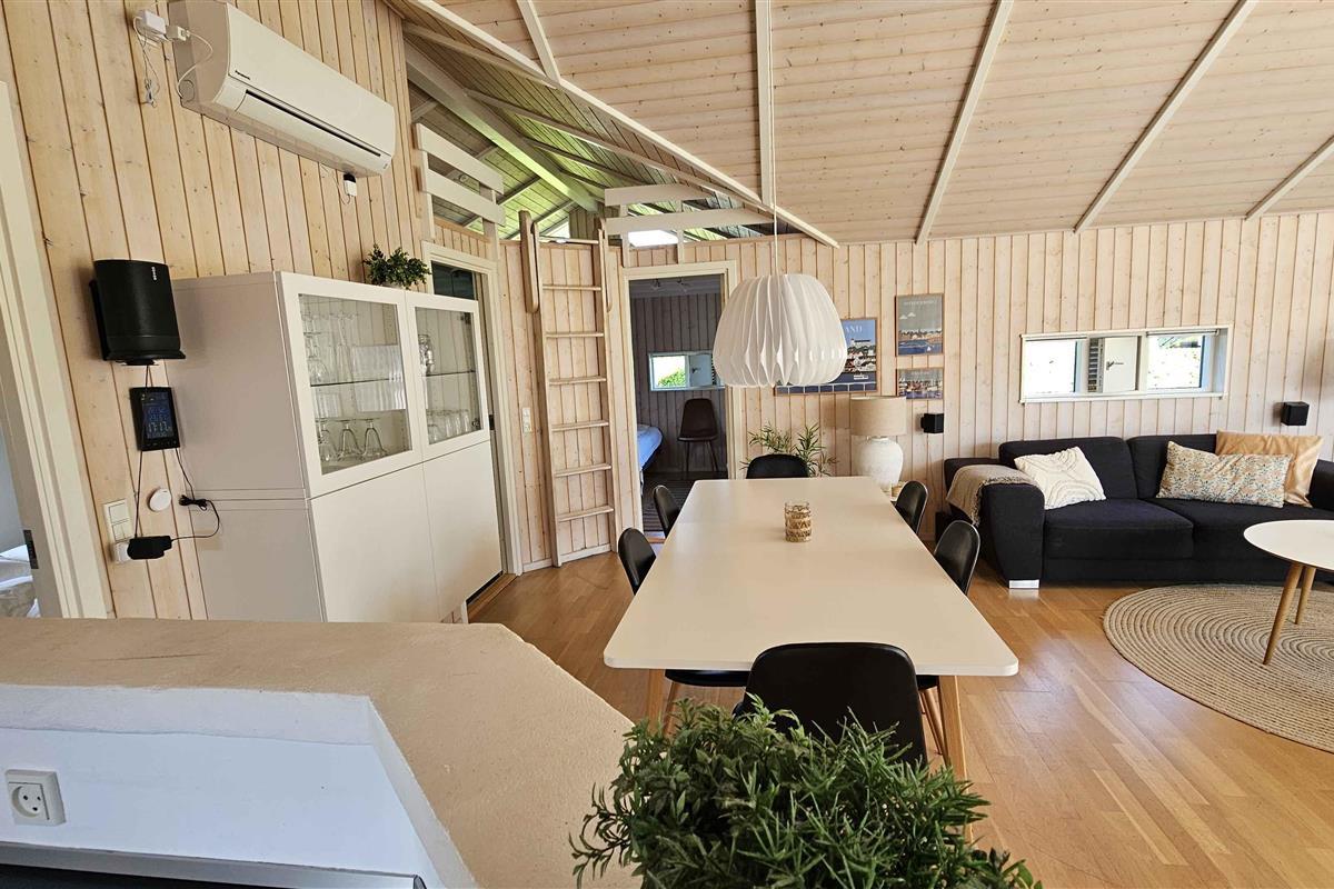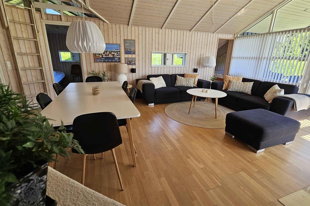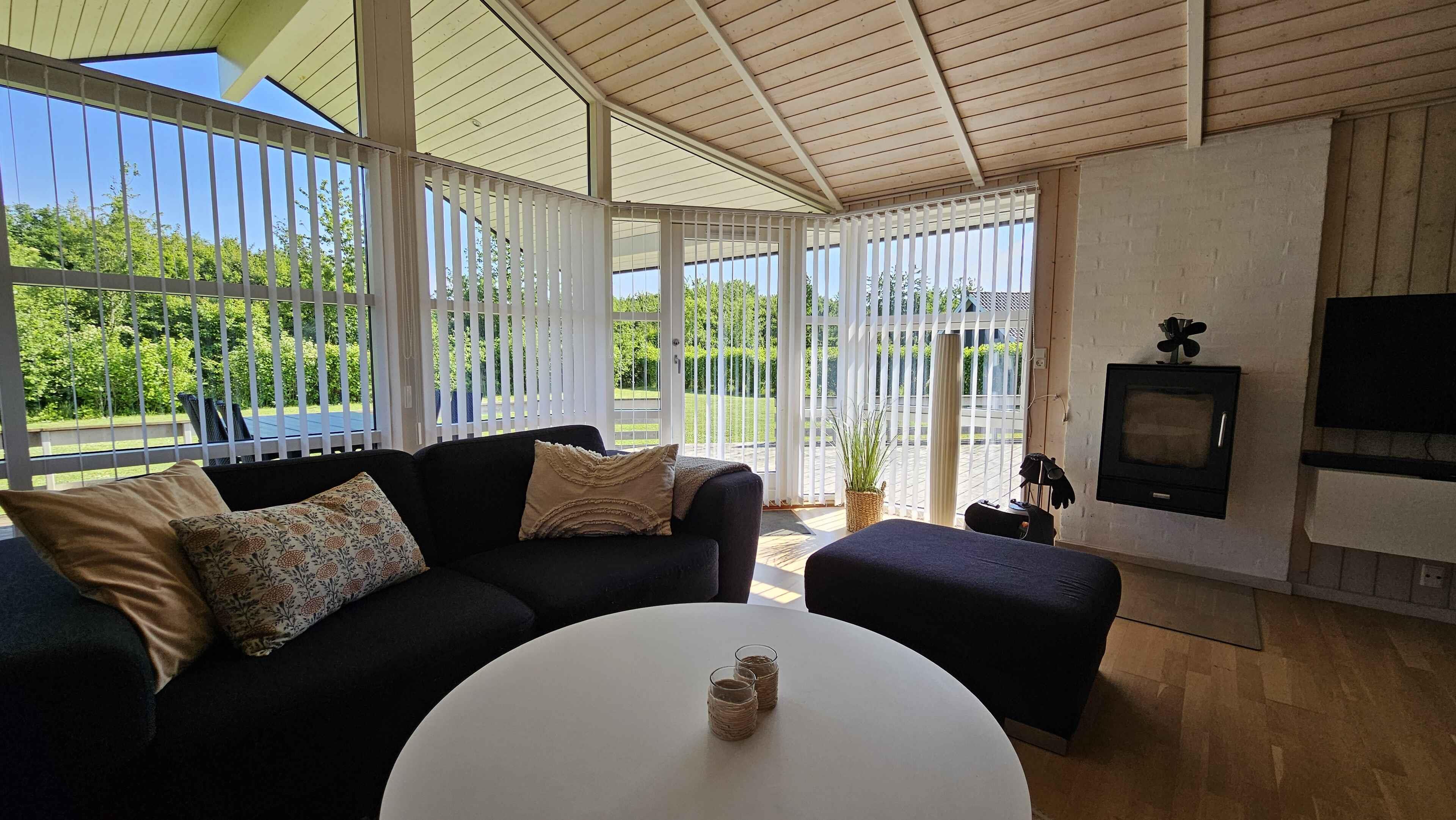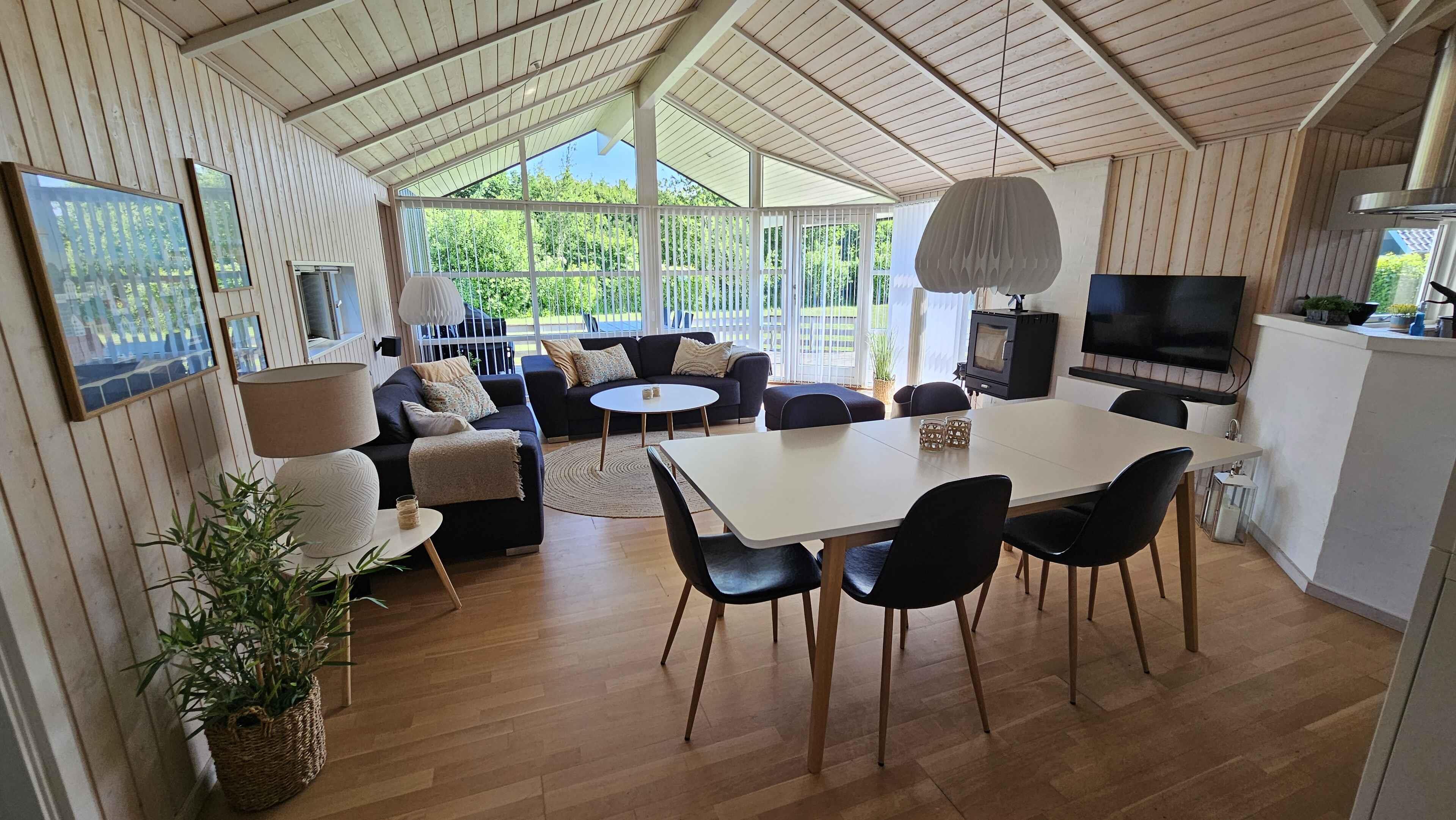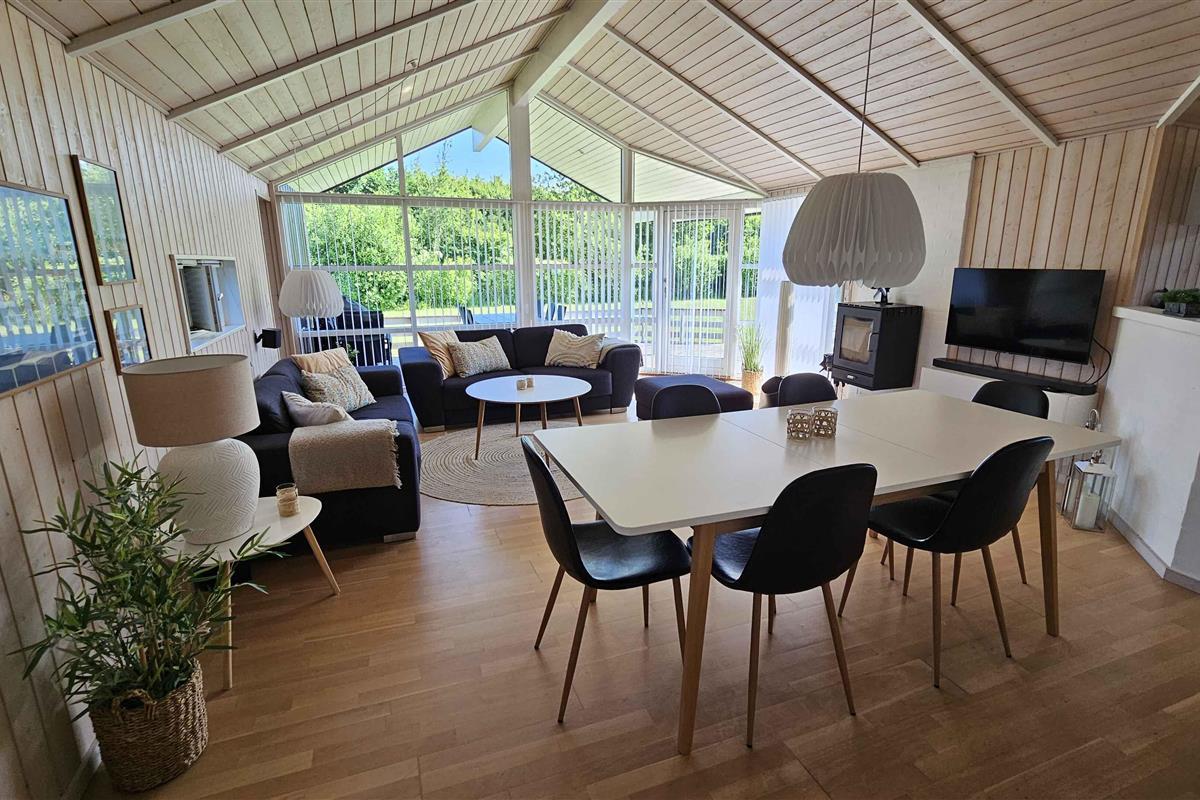 Licht en modern vakantiehuis met bubbelbad in het populaire vakantiegebied bij Skovmose, dat bekend staat om het heerlijke kindvriendelijke zandstrand. Het zomerhuis is smaakvol ingericht en geschikt voor de veeleisende huurder die kwaliteit waardeert: uw thuis weg van huis. Er is een nette hal met wasmachine en droger, grote, lichte en open keuken/eetkamer met gewelfde plafonds en directe toegang tot het grote, gedeeltelijk overdekte terras. Woonkamer met tv met zowel Deense als Duitse zenders. Hier kun je ook een goede film streamen via de geïnstalleerde Chromecast, want er is een 1Gbit internetverbinding in huis. Als alternatief kunt u de televisie uitzetten en gezellig een goed boek lezen voor de knetterende houtkachel. Er zijn drie goede slaapkamers met veel kastruimte, evenals een gezellige nis in de woonkamer en een vide waar de kinderen lekker kunnen ravotten en hun eigen ‘huis’ kunnen inrichten. Er zijn twee badkamers met douche, waarvan één tevens beschikt over een heerlijk bubbelbad voor twee personen en directe toegang tot de sauna van het huis. In de grote tuin is veel ruimte voor balspelen en spelletjes en er staat een zandbak. De woning wordt verwarmd door een zuinige en energiebesparende warmtepomp. GEEN verhuur voor jeugdgroepen! Let op: Niet te huur voor commercieel gebruik.