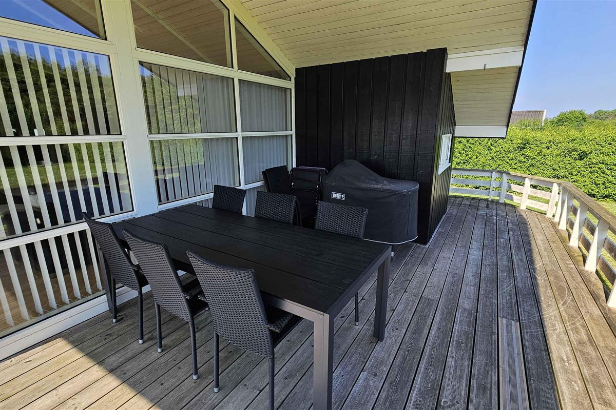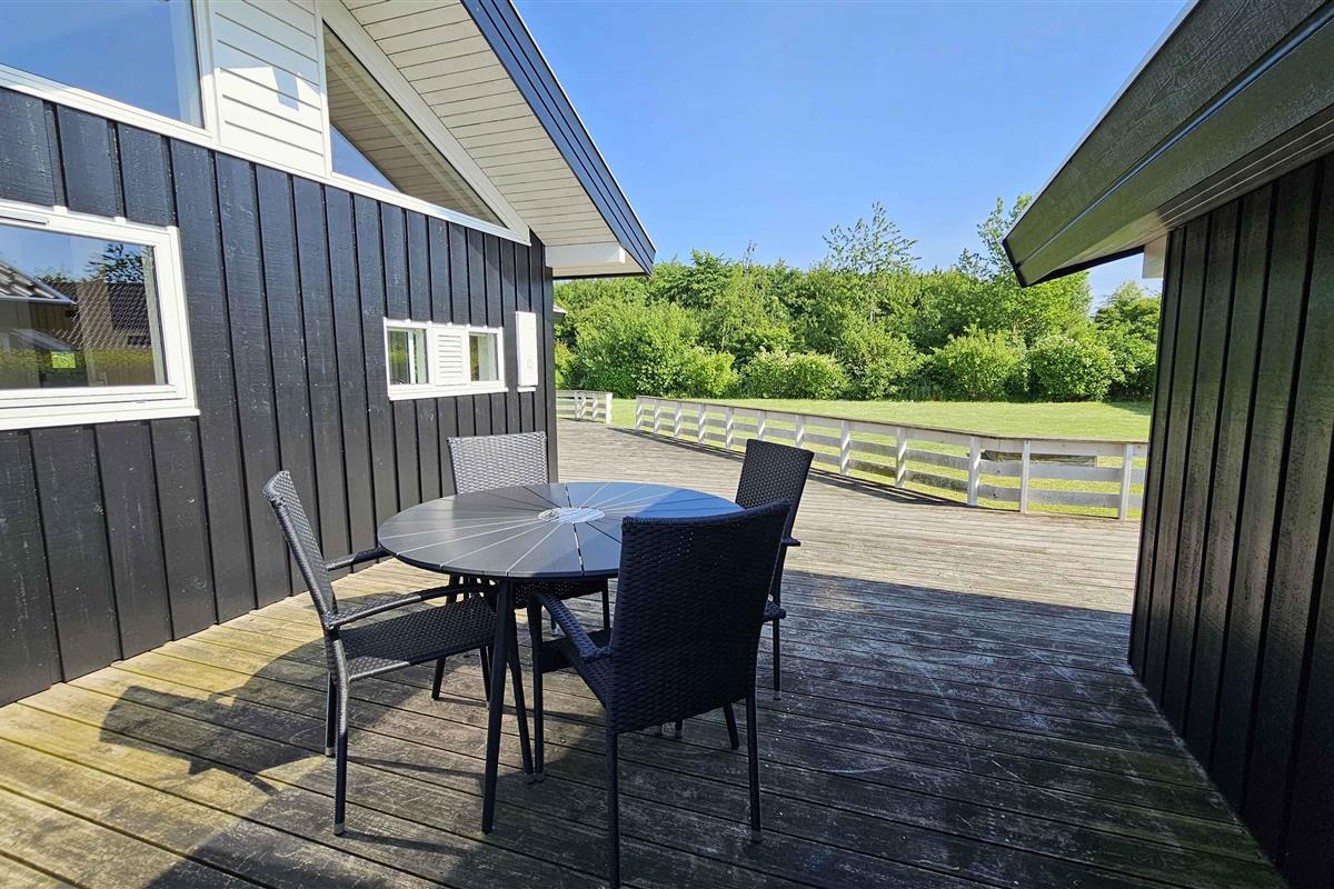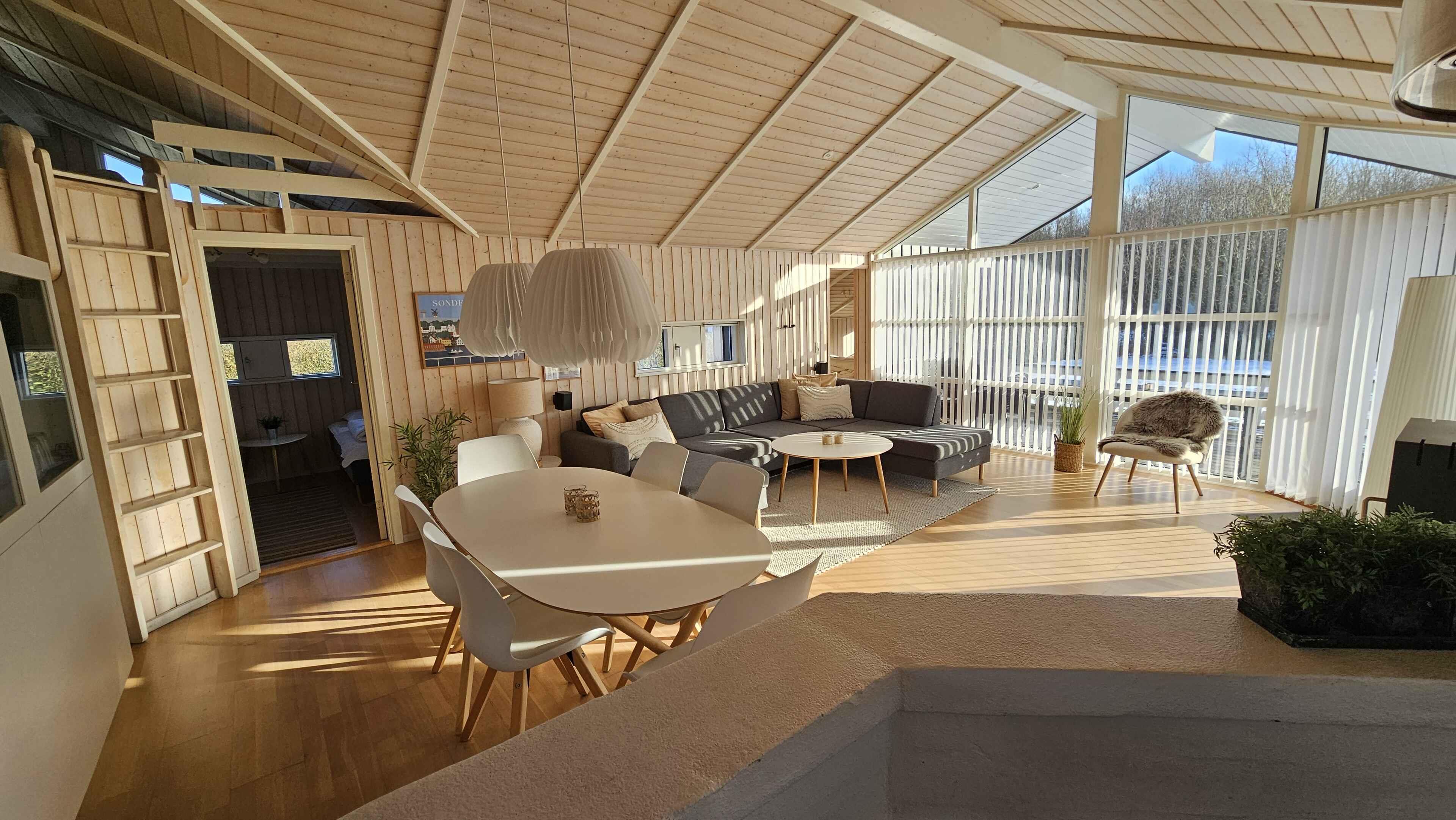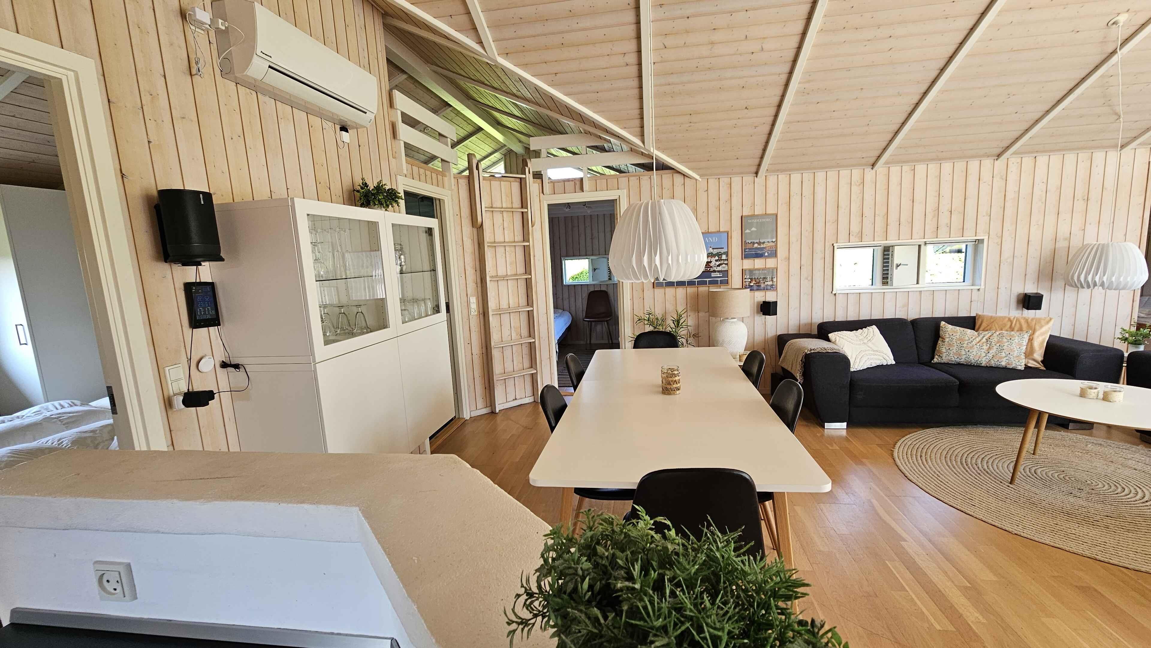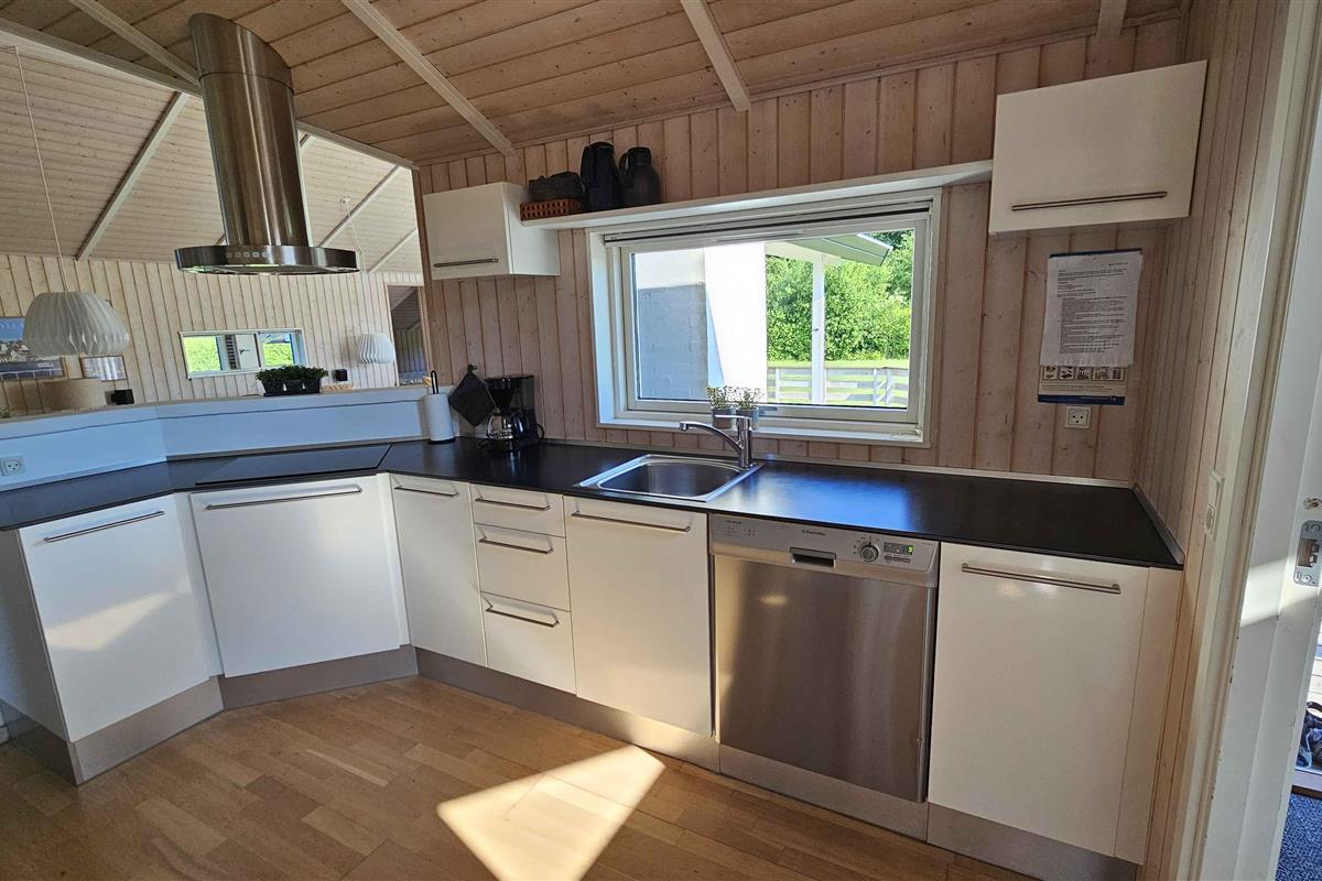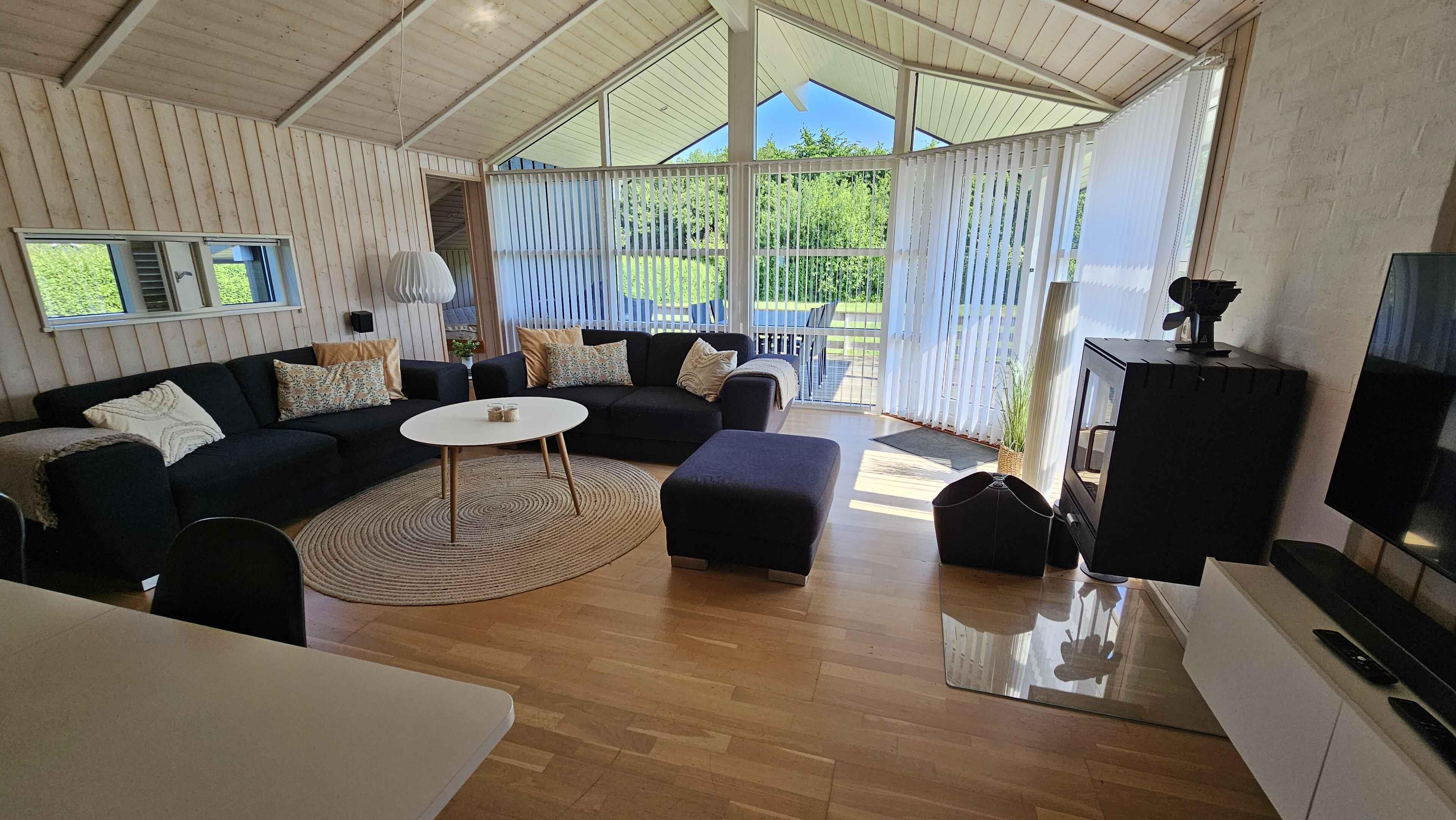 Licht en modern vakantiehuis met bubbelbad in het populaire vakantiegebied bij Skovmose, dat bekend staat om het heerlijke kindvriendelijke zandstrand. Het zomerhuis is smaakvol ingericht en geschikt voor de veeleisende huurder die kwaliteit waardeert: uw thuis weg van huis. Er is een nette hal met wasmachine en droger, grote, lichte en open keuken/eetkamer met gewelfde plafonds en directe toegang tot het grote, gedeeltelijk overdekte terras. Woonkamer met tv met zowel Deense als Duitse zenders. Hier kun je ook een goede film streamen via de geïnstalleerde Chromecast, want er is een 1Gbit internetverbinding in huis. Als alternatief kunt u de televisie uitzetten en gezellig een goed boek lezen voor de knetterende houtkachel. Er zijn drie goede slaapkamers met veel kastruimte, evenals een gezellige nis in de woonkamer en een vide waar de kinderen lekker kunnen ravotten en hun eigen ‘huis’ kunnen inrichten. Er zijn twee badkamers met douche, waarvan één tevens beschikt over een heerlijk bubbelbad voor twee personen en directe toegang tot de sauna van het huis. In de grote tuin is veel ruimte voor balspelen en spelletjes en er staat een zandbak. De woning wordt verwarmd door een zuinige en energiebesparende warmtepomp. GEEN verhuur voor jeugdgroepen! Let op: Niet te huur voor commercieel gebruik.