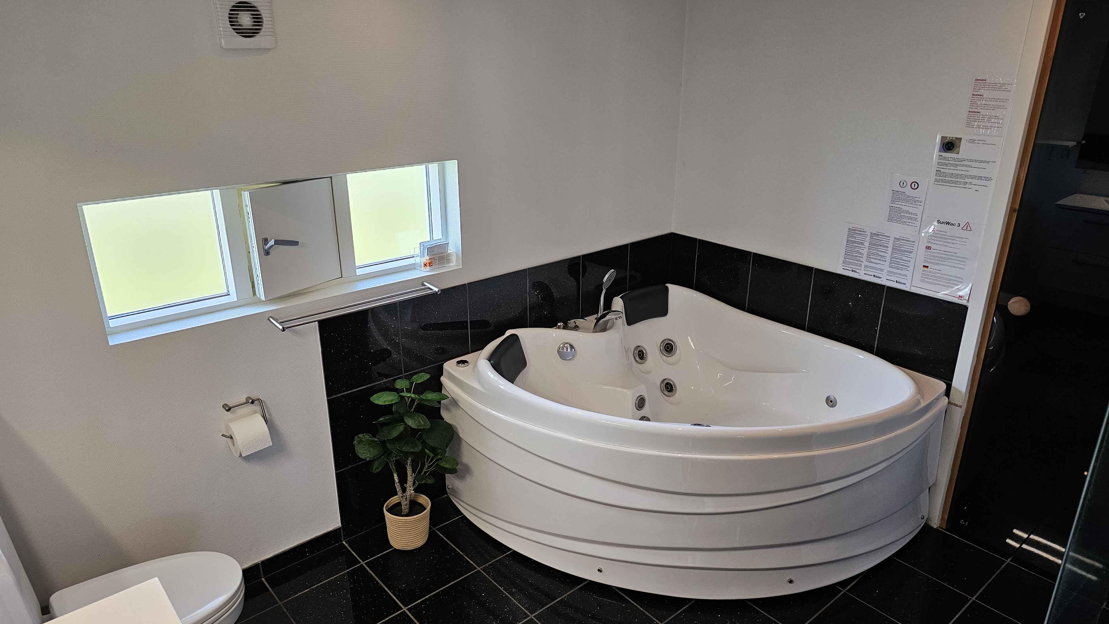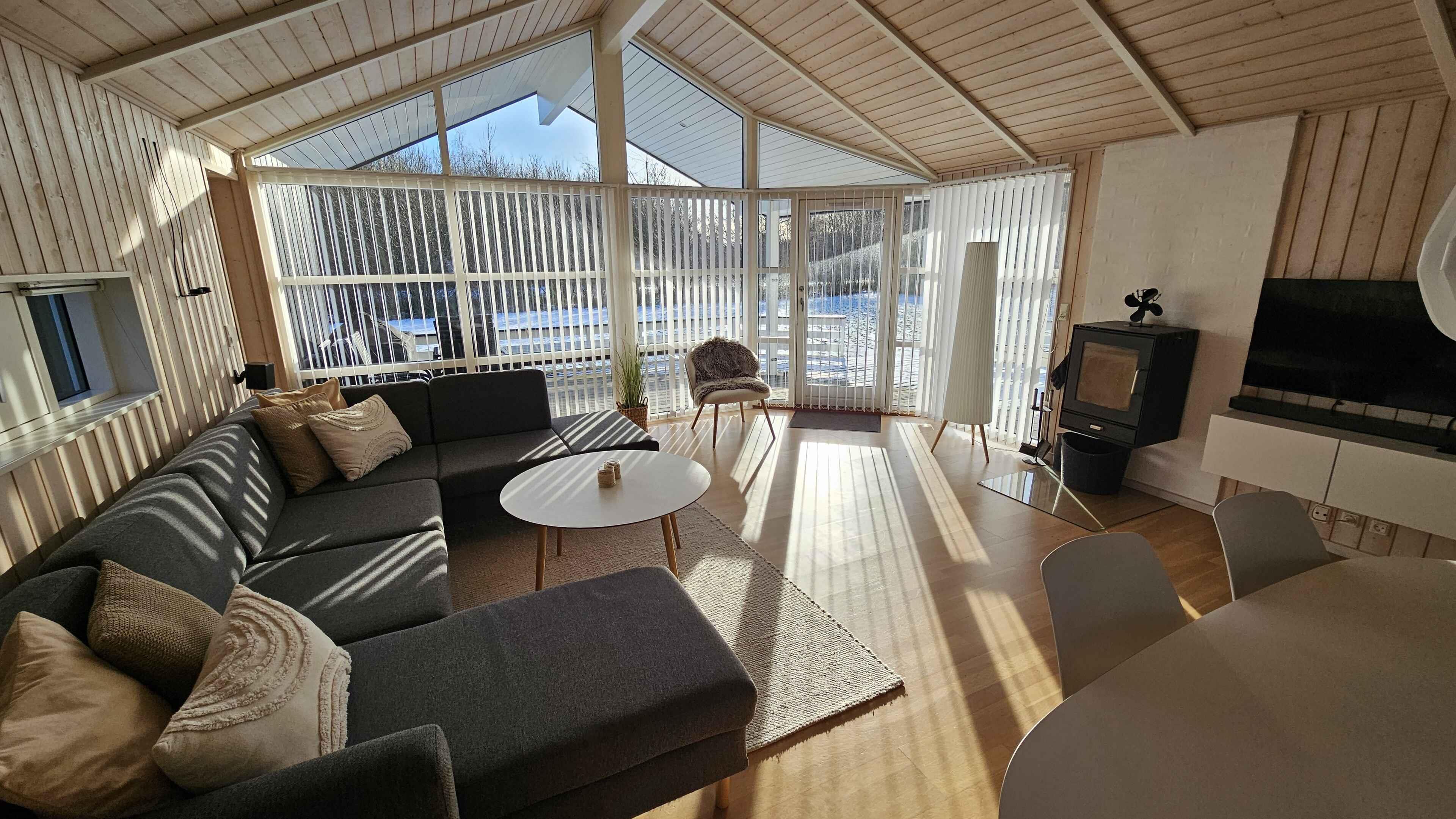 Modern en gezellig vakantiehuis met bubbelbad en sauna nabij kindvriendelijk strand in Sydals, Denemarken.