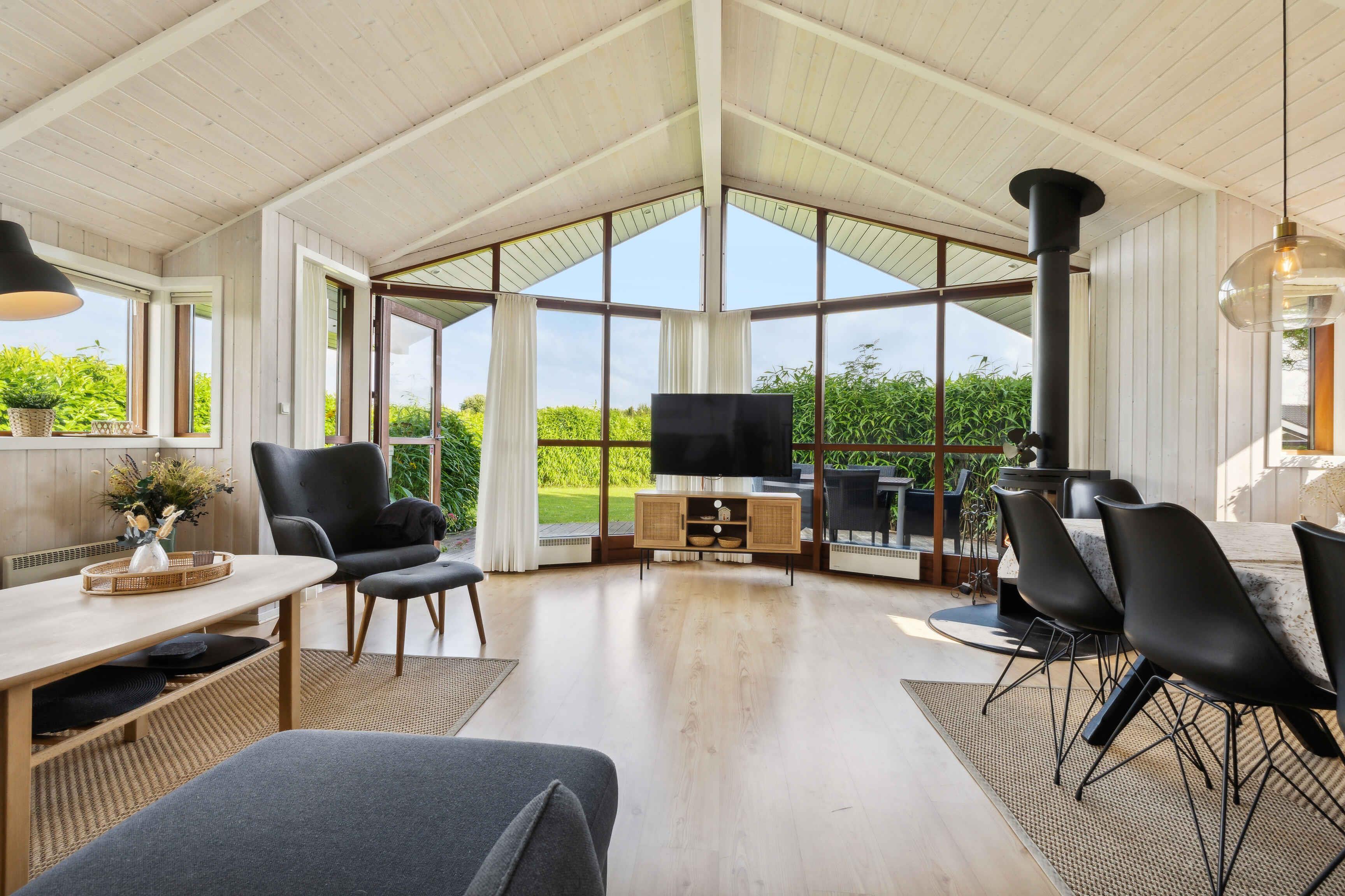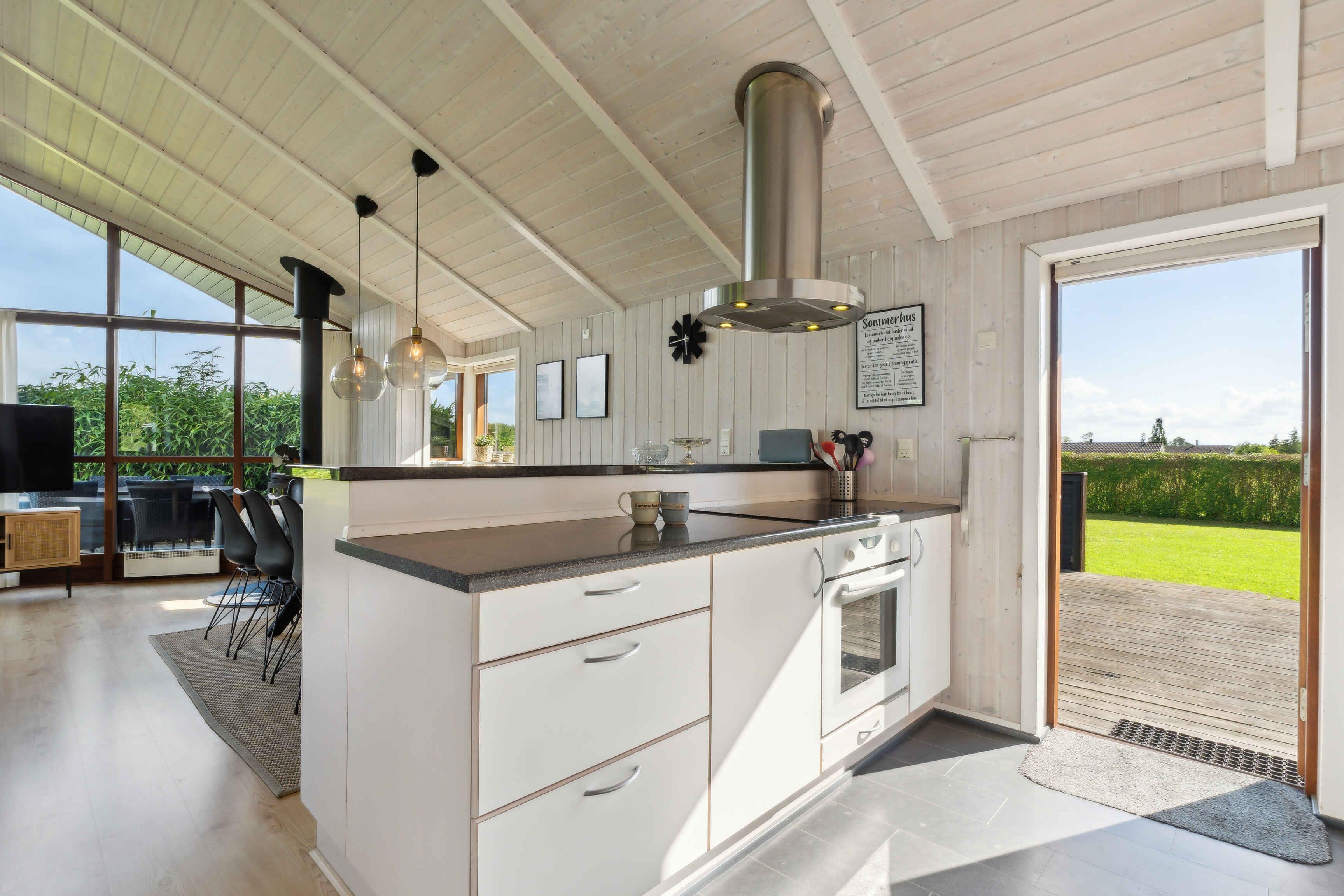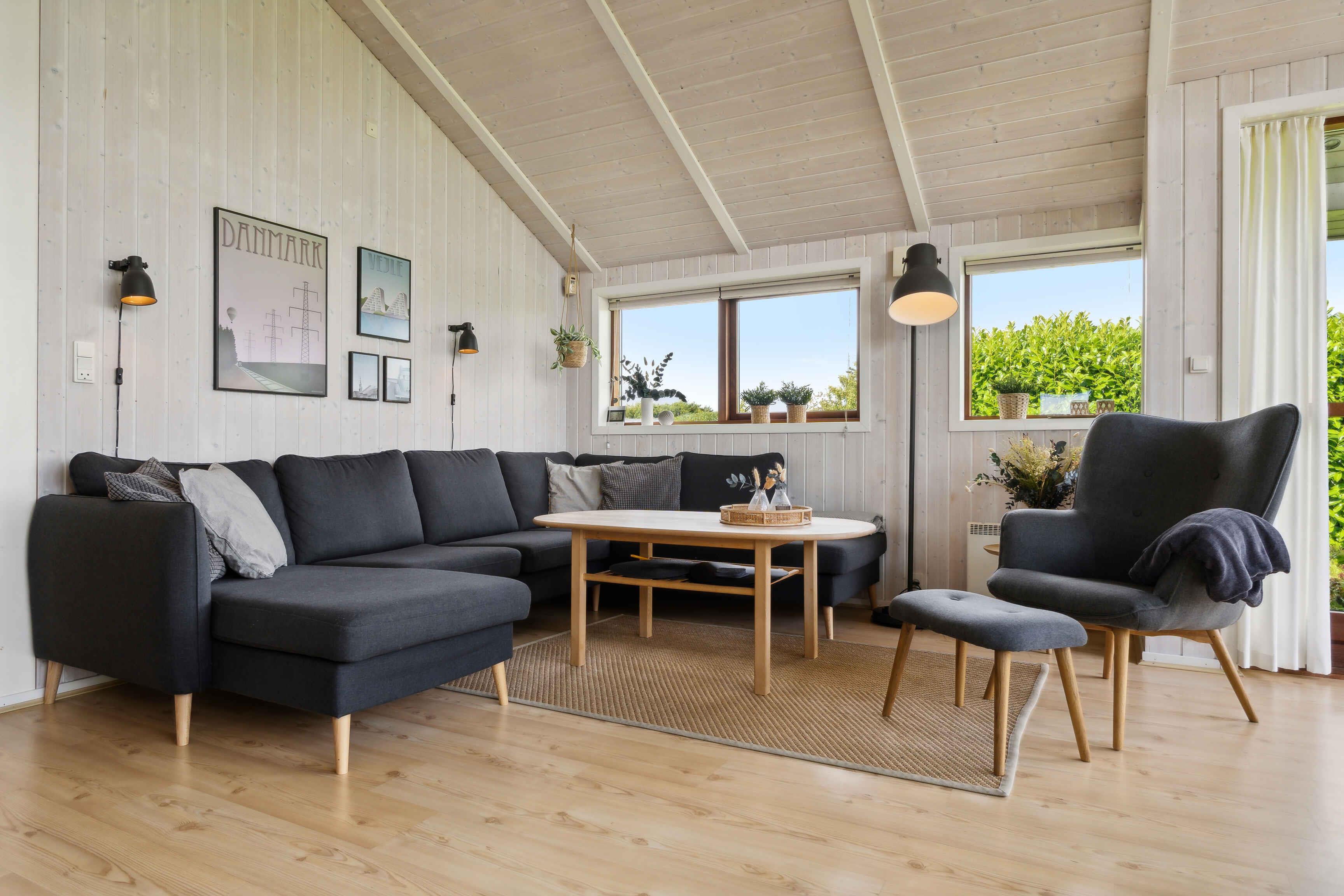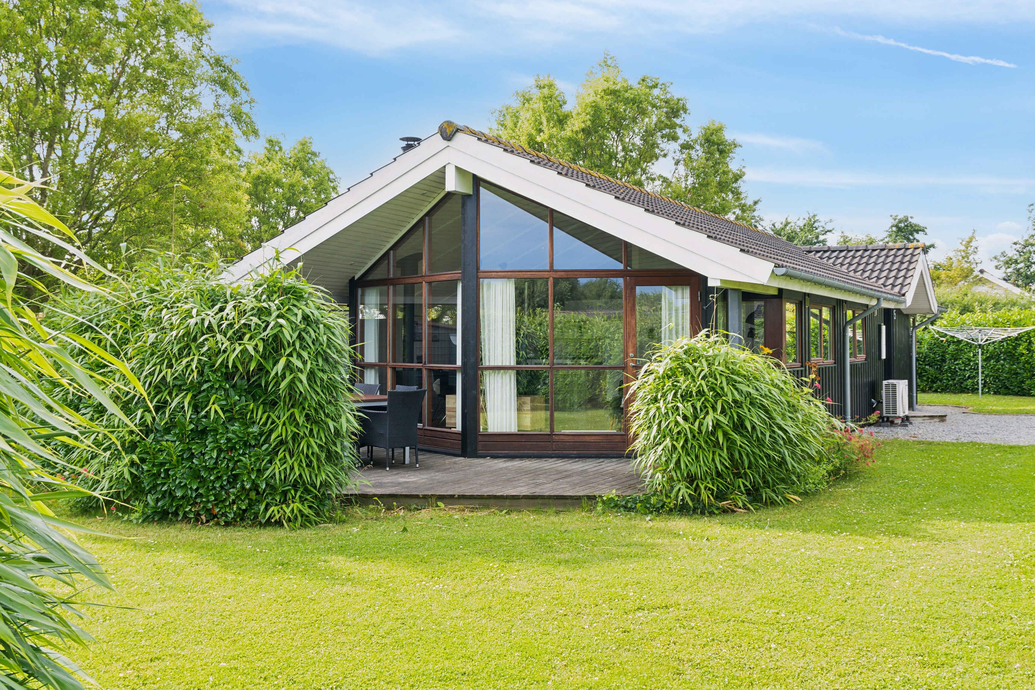 Modern en sfeervol zomerhuis bij Skovmose met spa, grote tuin en kindvriendelijk strand op loopafstand.