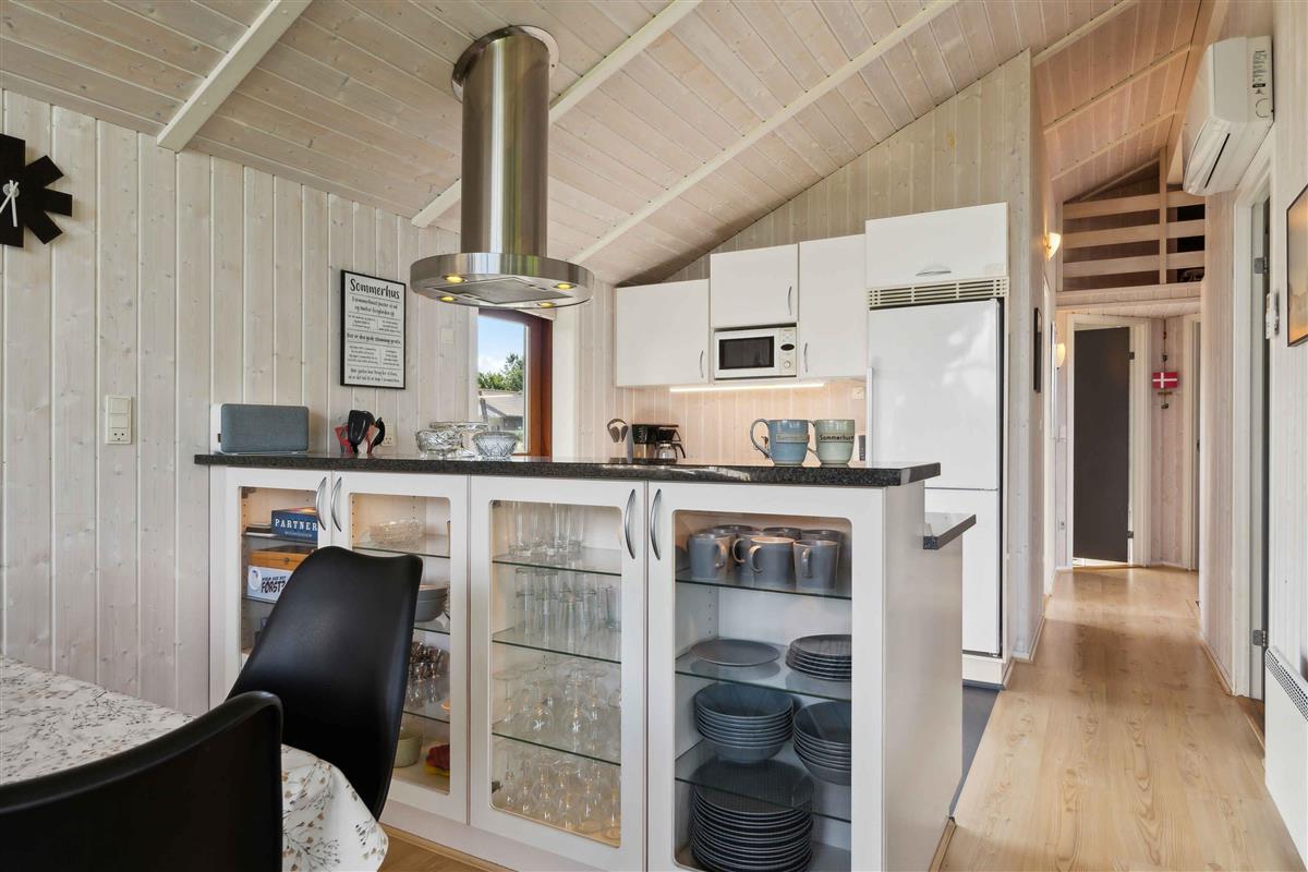 Goed ingericht vakantiehuis in het populaire Skovmose op Als. Het zomerhuis is smaakvol ingericht en bevat een grote keuken/eetkamer met grote ramen en 3 kamers, een vide, houtkachel, warmtepomp en spa. 2 mooie terrassen en een heerlijke grote tuin.