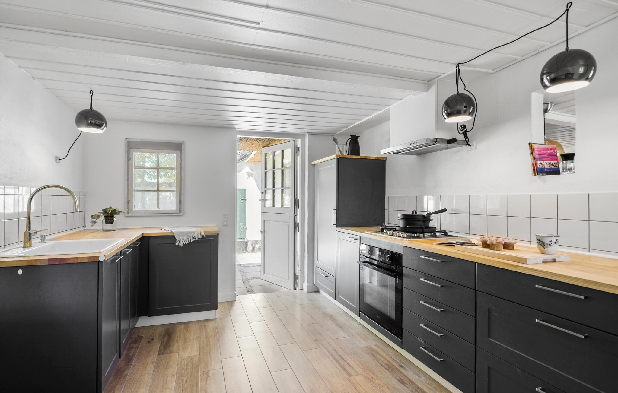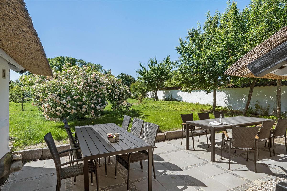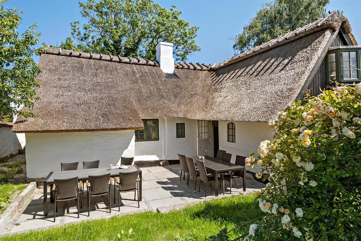 Charmant vakantiehuis met rieten dak, tuin, hot tub en moderne keuken in natuurrijke omgeving in Denemarken.
