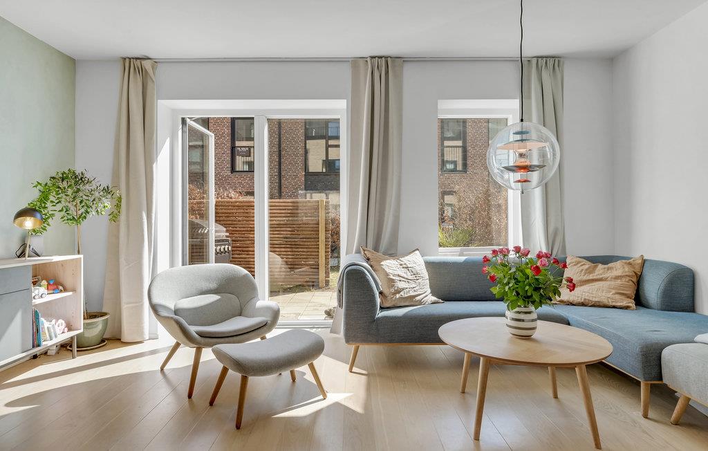 Dicht bij het populaire Amager strandpark heet dit moderne rijtjeshuis u welkom.