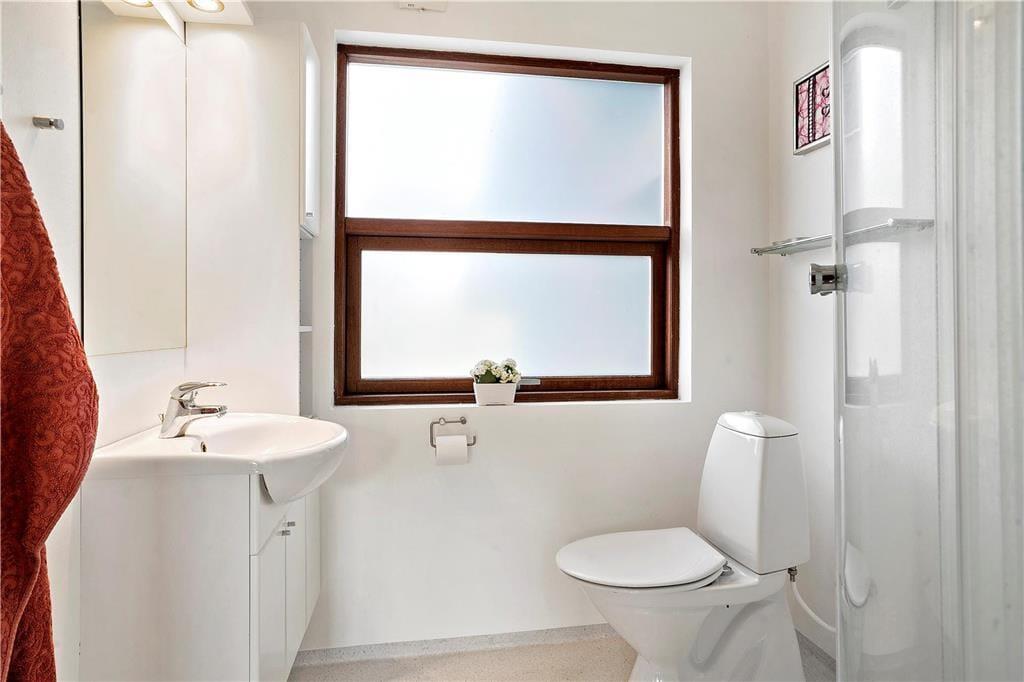 Im Haupthaus befindet sich ein Schlafzimmer mit zwei Einzelbetten, ein Schlafzimmer mit Etagenbett und ein helles Badezimmer. Von den Doppelbetten der zwei Schlafzimmern des Nebengebäudes haben Sie schönste Aussicht über Felder und den Damm nach Alrø.