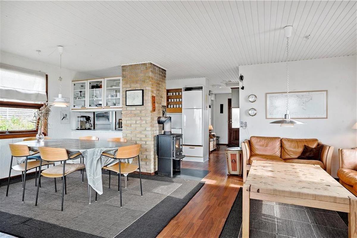 Dieses Sommerhaus liegt direkt am Damm zur Insel Alrø, die mit 8 km2 die größte der 3 Inseln im Horsens Fjord ist. Die langgestreckte, flache Insel war in der Steinzeit durch eine Senke in zwei Hälften geteilt, dies kann man nördlich der aneinander gereihten Bauernhöfe noch erahnen. Die Höfe liegen entlang der Anhöhe, auf welcher die Straße quer über Alrø verläuft.Alrø ist bekannt für seine wunderschöne Landschaft und gute Küche. Im Sommer fährt eine kleine Fahrradfähre von der Insel zur kleinen Hafenstadt Snaptun. Der Horsensfjord um Alrø ist besonders beliebt bei Windsurfern und Kajakfahrern und in Horsens befindet sich Dänemarks breiteste Fußgängerzone.