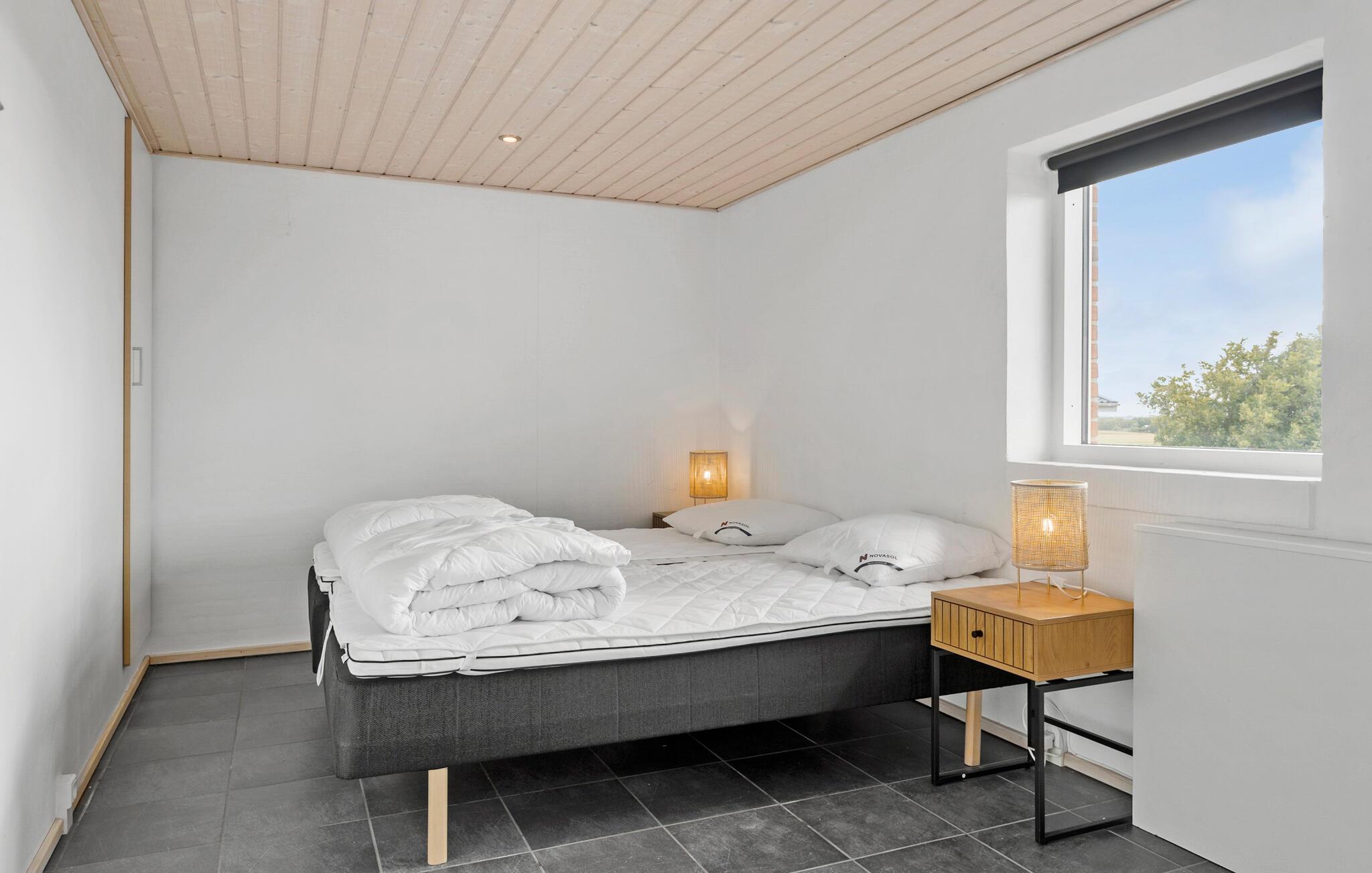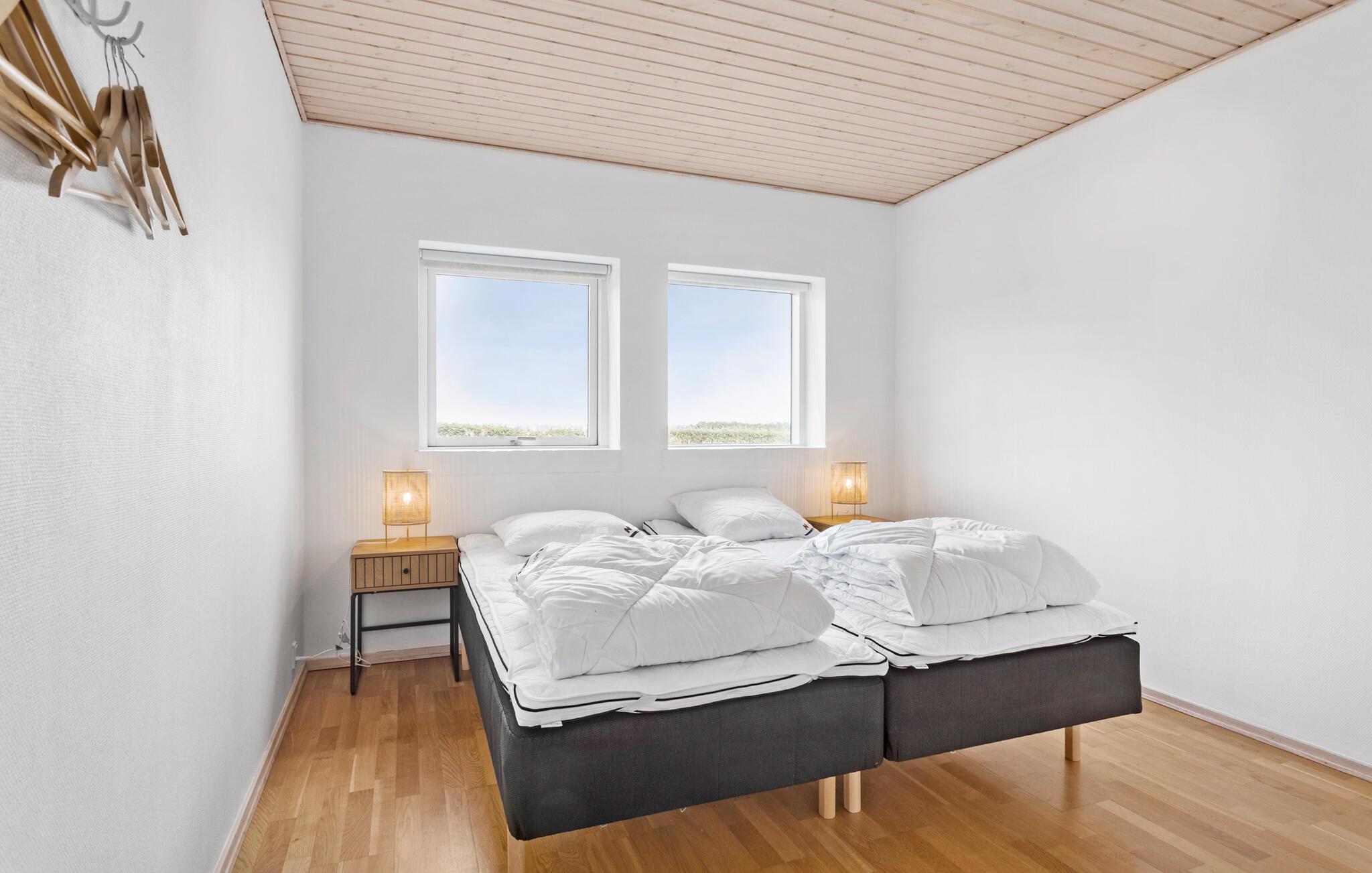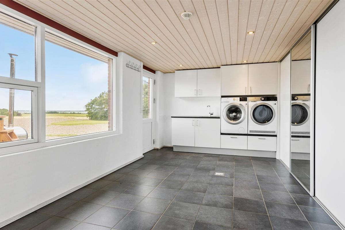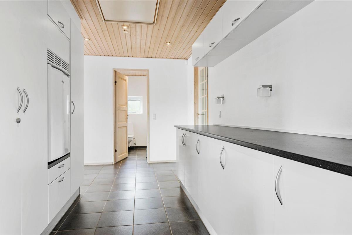 Een verblijf in je vakantiehuis in de buurt van het prachtige Limfjord belooft jou en je familie een gezellige en ontspannen sfeer. De ruime eethoek met de lange eettafel biedt de ideale ruimte voor gezamenlijke maaltijden, bordspellen en ontspannende uren na een bewogen dag. De open, praktisch ingerichte keuken nodigt u uit om samen heerlijke maaltijden te bereiden. Op koelere dagen kun je genieten van de gezellige warmte van de houtkachel.