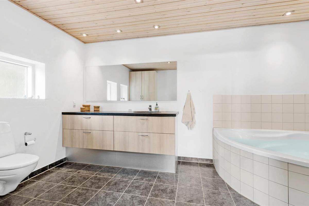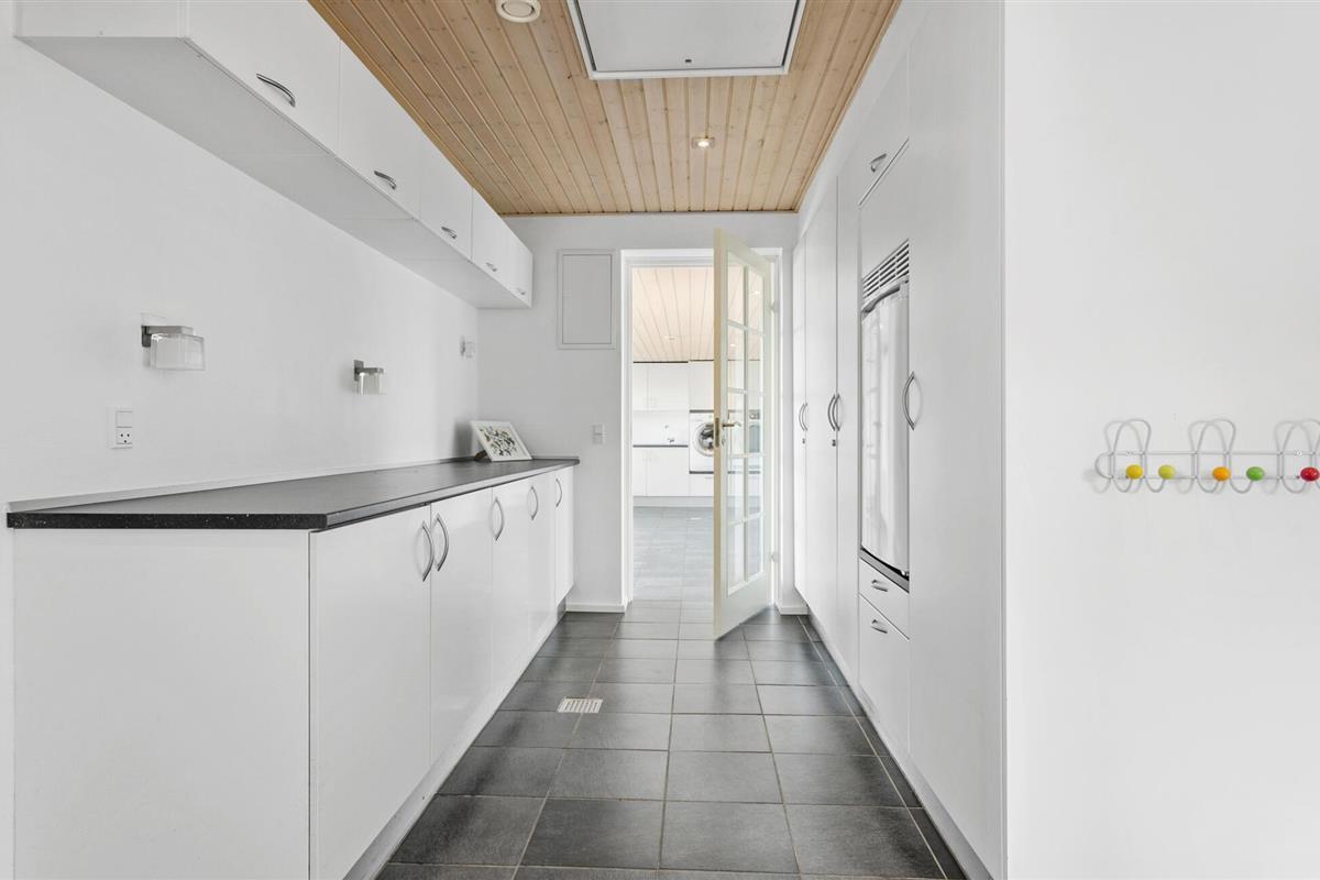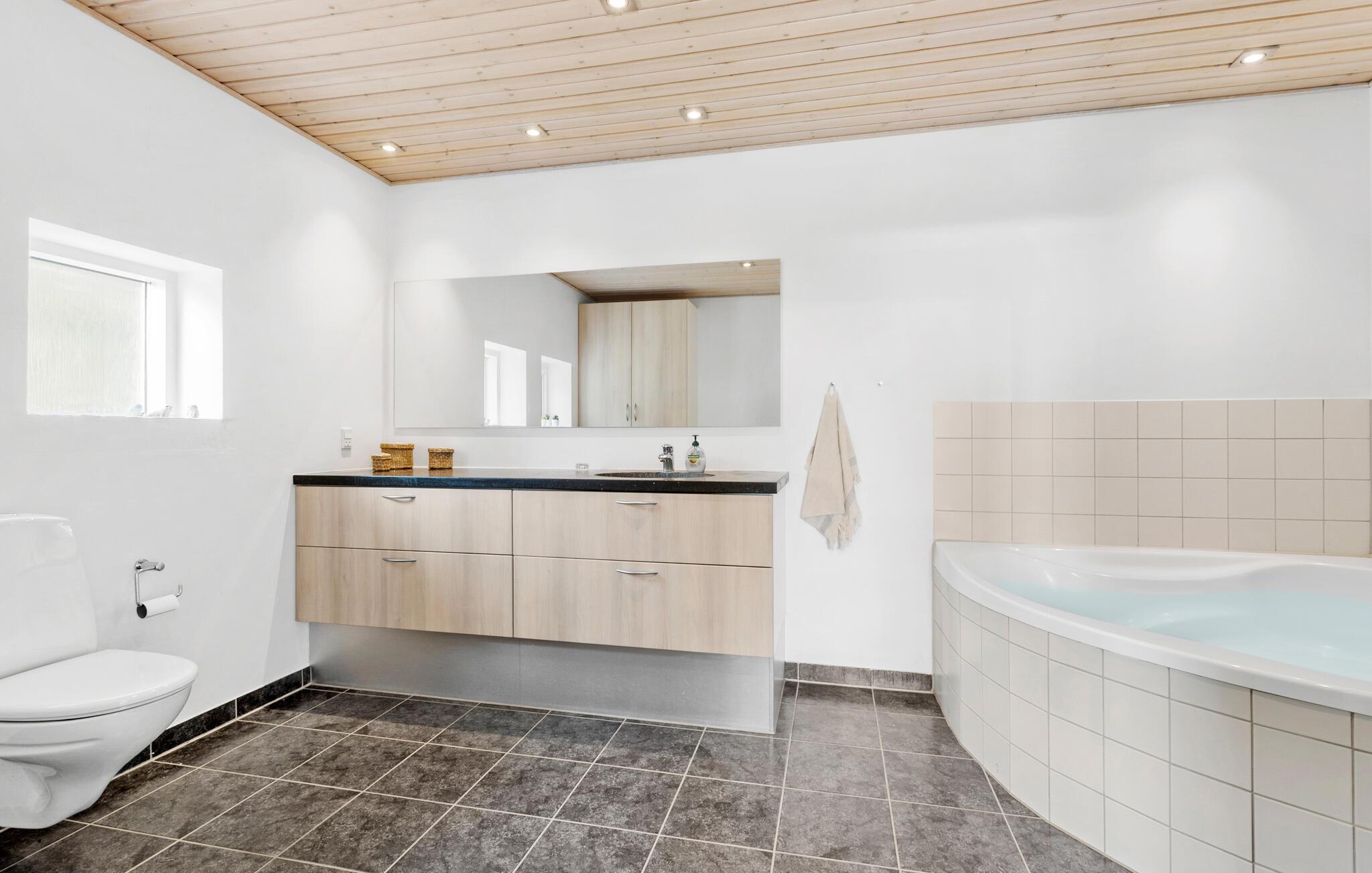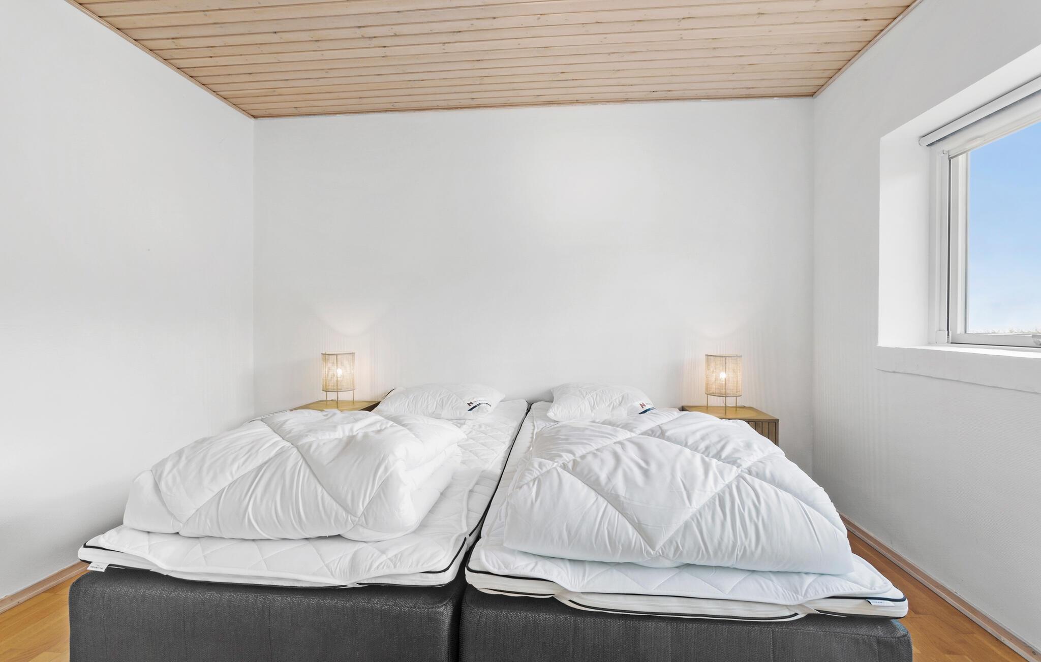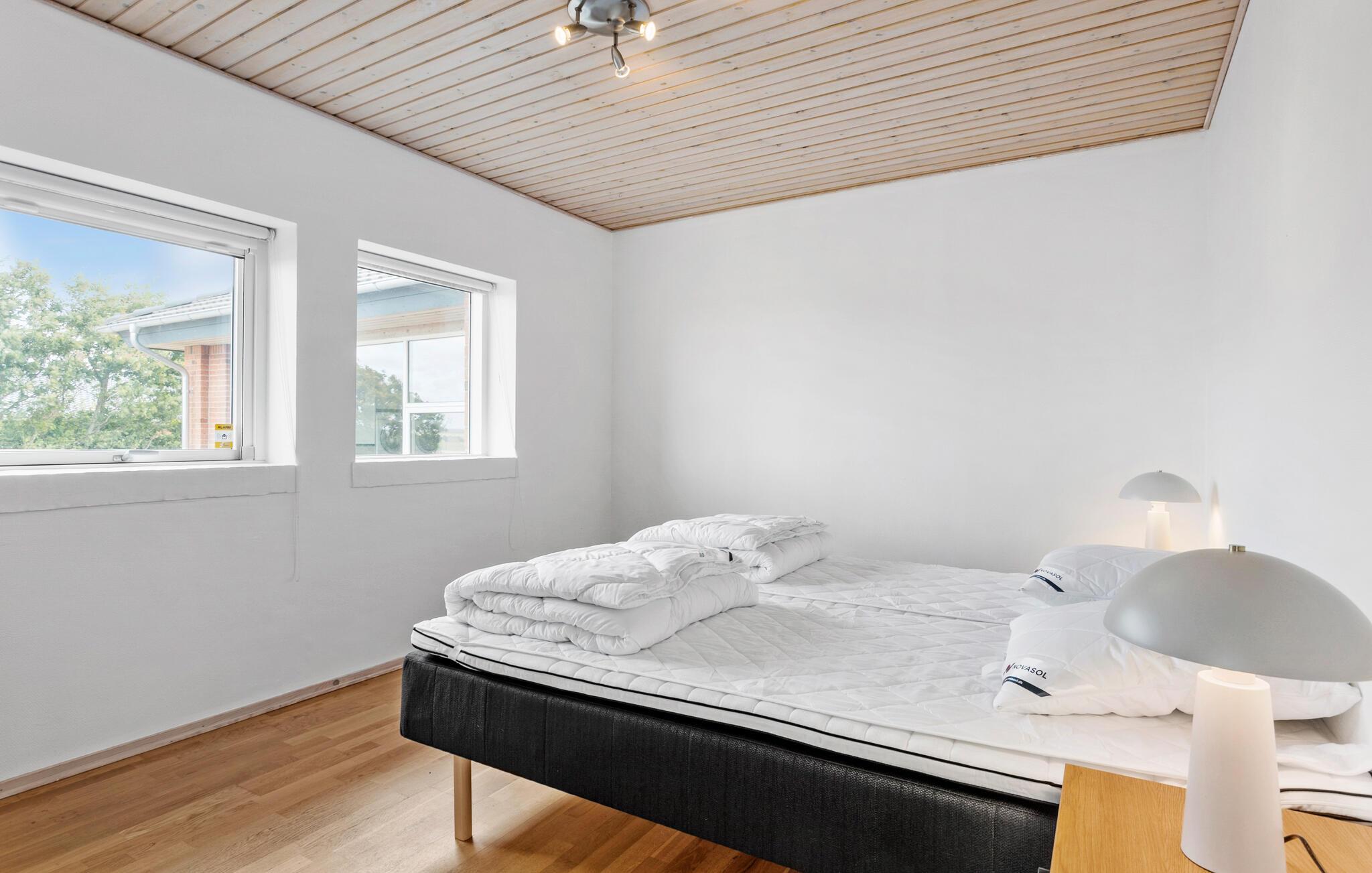 Een verblijf in je vakantiehuis in de buurt van het prachtige Limfjord belooft jou en je familie een gezellige en ontspannen sfeer. De ruime eethoek met de lange eettafel biedt de ideale ruimte voor gezamenlijke maaltijden, bordspellen en ontspannende uren na een bewogen dag. De open, praktisch ingerichte keuken nodigt u uit om samen heerlijke maaltijden te bereiden. Op koelere dagen kun je genieten van de gezellige warmte van de houtkachel.