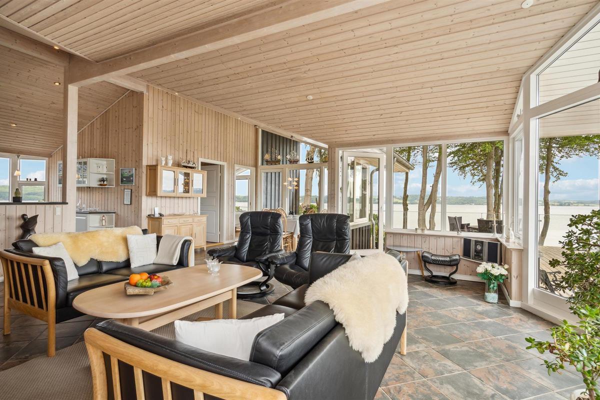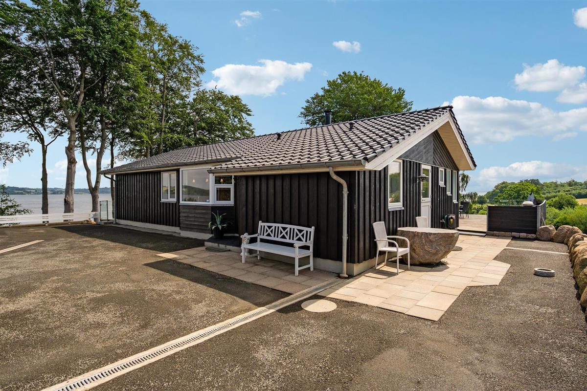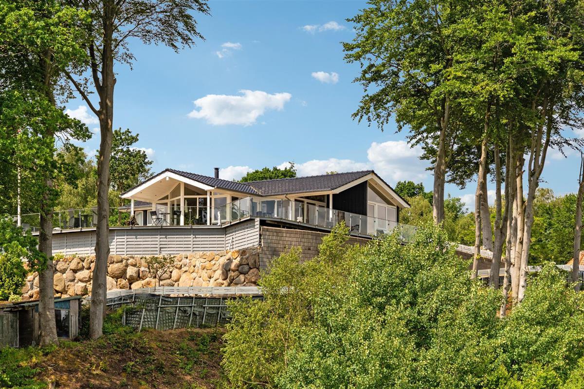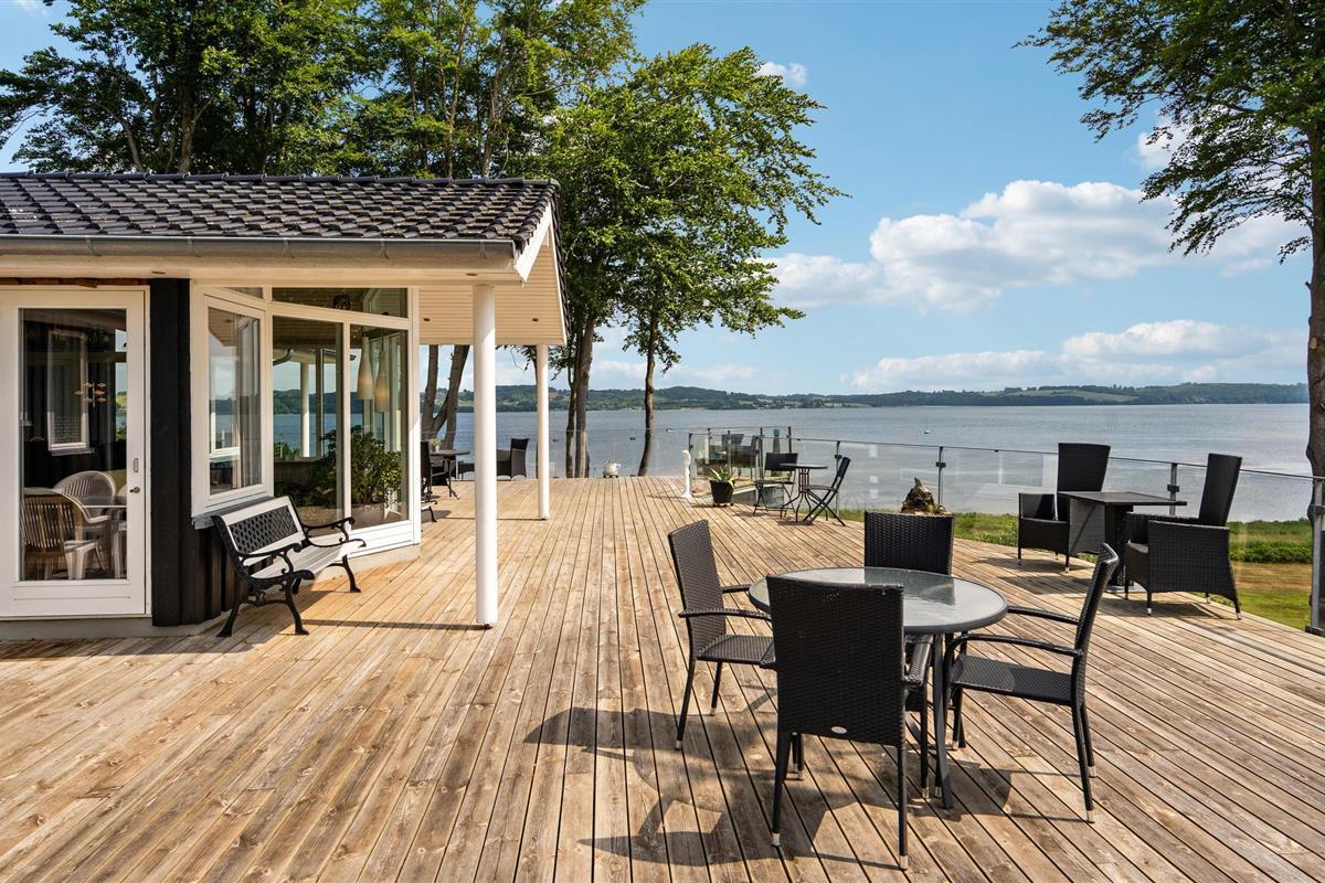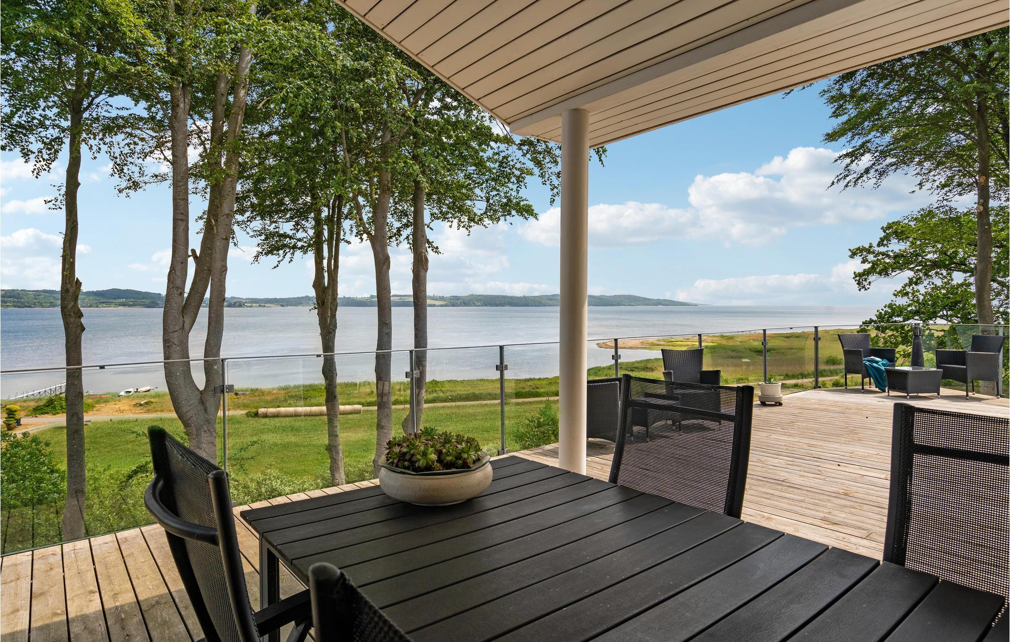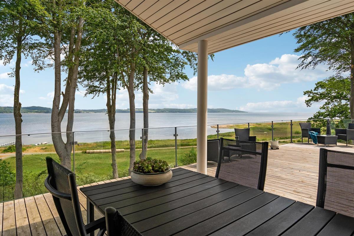 Op een fantastische locatie bij Vejle Fjord, verwelkomt dit lichte vakantiehuis met een prachtig uitzichtterras u.