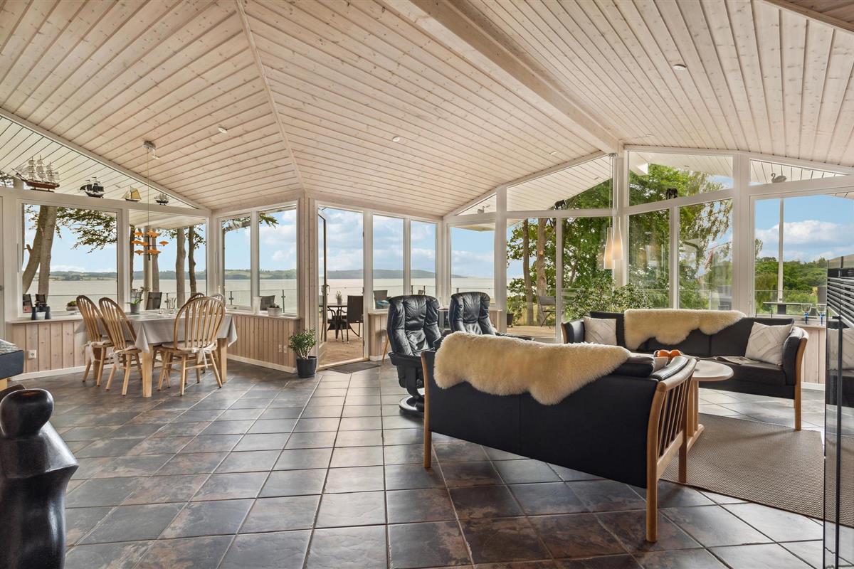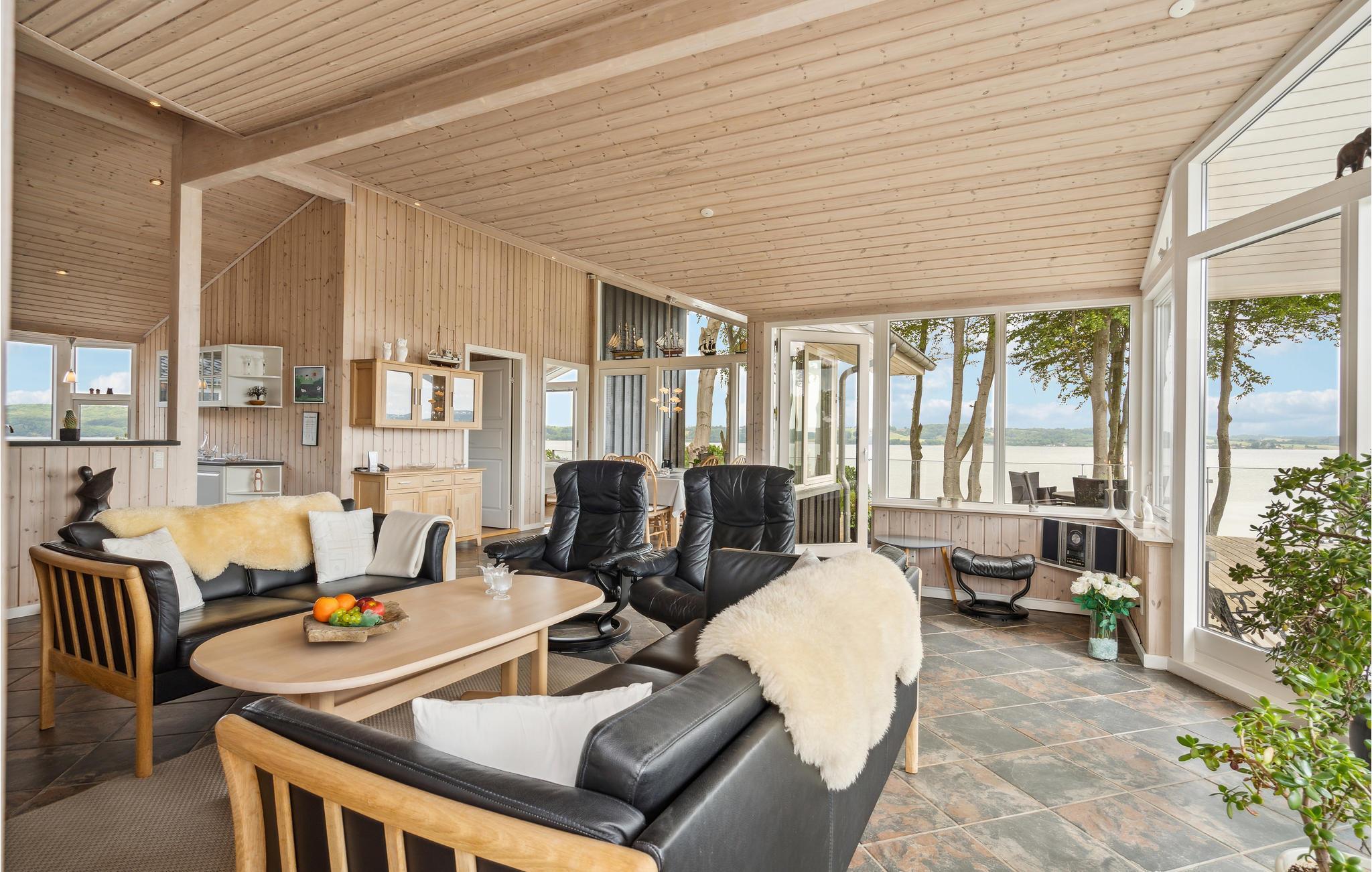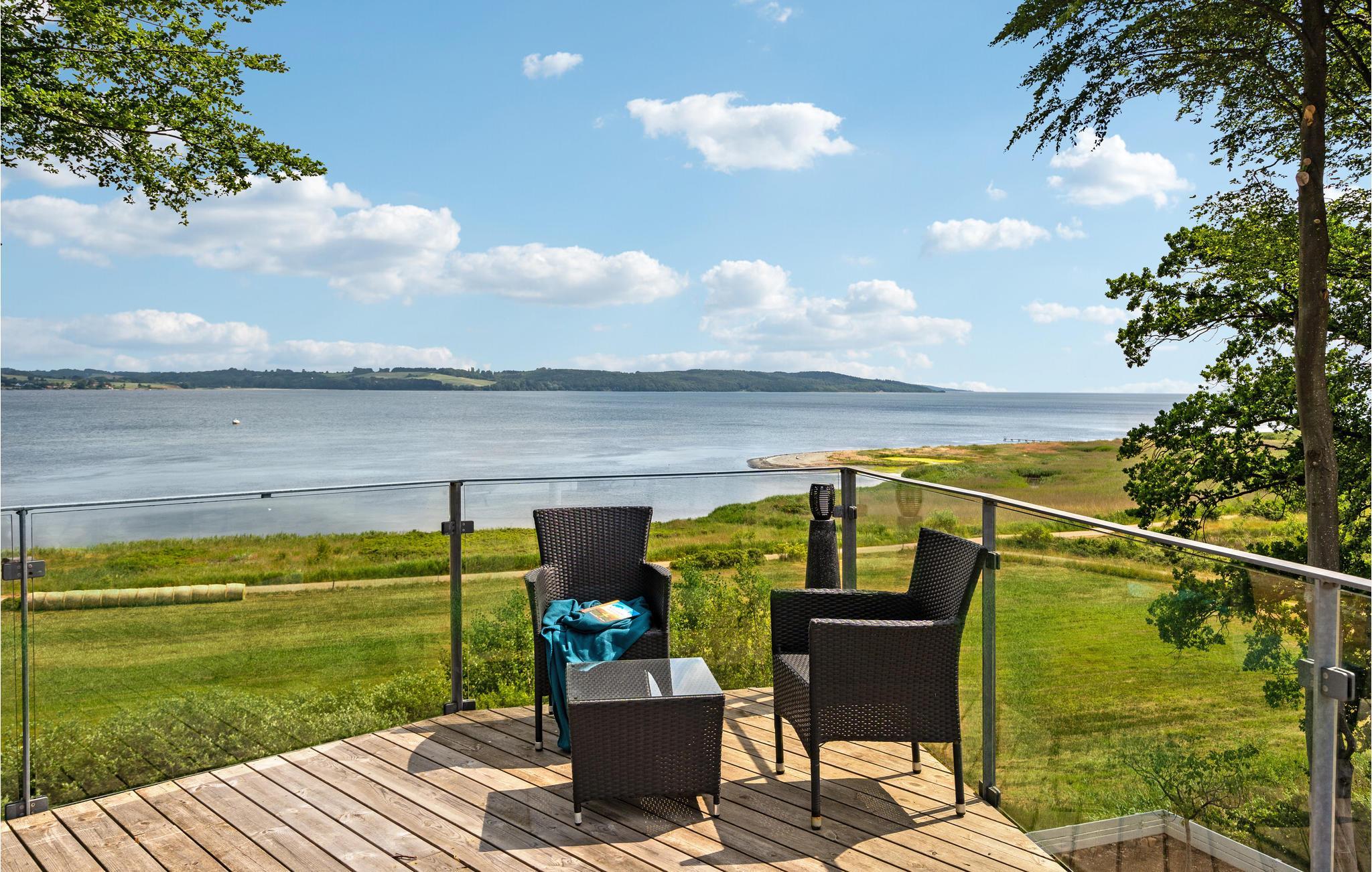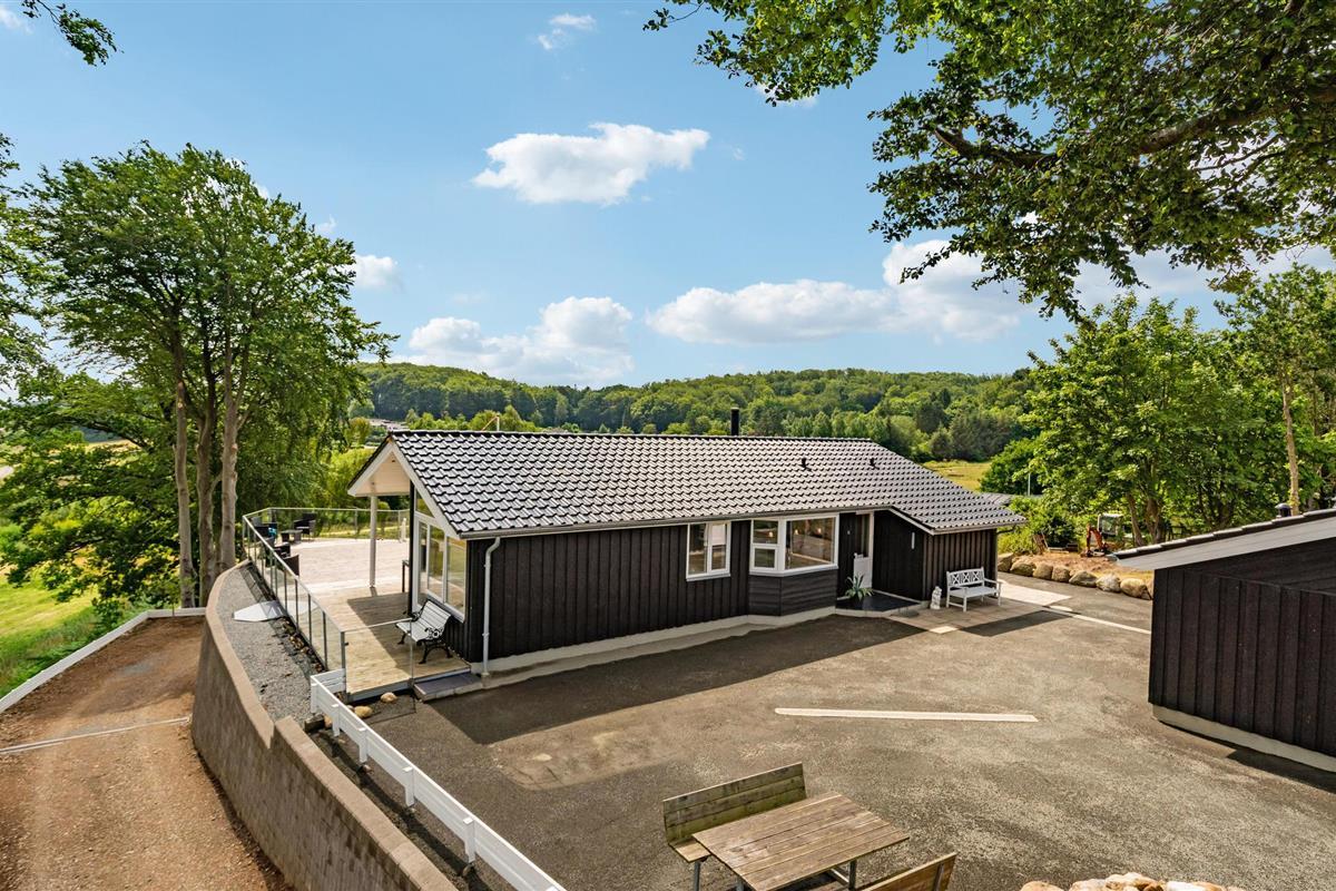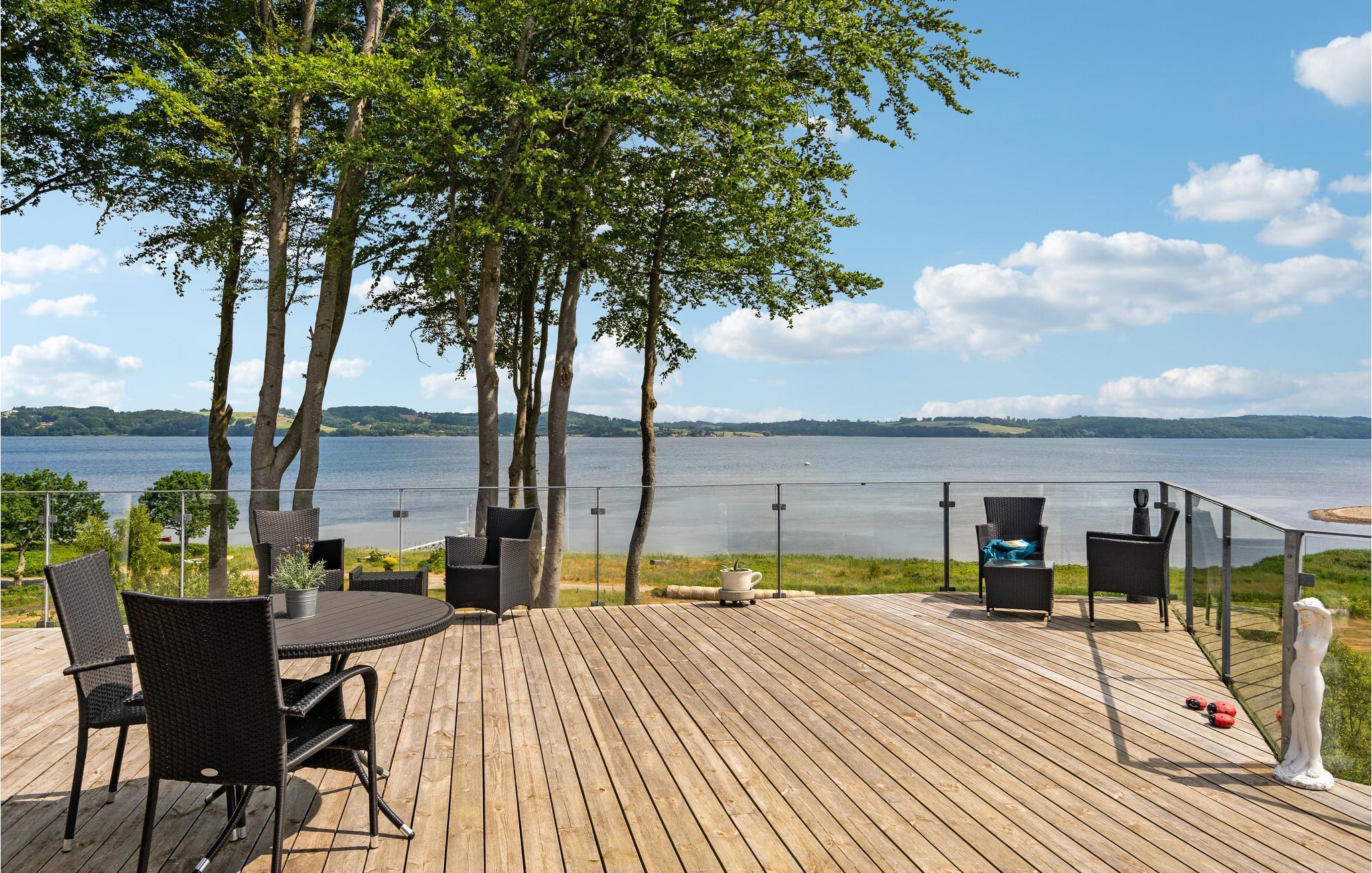 Op een fantastische locatie bij Vejle Fjord, verwelkomt dit lichte vakantiehuis met een prachtig uitzichtterras u.