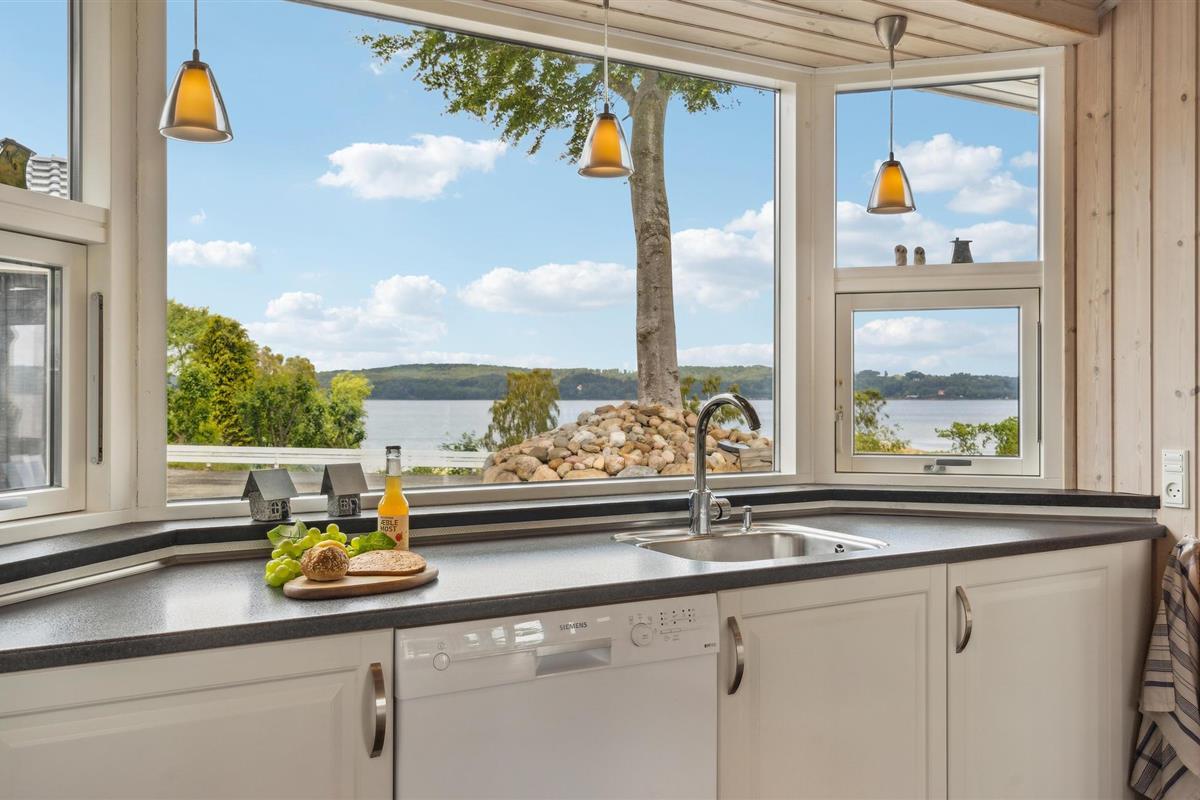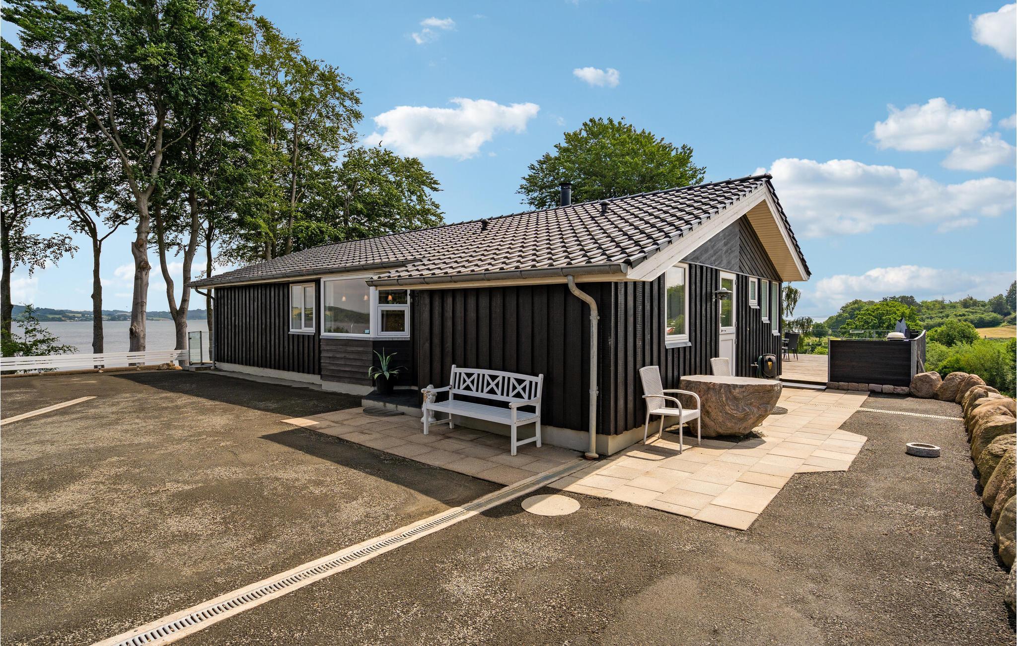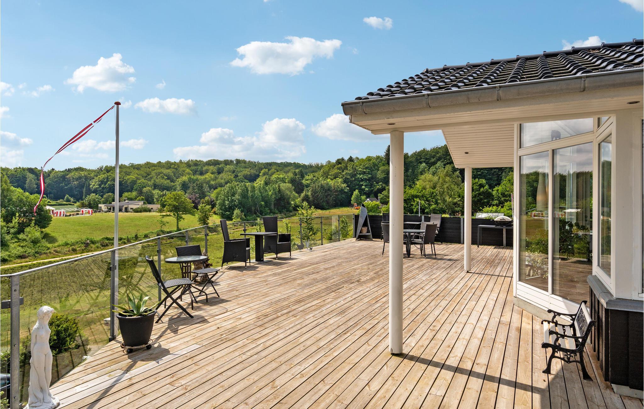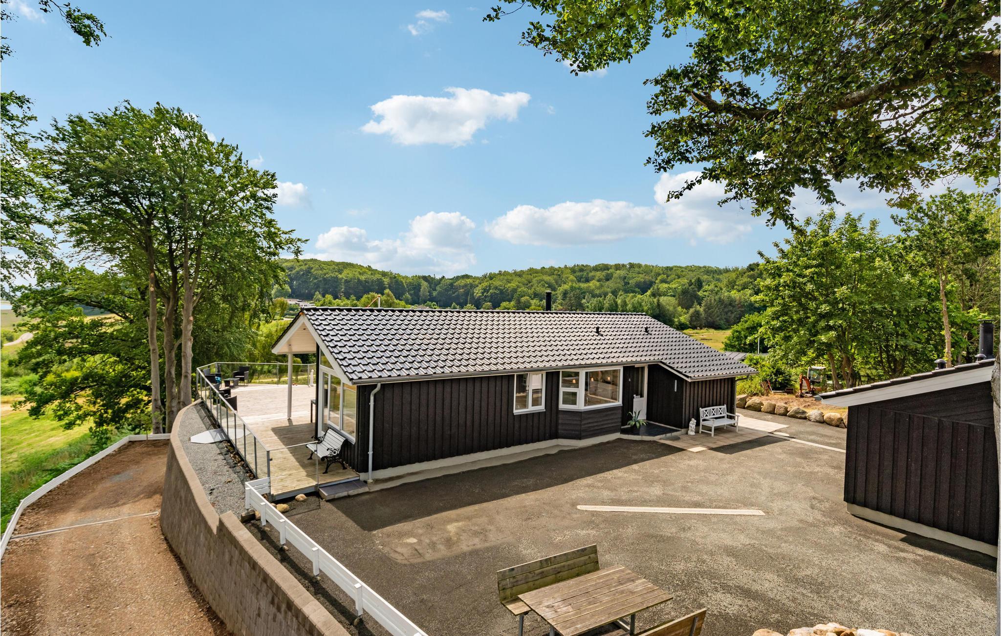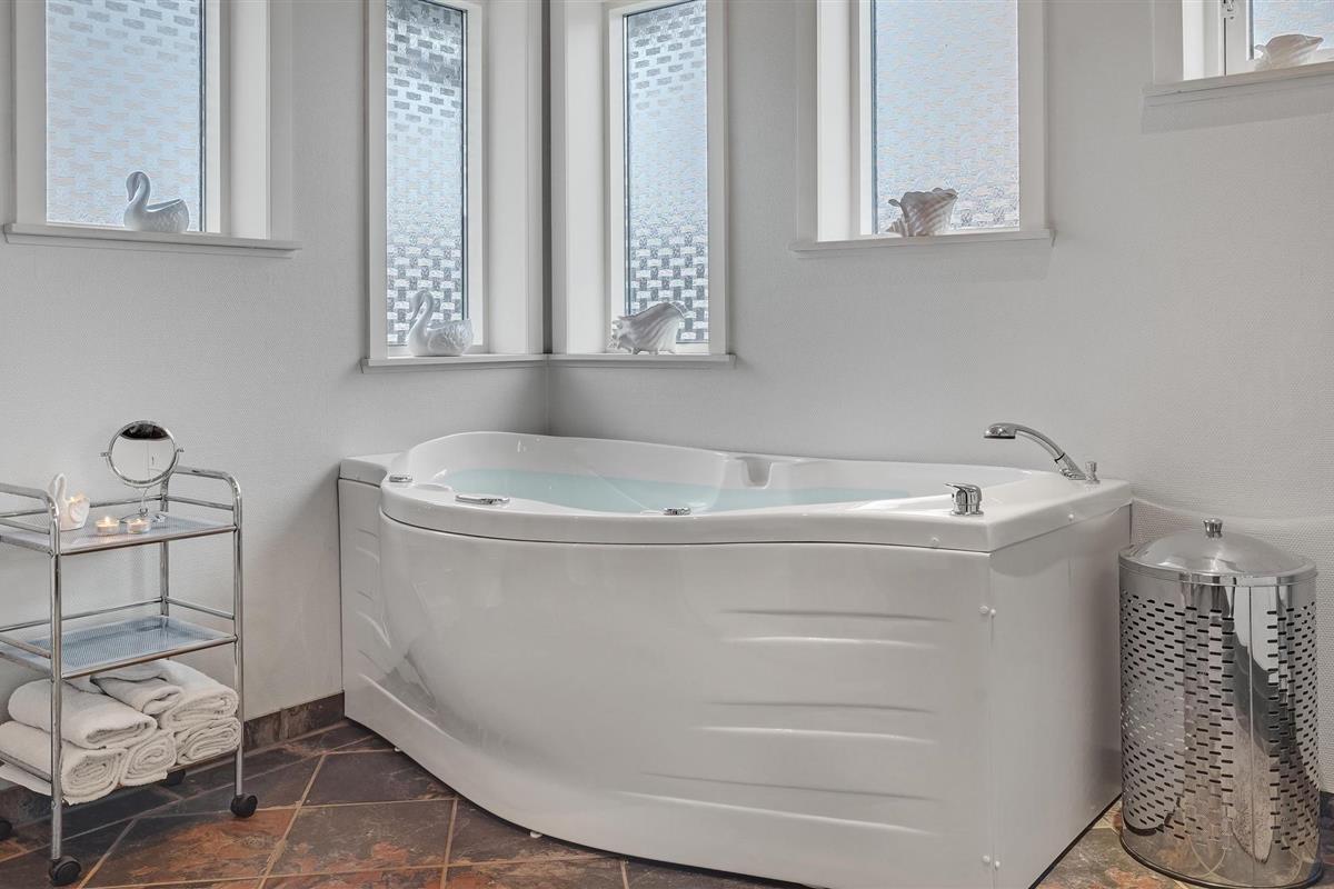 Breng een onvergetelijke vakantie door in dit prachtige vakantiehuis. Het huis wordt gekenmerkt door zijn grote ramen, waardoor veel natuurlijk licht binnenkomt en u kunt genieten van een fantastisch uitzicht op het landschap en de fjord. Geniet van de tijd samen in de grote woonkamer, waar u kunt koken, eten, spelen en ontspannen. Een moderne houtkachel kan uw samenzijn verder verwarmen op kille dagen. Voor extra ontspanning kunt u gebruik maken van de whirlpool voor twee personen in de badkamer en uw dagelijkse zorgen achter u laten. Het huis ligt op een heuvel en daarom heeft u vanaf het zonneterras een adembenemend panoramisch uitzicht over het Vejle Fjord. Geniet hier van ontspannende uren zonnebaden of geniet 's avonds van een heerlijke maaltijd in de buitenlucht.