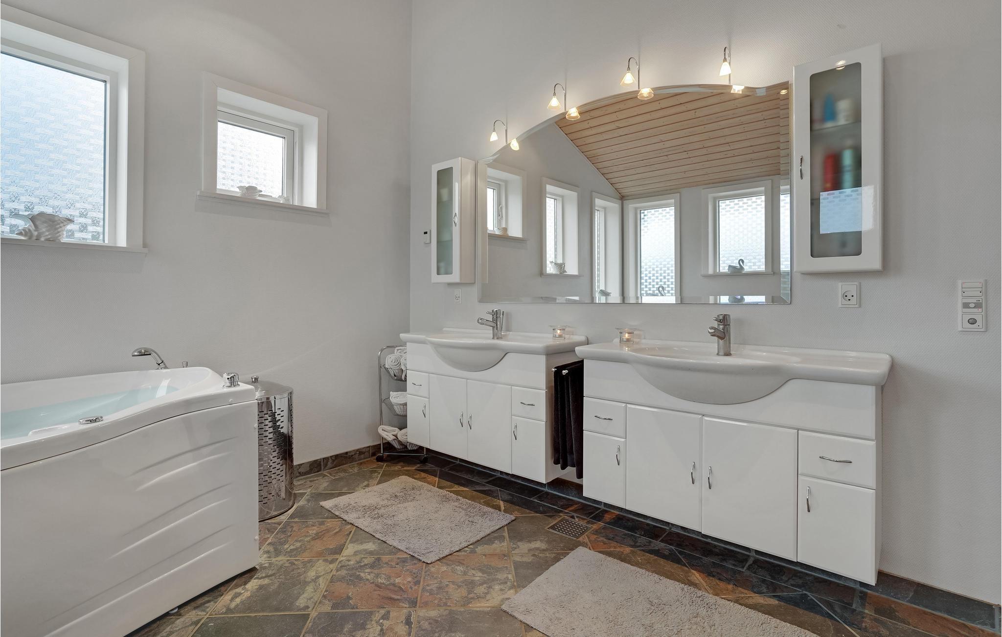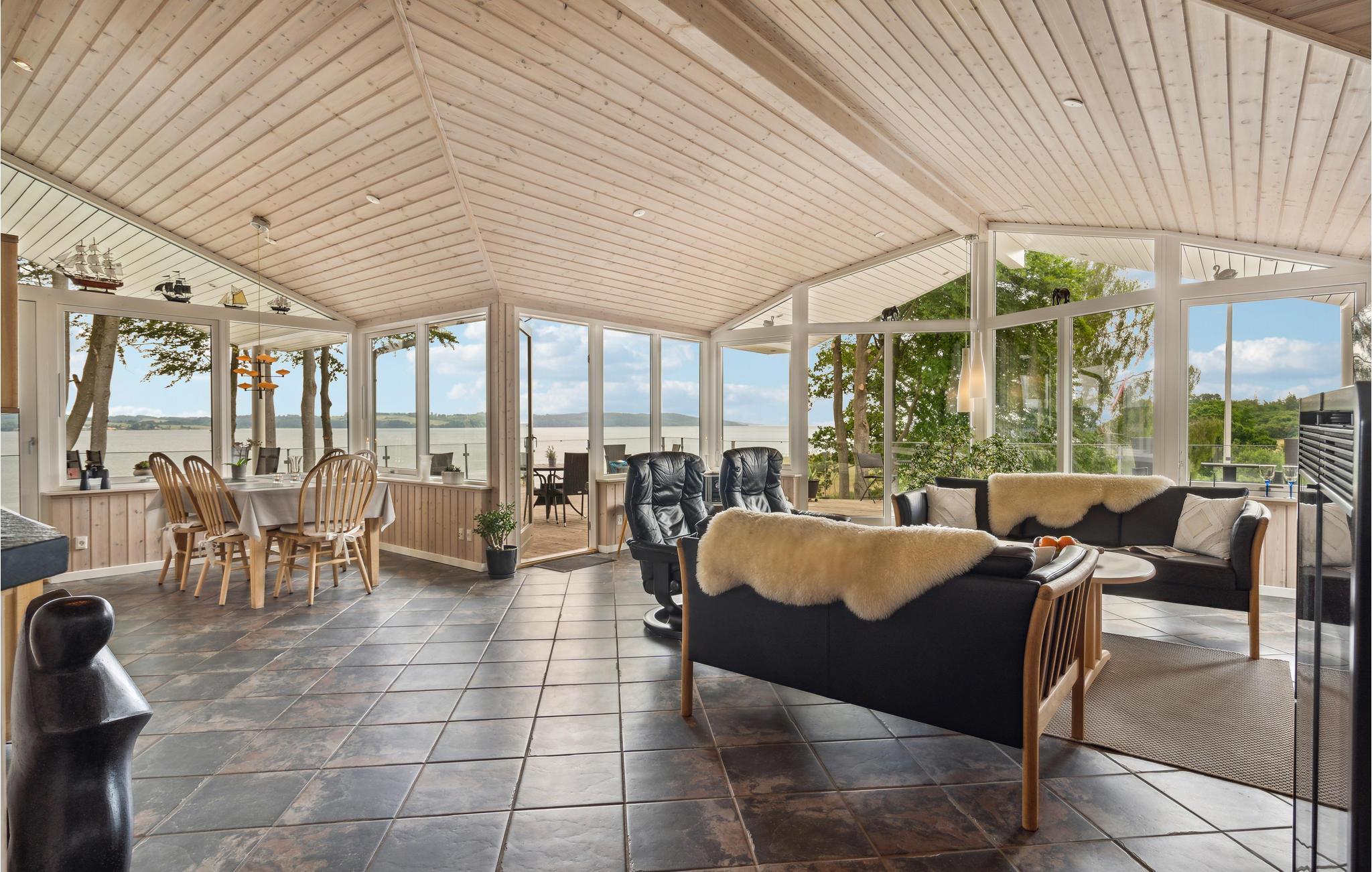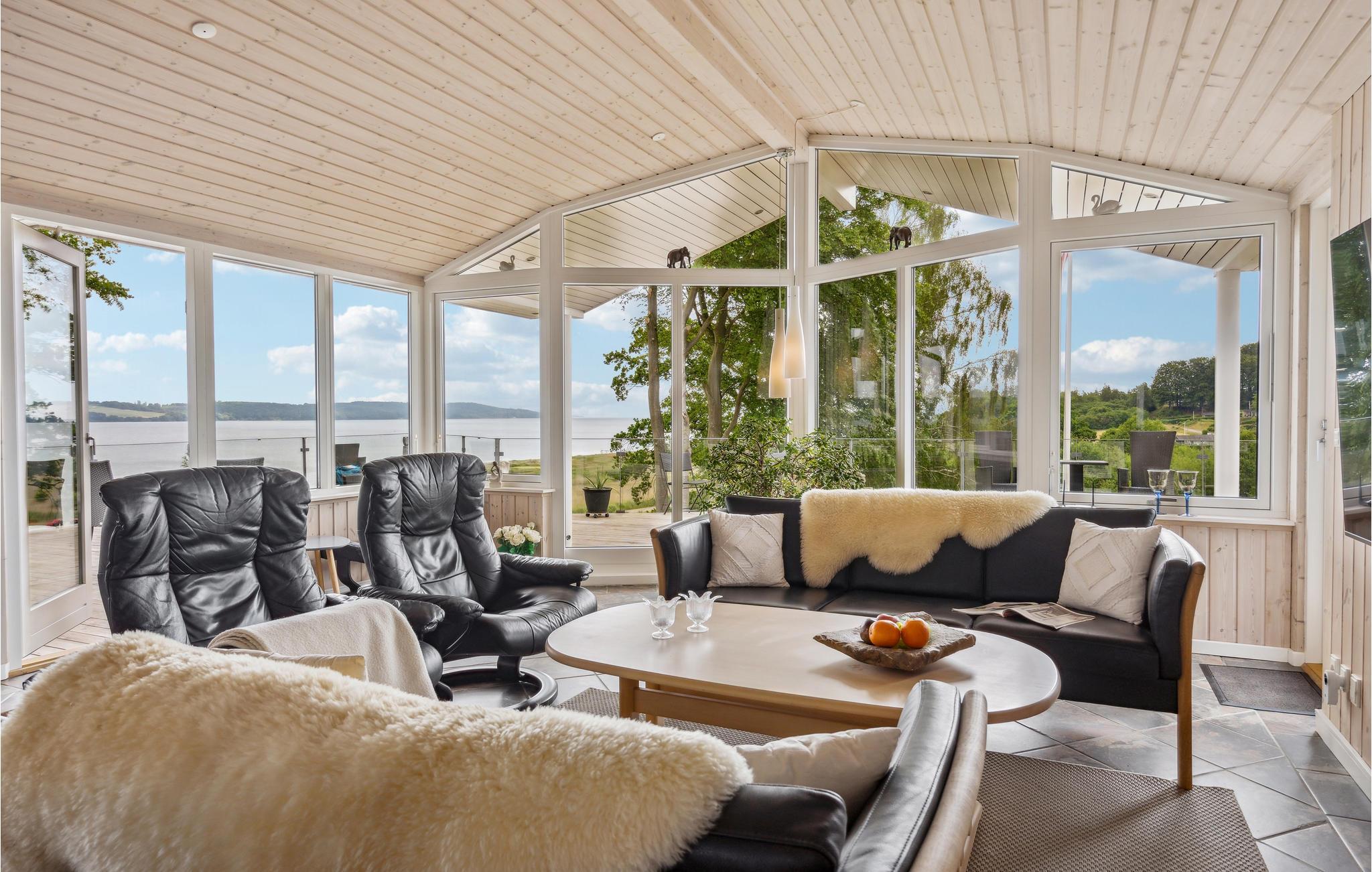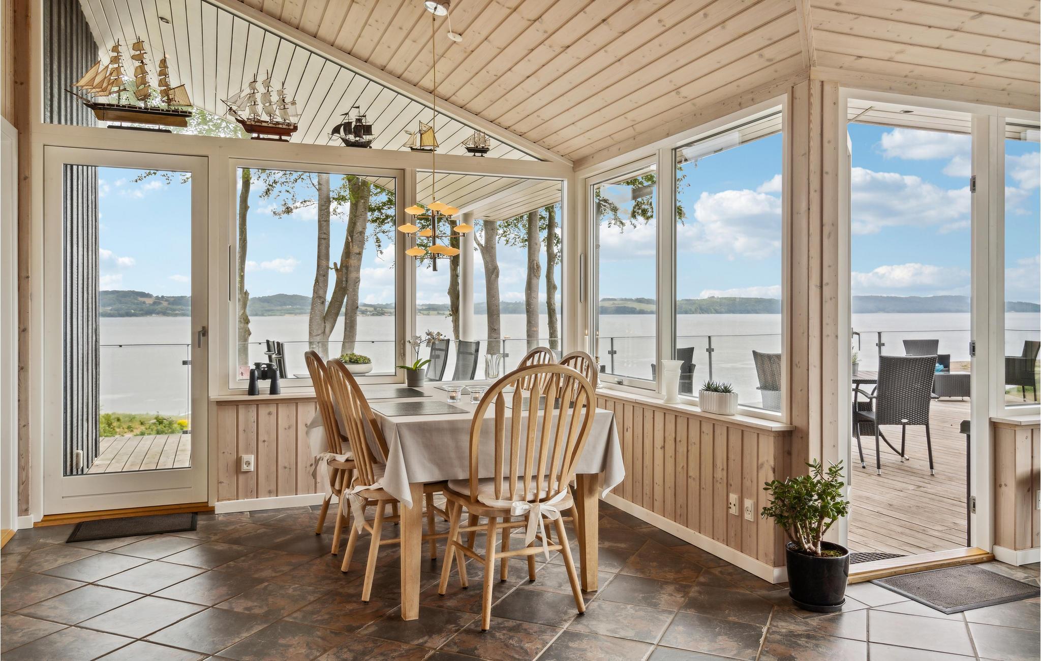 Breng een onvergetelijke vakantie door in dit prachtige vakantiehuis. Het huis wordt gekenmerkt door zijn grote ramen, waardoor veel natuurlijk licht binnenkomt en u kunt genieten van een fantastisch uitzicht op het landschap en de fjord. Geniet van de tijd samen in de grote woonkamer, waar u kunt koken, eten, spelen en ontspannen. Een moderne houtkachel kan uw samenzijn verder verwarmen op kille dagen. Voor extra ontspanning kunt u gebruik maken van de whirlpool voor twee personen in de badkamer en uw dagelijkse zorgen achter u laten. Het huis ligt op een heuvel en daarom heeft u vanaf het zonneterras een adembenemend panoramisch uitzicht over het Vejle Fjord. Geniet hier van ontspannende uren zonnebaden of geniet 's avonds van een heerlijke maaltijd in de buitenlucht.