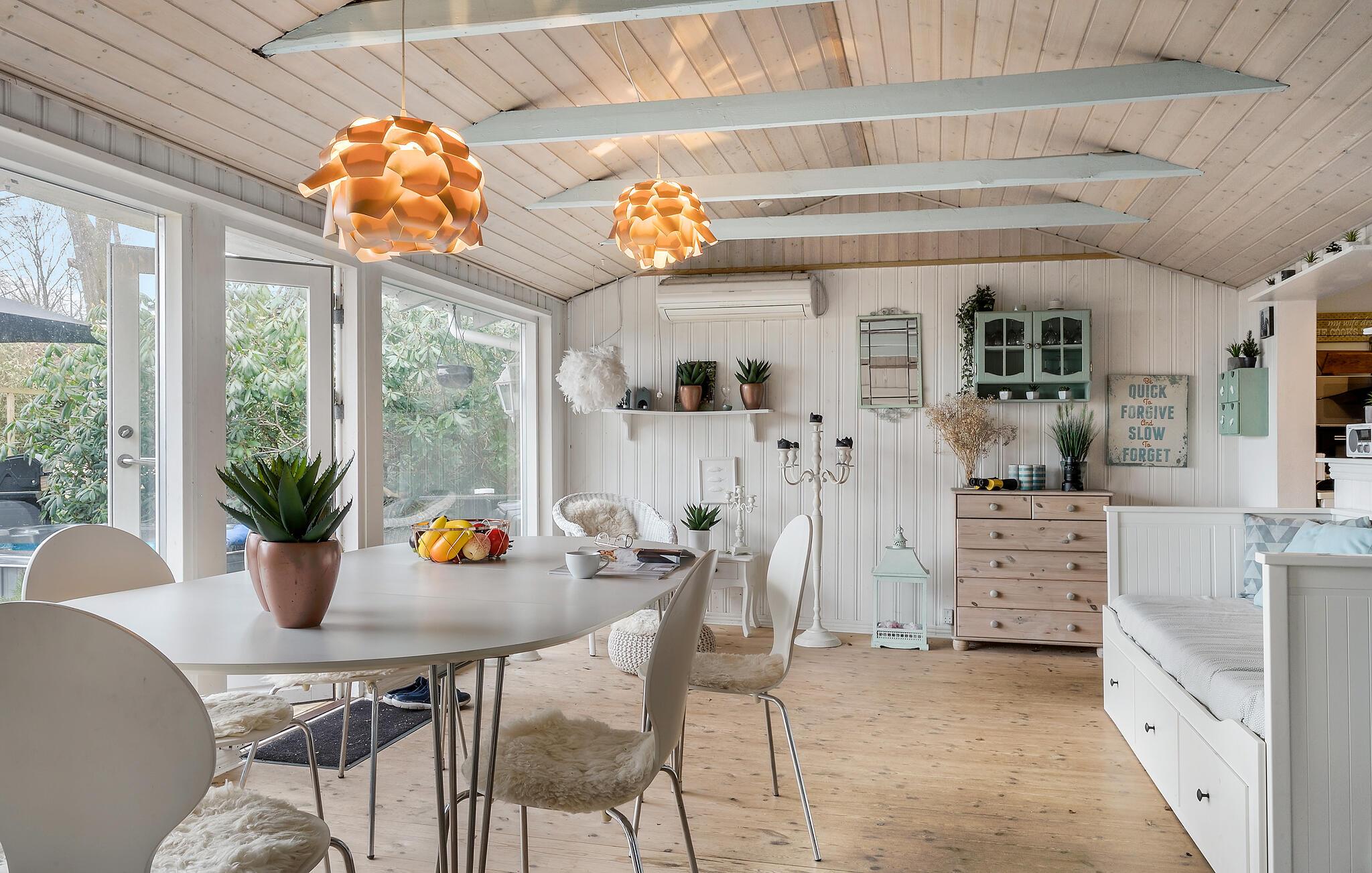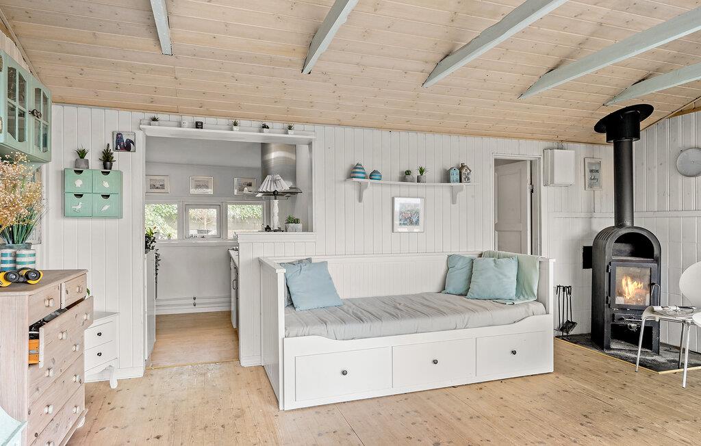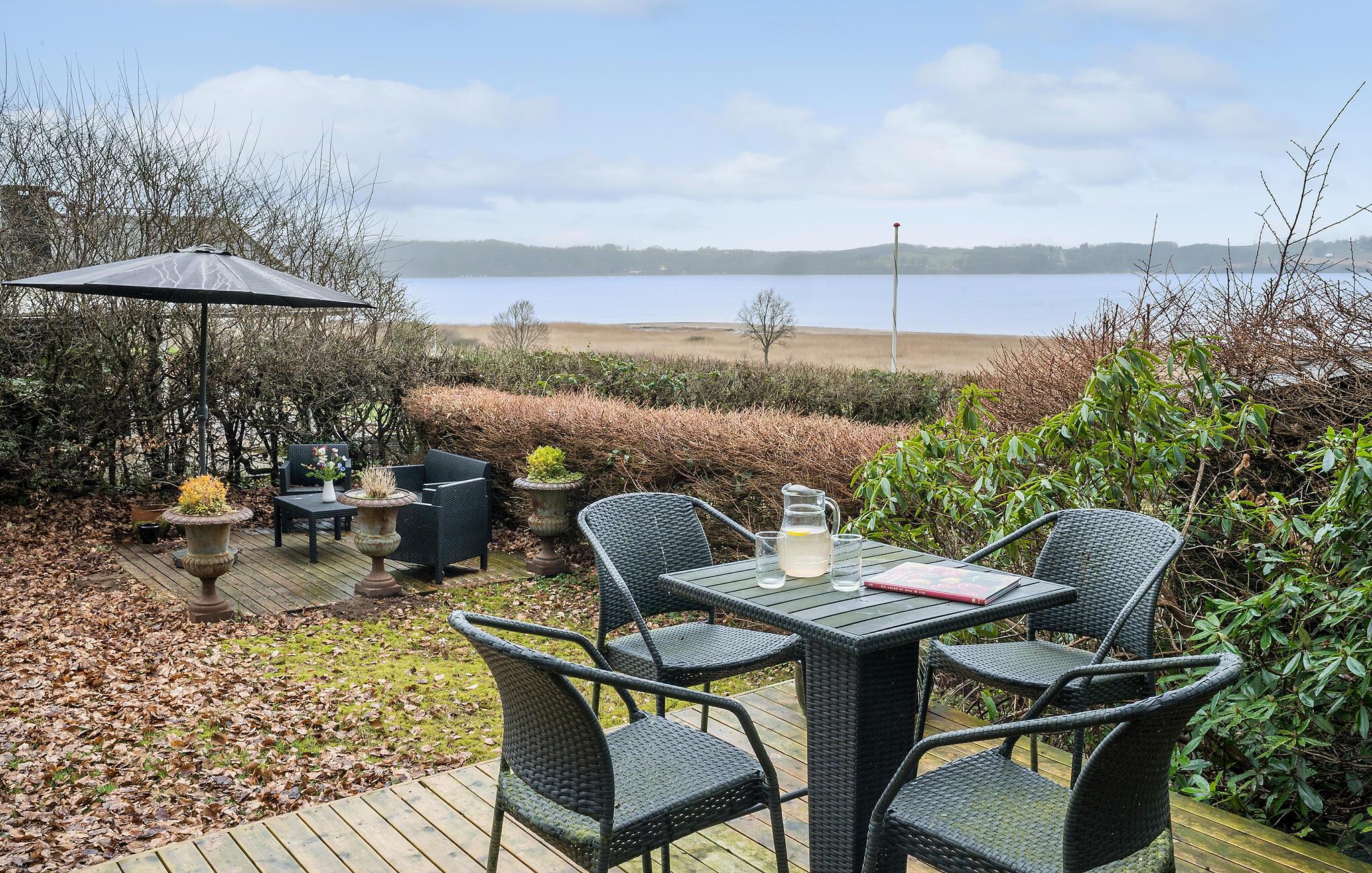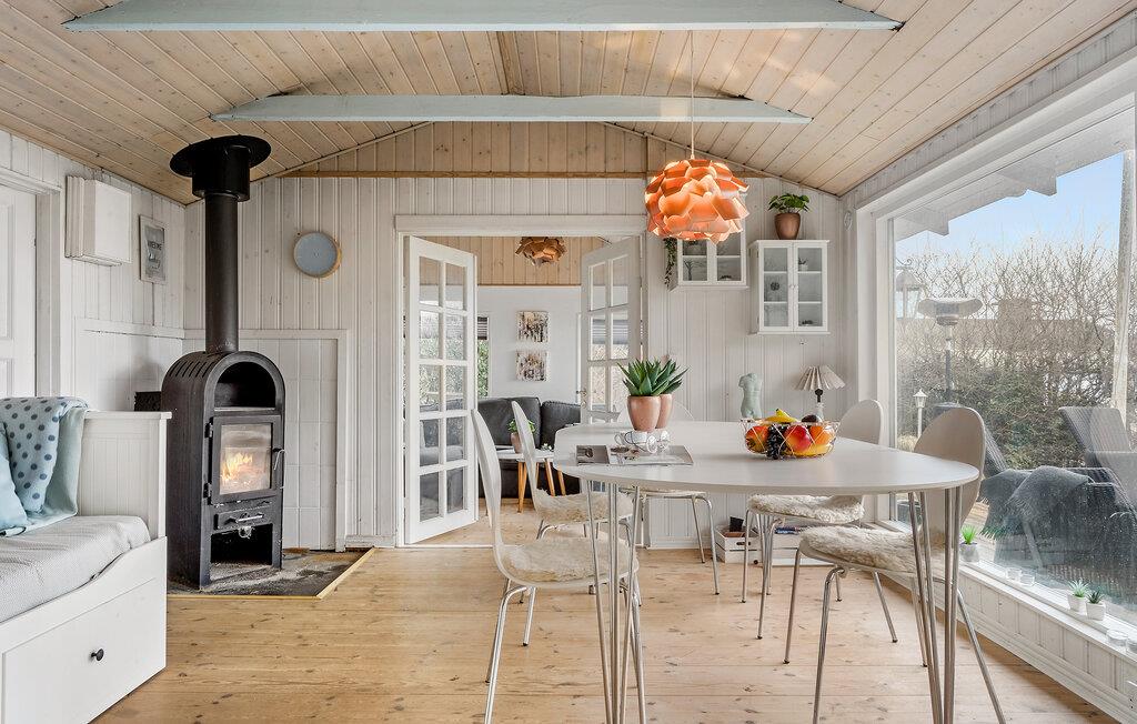 Trakteer jezelf als klein gezin of samen met een paar vrienden op een ontspannen onderbreking van het dagelijks leven en geniet van de rust in dit charmante en smaakvolle vakantiehuis. Lichtgekleurd hout en grote ramen zijn de dominante elementen binnen, dus je kunt je verheugen op lichtovergoten en gezellige kamers met uitzicht op het Vejle Fjord. De mooie inrichting en decoratie creëren een echte feel-good sfeer, die wordt aangevuld door de houtkachel.