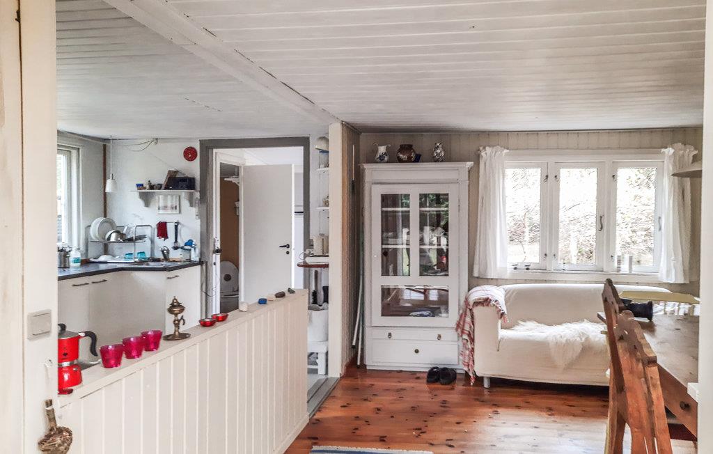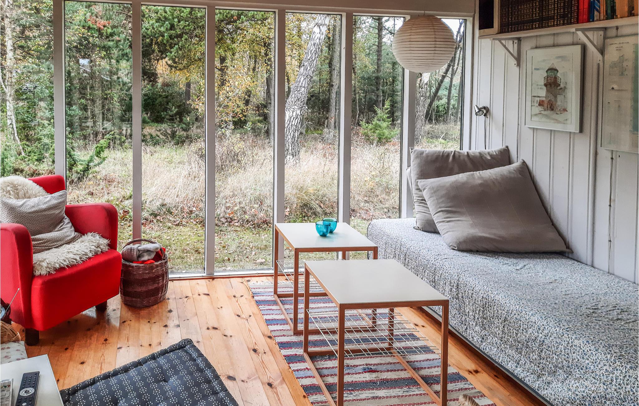 Beleef een geweldige tijd met je geliefden in dit eenvoudige en gezellige huis, dat op slechts een korte wandeling van het strand ligt. Na je excursies op het eiland nodigt de zithoek je uit om te ontspannen. Laat je blik over de omgeving dwalen door de ramen van vloer tot plafond en creëer een bijzonder gezellige sfeer met een vuurtje in de houtkachel. Neem je avondmaal buiten op het terras en geniet van de lange zomeravonden.