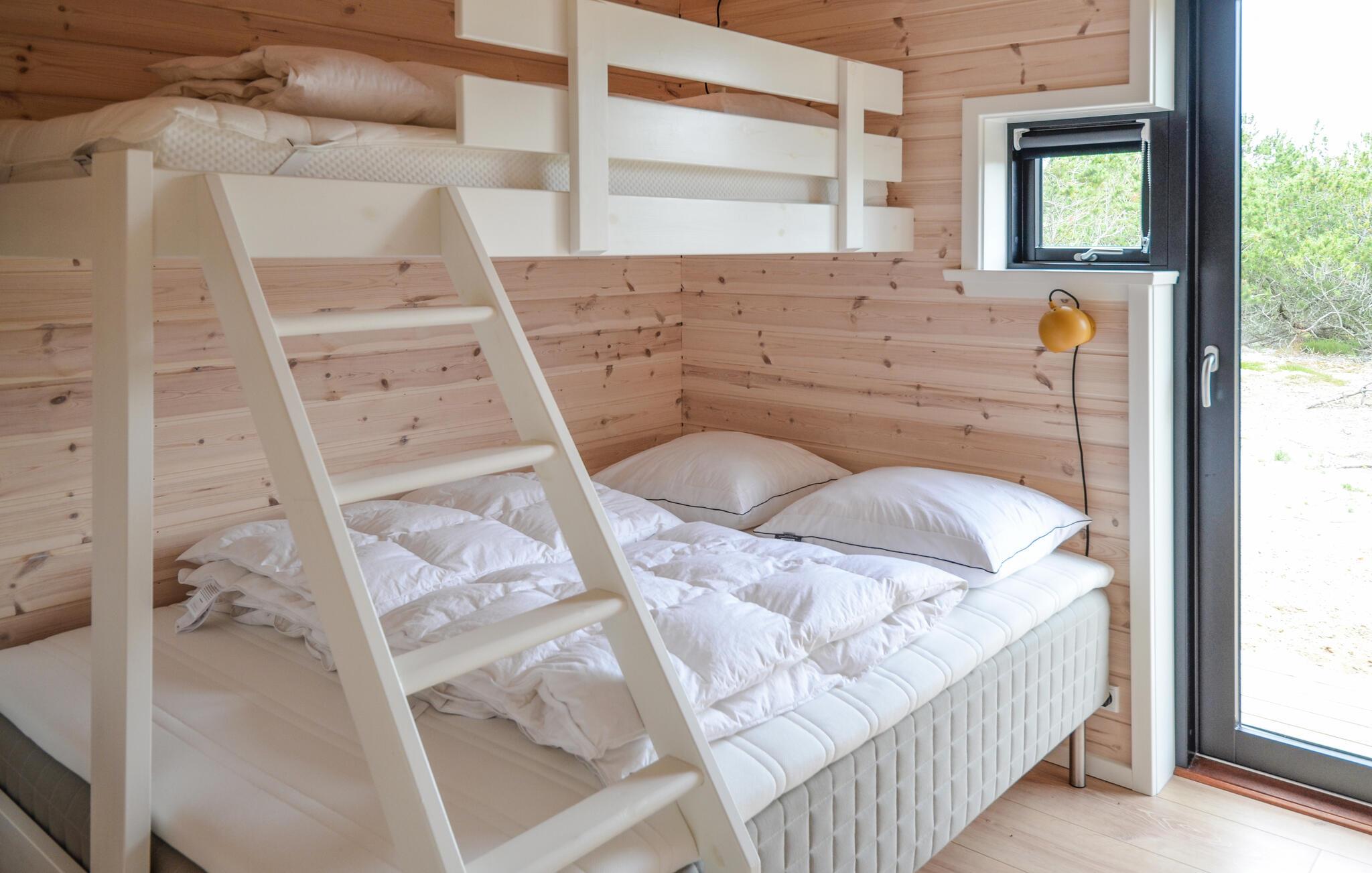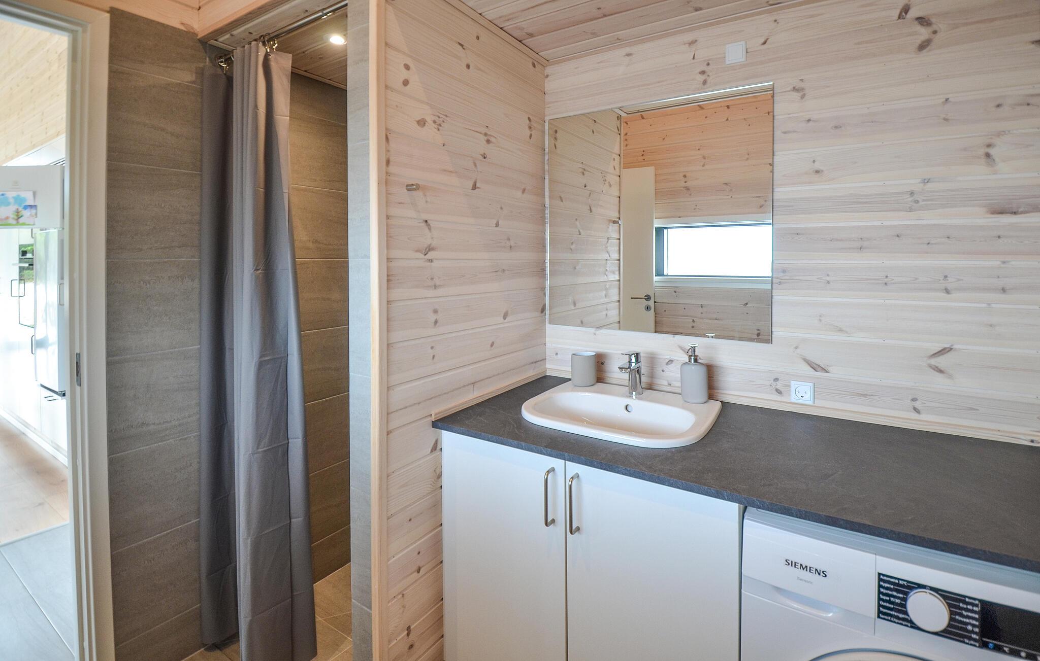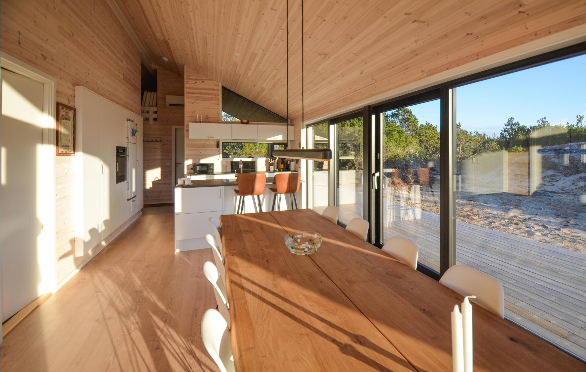 Breng een onvergetelijke vakantie door in dit mooie en comfortabele vakantiehuis niet ver van het zandstrand. Geniet van de zon die door de grote ramen naar binnen schijnt in de open woonkamer met hoge plafonds. De gezellige sfeer wordt aangevuld door het meubilair van hoge kwaliteit en de houtkachel. De rustgevende, uitnodigende warmte nodigt uit om samen te koken, spelletjes te spelen en filmavonden te houden en laat je ontspannen. Je kunt ook genieten van de zomerse dagen op het terras, in de zon zitten en je kinderen zien spelen in de tuin.