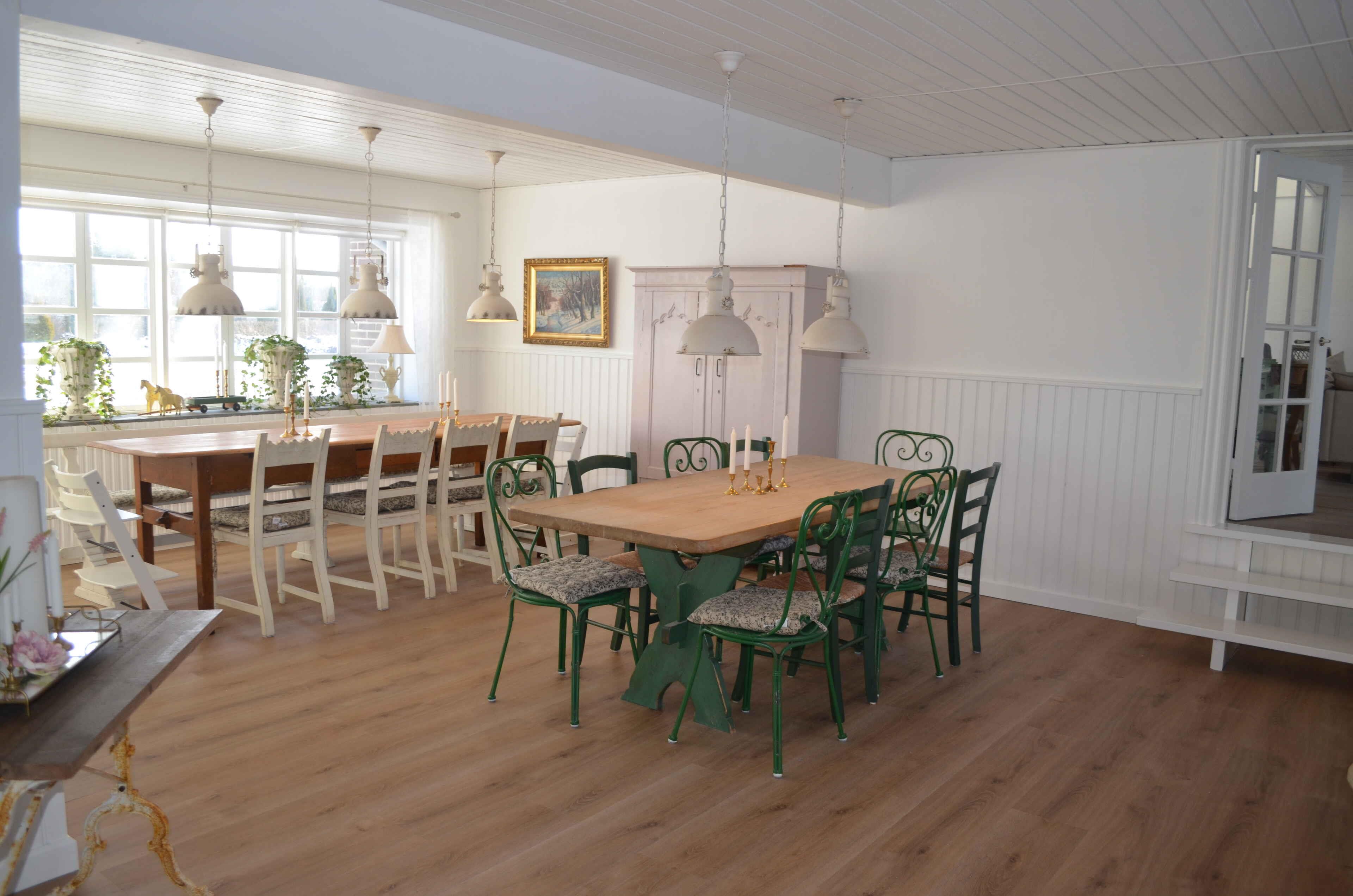 Deze grote vakantiewoning van 382 m² biedt plaats aan maximaal 17 personen, verdeeld over acht slaapkamers. Ideaal voor grote families, vriendengroepen of meerdere generaties die samen vakantie willen vieren met veel ruimte en doordachte faciliteiten. De woning is ingericht in een consequente badhotelstijl, waarbij meubels, kleuren en servies zorgvuldig op elkaar zijn afgestemd. De rustige en uitnodigende uitstraling geeft het huis een bijzondere sfeer die het onderscheidt van een klassieke vakantiewoning. Het huis bestaat uit twee verdiepingen met één slaapkamer op de begane grond en de overige op de eerste verdieping. Dit zorgt voor een goede verdeling tussen gemeenschappelijke ruimtes en privézones. Een warmtepomp zorgt het hele jaar door voor een aangenaam binnenklimaat. De keuken is ruim en functioneel, met een praktische bijkeuken ernaast. Dit maakt koken en opruimen eenvoudig, ook wanneer het huis vol is. Gezamenlijke maaltijden vormen een natuurlijk middelpunt. Buiten bevindt zich een groot terras van 125 m² met ruimte voor ontspanning en maaltijden. Hier vindt u zowel een buitenspa als een shelter voor buitenleven van ’s ochtends tot ’s avonds. De bessen- en kruidentuin mag worden gebruikt. De omgeving wordt gekenmerkt door rust, open landschappen en natuur. Ideaal voor wandelingen, fietstochten en ontspanning. Op korte rijafstand liggen de meren van Silkeborg met zwem-, kano- en kajakmogelijkheden en mooie bossen. Daarnaast zijn er gezellige plaatsjes en lokale eetgelegenheden. Hoewel de kust op 45 km ligt, biedt het gebied volop vakantiekwaliteiten. Deze vakantiewoning is perfect voor wie ruimte, sfeer en gezamenlijke vakantiebeleving zoekt. BEDDENGOED, HANDDOEKEN EN THEEDOEKEN ZIJN BIJ DE PRIJS INBEGREPEN.