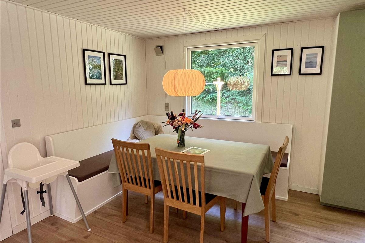 Dit prachtige zomerhuis ligt op een afgesloten en beschut perceel in een rustige en natuurrijke omgeving, vlak bij het idyllische Kvie Sø. Hier kunt u genieten van de rust, omgeven door hoge bomen en vogelgezang – de perfecte plek voor ontspanning en quality time met het gezin. Kvie Sø staat bekend als een kindvriendelijk zwemmeer met ondiep water en een zandbodem, ideaal om in te spelen en te zwemmen voor zowel kleine als grotere kinderen. Het zomerhuis is in 2025 volledig gerenoveerd en straalt nu licht en sfeer uit met een prachtige nieuwe keuken en een moderne badkamer. De inrichting is gezellig en functioneel, geschikt voor zowel stellen als gezinnen. Buiten wacht een groot, nieuw gebouwd houten terras, deels overdekt – ideaal voor barbecue-avonden, een kopje koffie in de zon of ontspanning in de schaduw op warme zomerdagen. Direct naast het perceel ligt de speeltuin van de buurt, waar kinderen zich heerlijk kunnen uitleven. Dankzij de korte afstand tot populaire attracties zoals Legoland en Lalandia is dit huis ook een uitstekende keuze voor een gezinsvakantie. Hier vindt u de perfecte combinatie van rustgevende natuur, modern comfort en leuke ervaringen voor het hele gezin. Let op: Niet te huur voor commercieel gebruik.