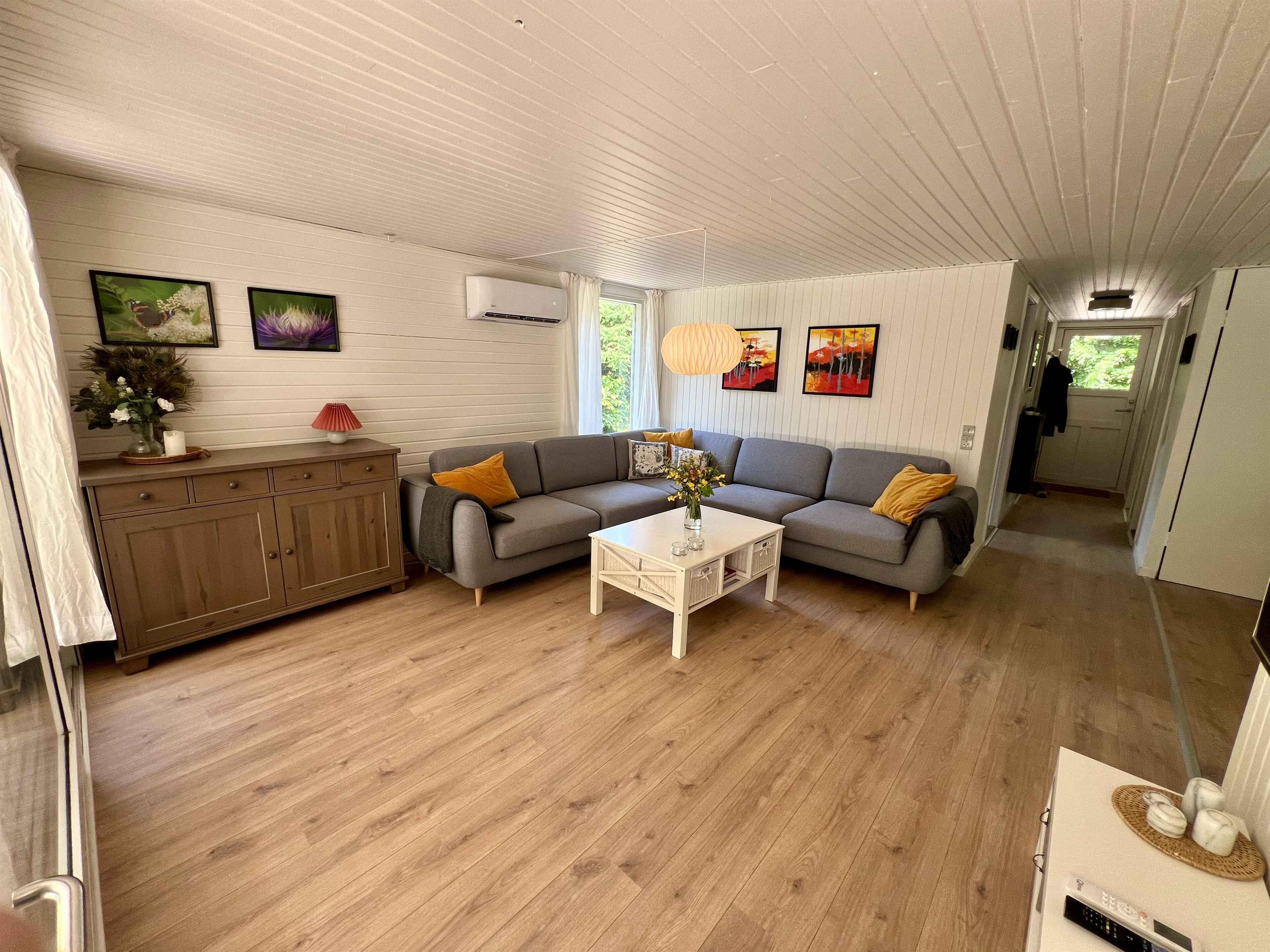 Gerenoveerd zomerhuis (2025) bij Kvie Sø. Gezellig, licht, groot terras, rustige natuur, vlak bij speeltuin, Legoland en Lalandia. Perfect voor gezinnen en ontspanning.
