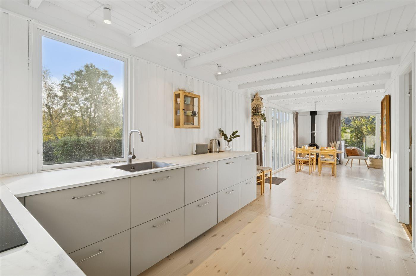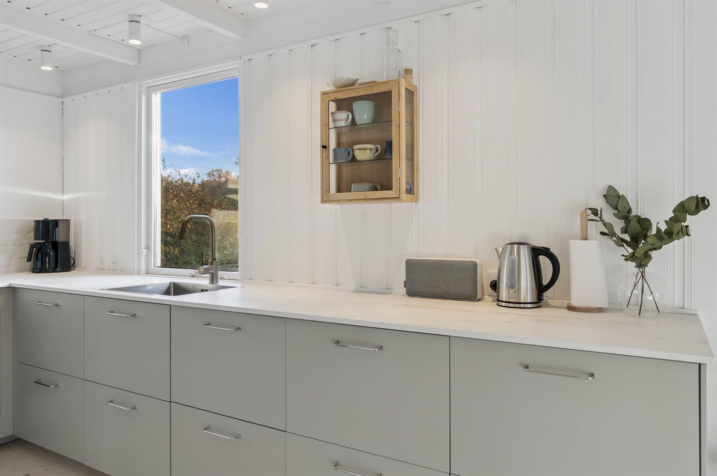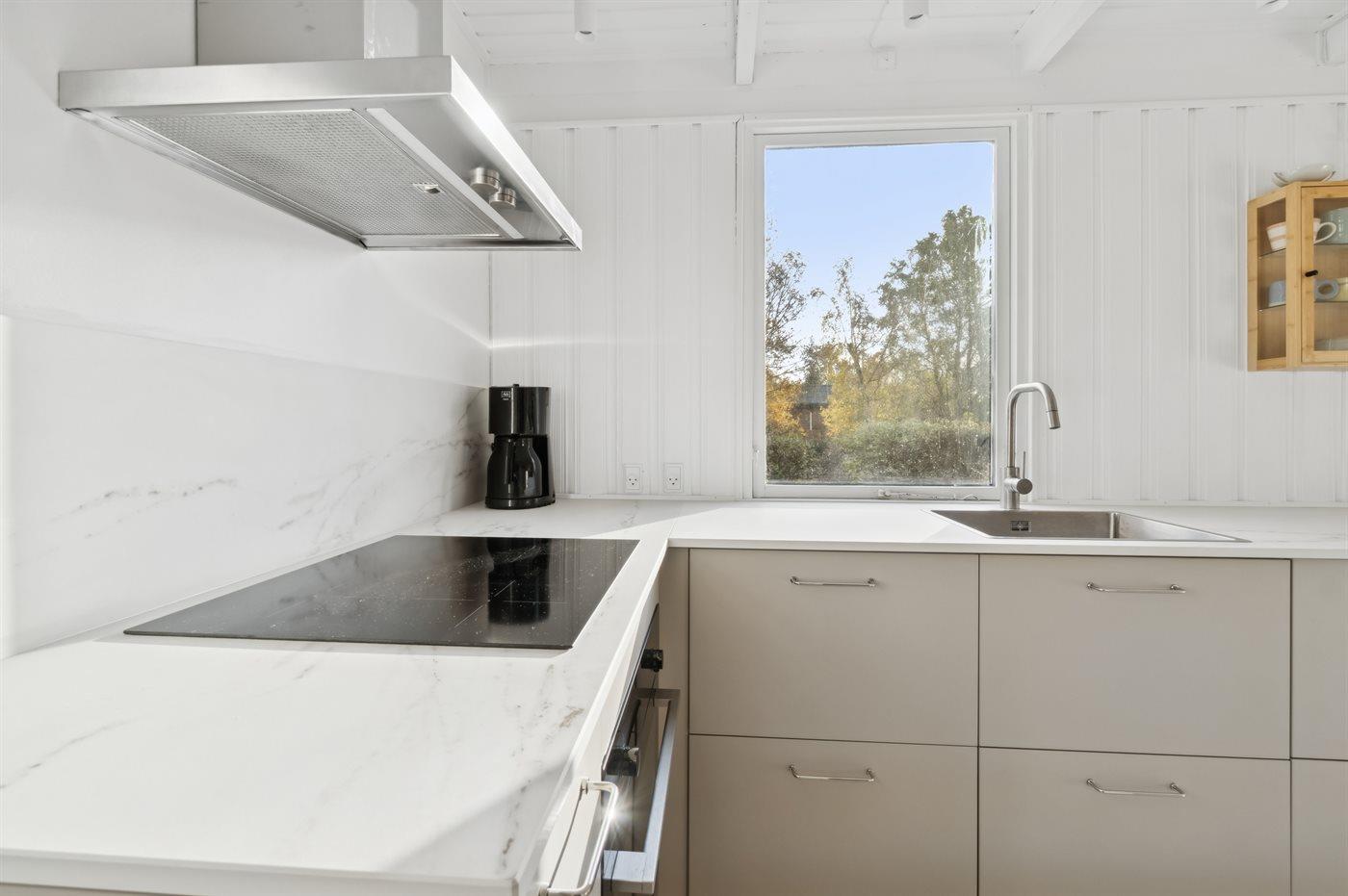 De keuken is uitgerust met koelkast Er is 4 inductiekookplaten, heteluchtoven en vaatwasser.