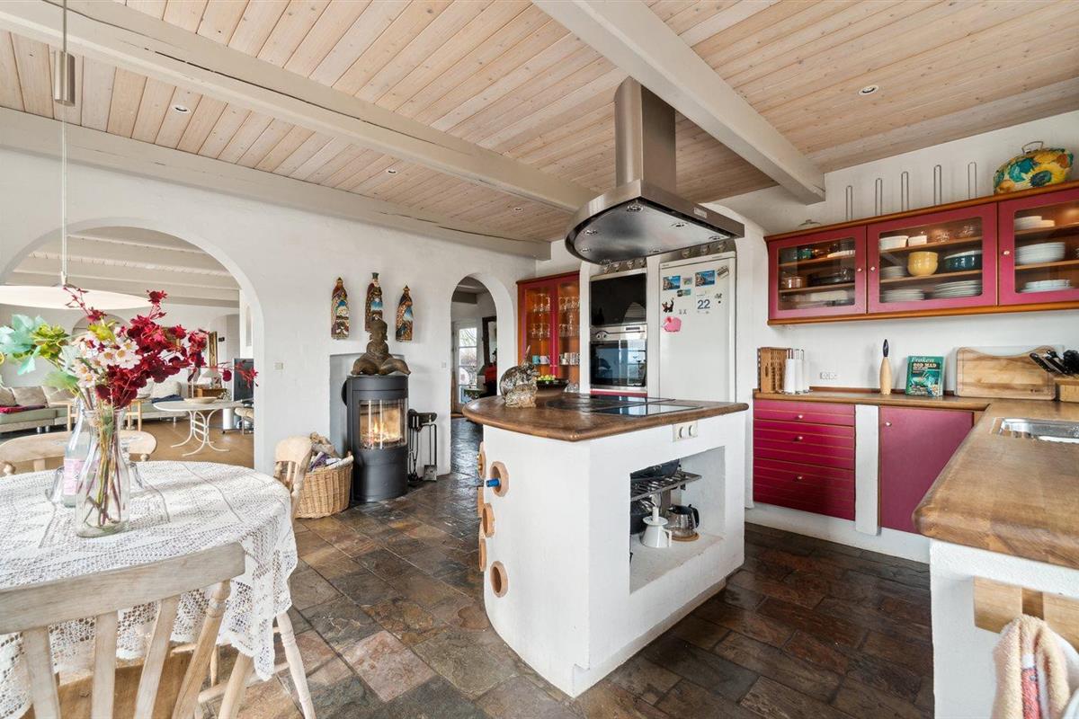 De keuken is uitgerust met koelkast Er zijn 4 keramische kookplaten, heteluchtoven, magnetron, airfryer en vaatwasser. Vloerverwarming in de keuken.