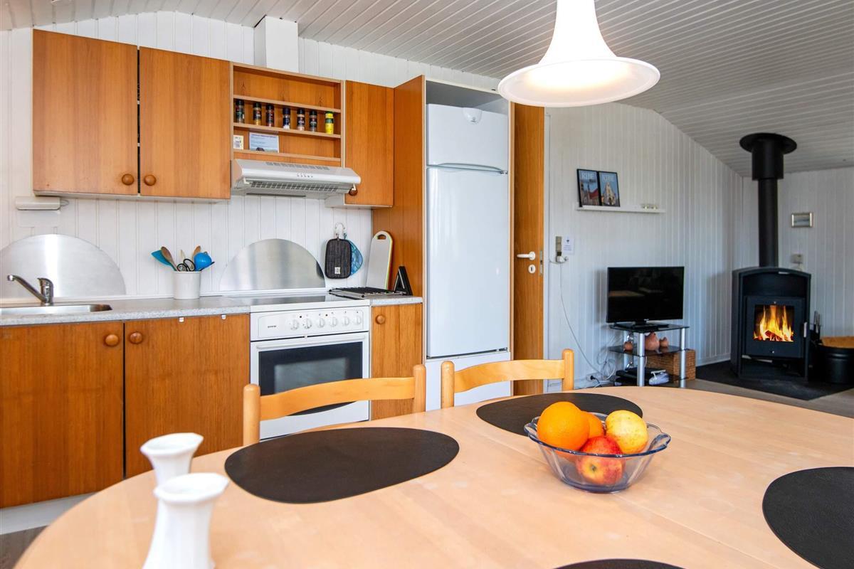 Im Haus offener, gemütlicher Küchen-/Wohnbereich für gemeinsame Aktivitäten, inklusive Kaminofen für die kühlere Jahreszeit und direktem Zugang zur überdachten Terrasse, auf der Grill- und Gartenmöbel zur Verfügung stehen. Außerdem gibt es drei Schlafzimmer und ein helles Bad mit Dusche im Haus. TV in zwei Schlafzimmern, zudem Playstation 4 im Kinderzimmer.