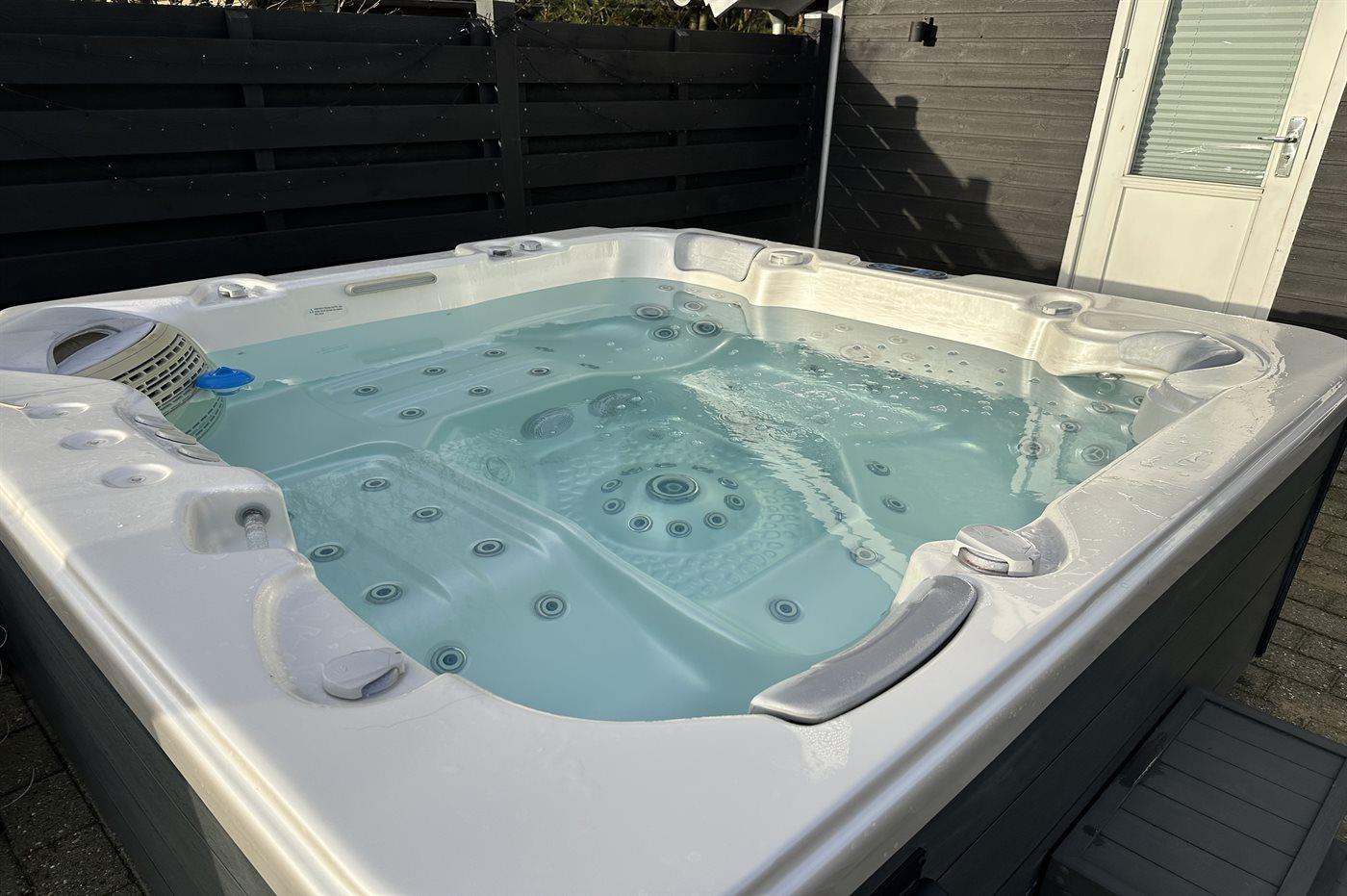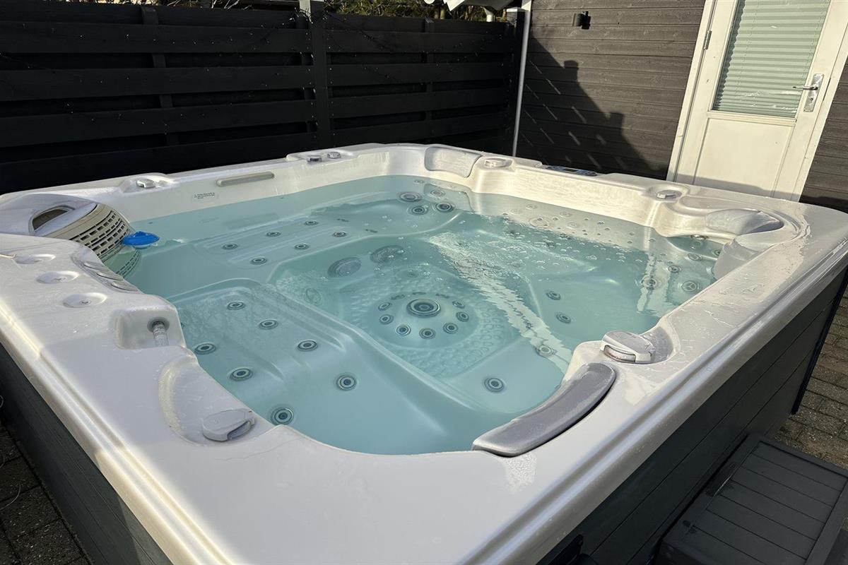 Het buitenbubbelbad (standwater) biedt ontspanning aan 5 personen.