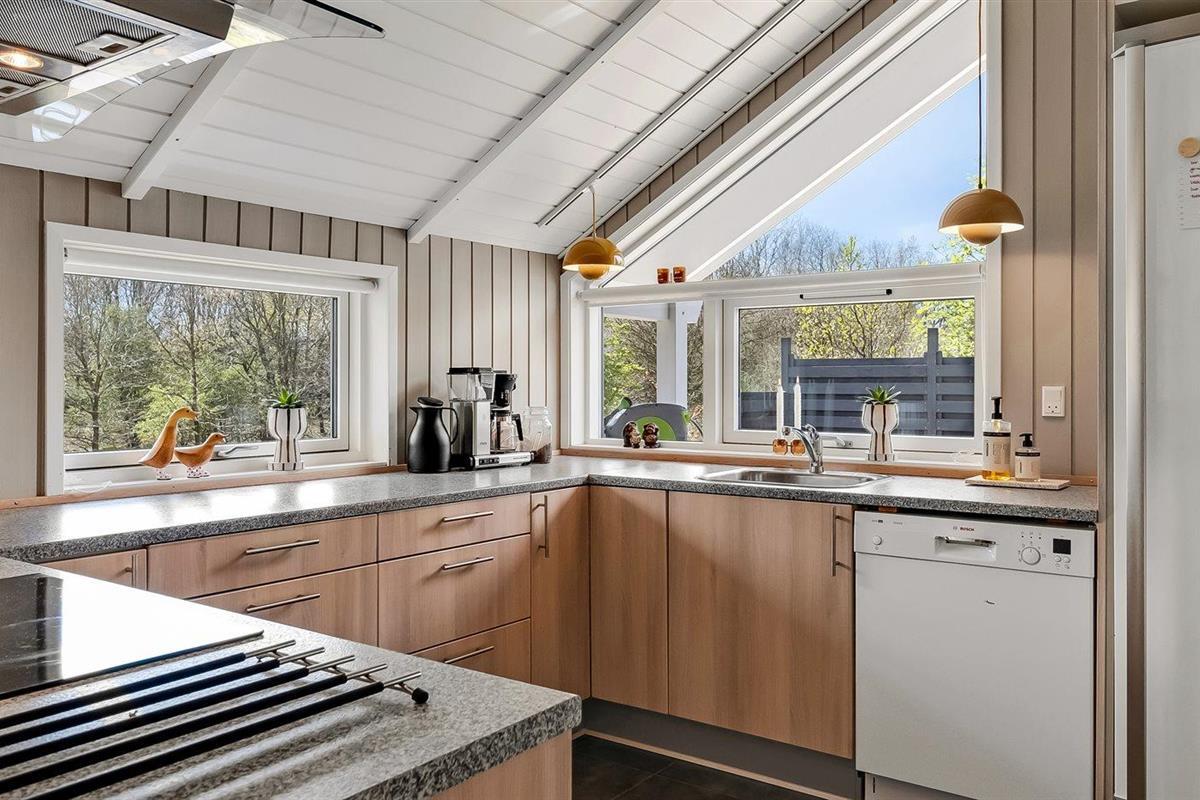 De keuken is uitgerust met koelkast Er zijn 4 keramische kookplaten, heteluchtoven, magnetron en vaatwasser.