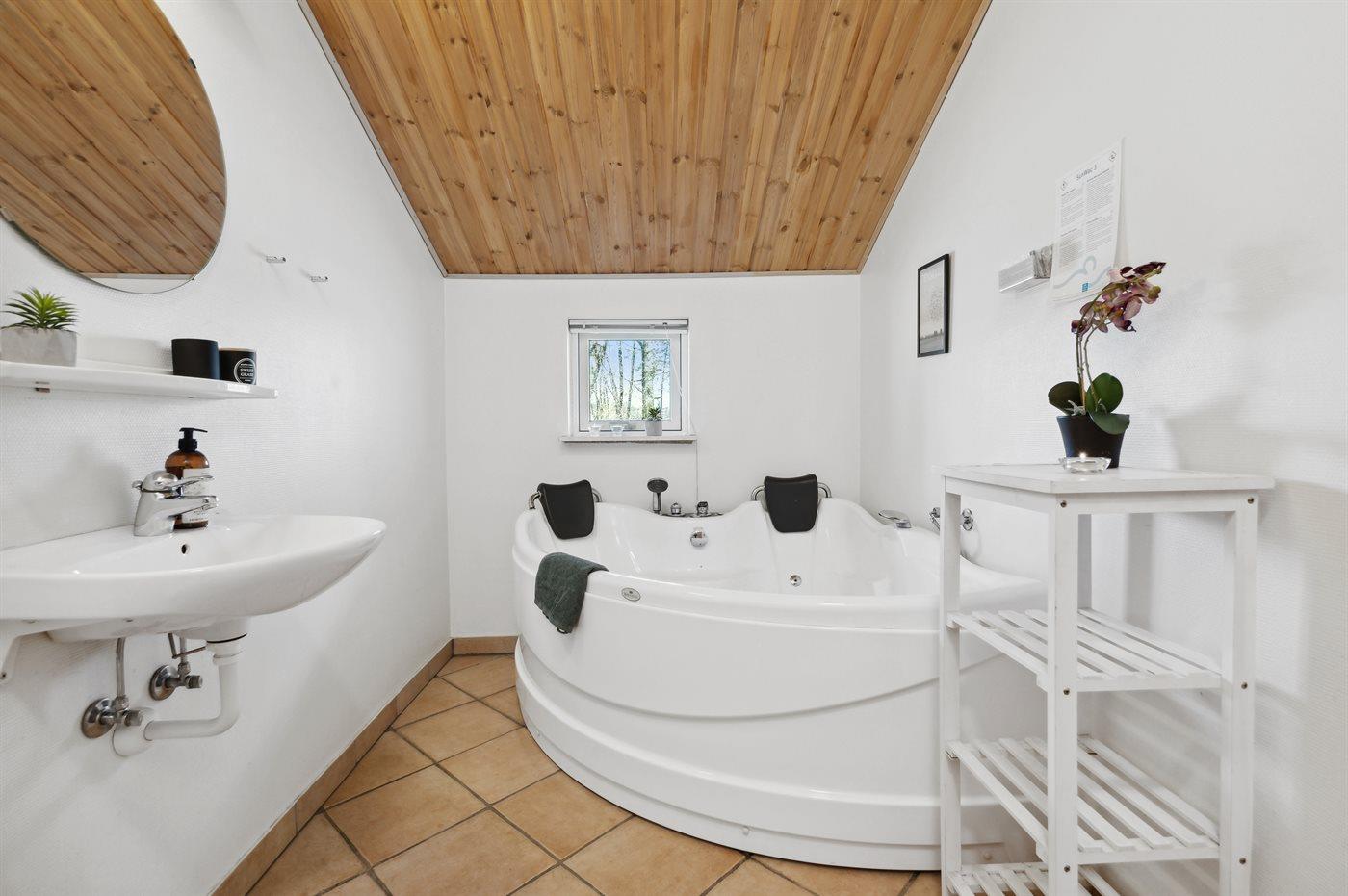 Het binnenbubbelbad (vulwater) biedt ontspanning aan 2 personen.