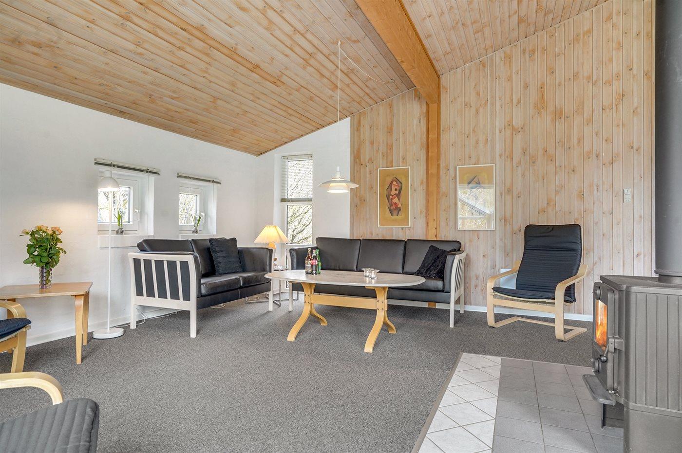 Ruim vakantiehuis in Arrild, Denemarken, met 4 slaapkamers, terras en houtkachel, ideaal voor gezinnen.