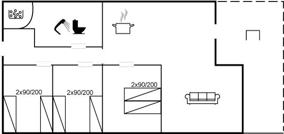 Er zijn in totaal 3 slaapkamers. De slaapplaatsen zijn als volgt verdeeld: 2 slaapplaatsen in tweepersoonsbed. 4 slaapplaatsen in eenpersoonsbedden.