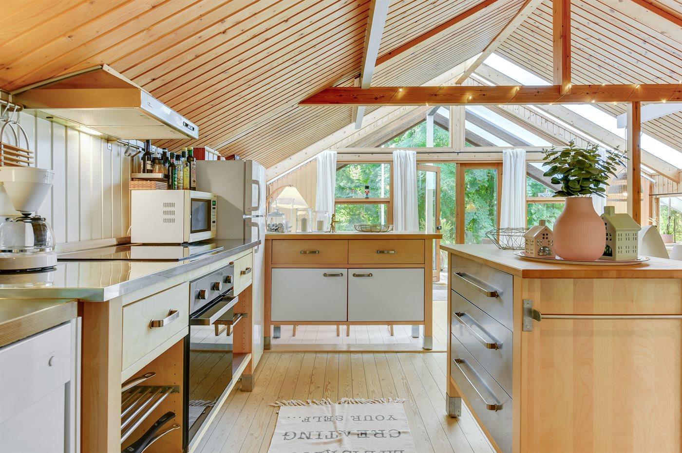De keuken is uitgerust met koelkast Er zijn 4 keramische kookplaten, mini-oven, heteluchtoven en vaatwasser.