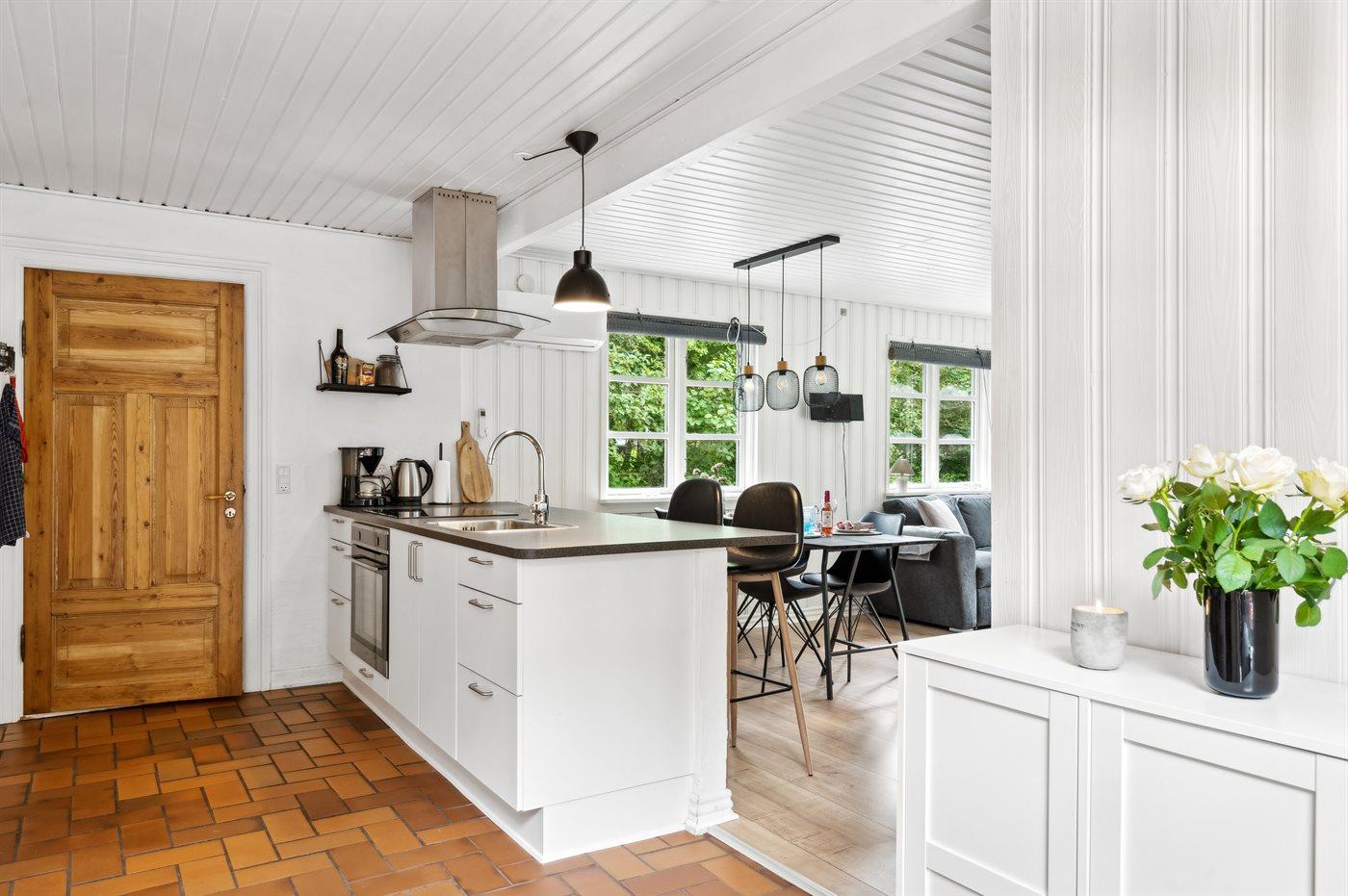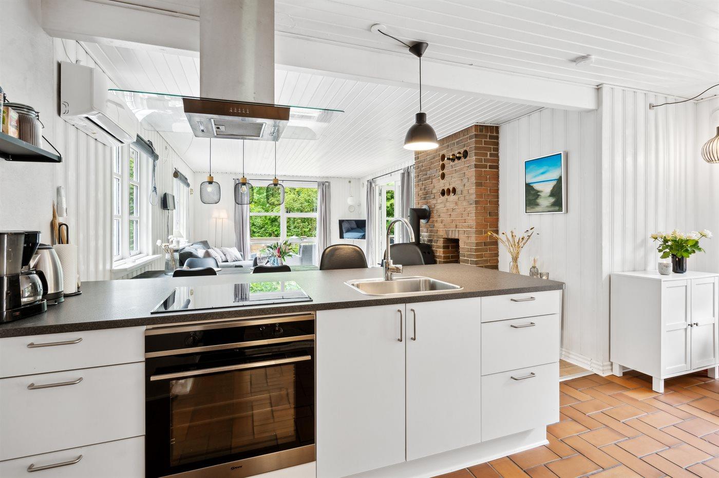 De keuken is uitgerust met koelkast Er is 4 inductiekookplaten, heteluchtoven, magnetron.