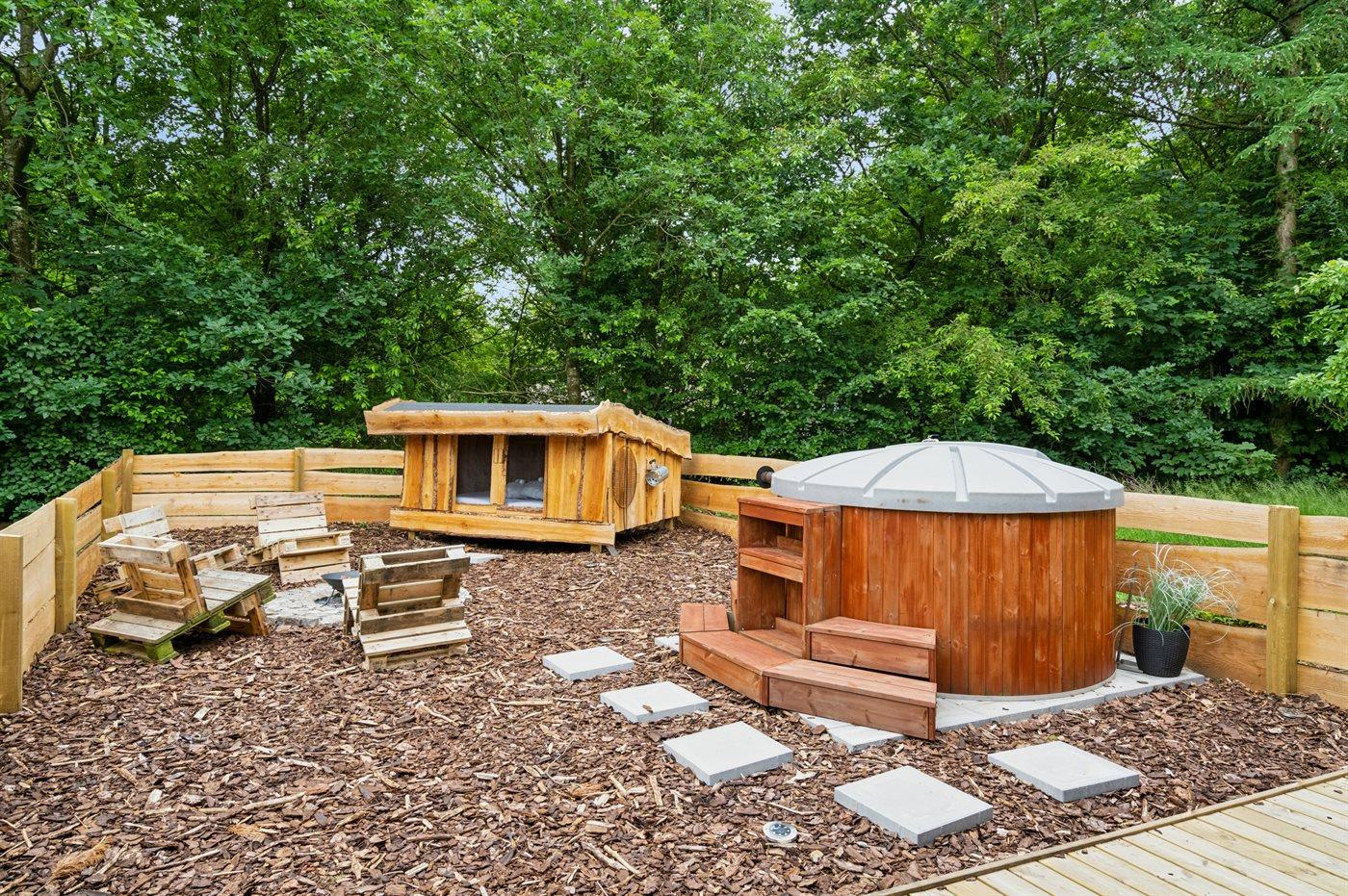 Het buiten hot tub biedt ontspanning aan 4 personen.
